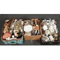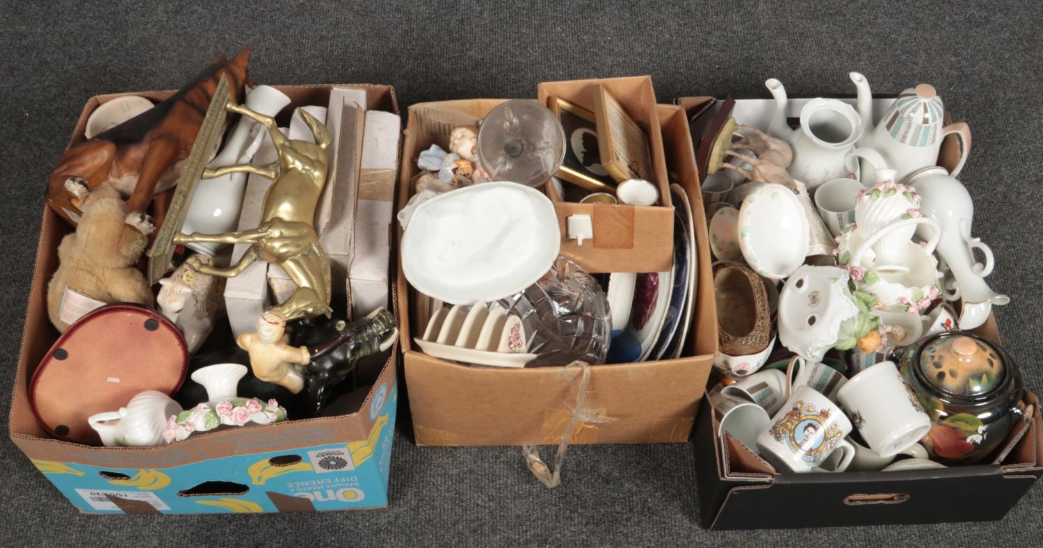 Three boxes of miscellaneous ceramics and glass including a 1970d Burleigh ware coffee set.