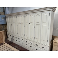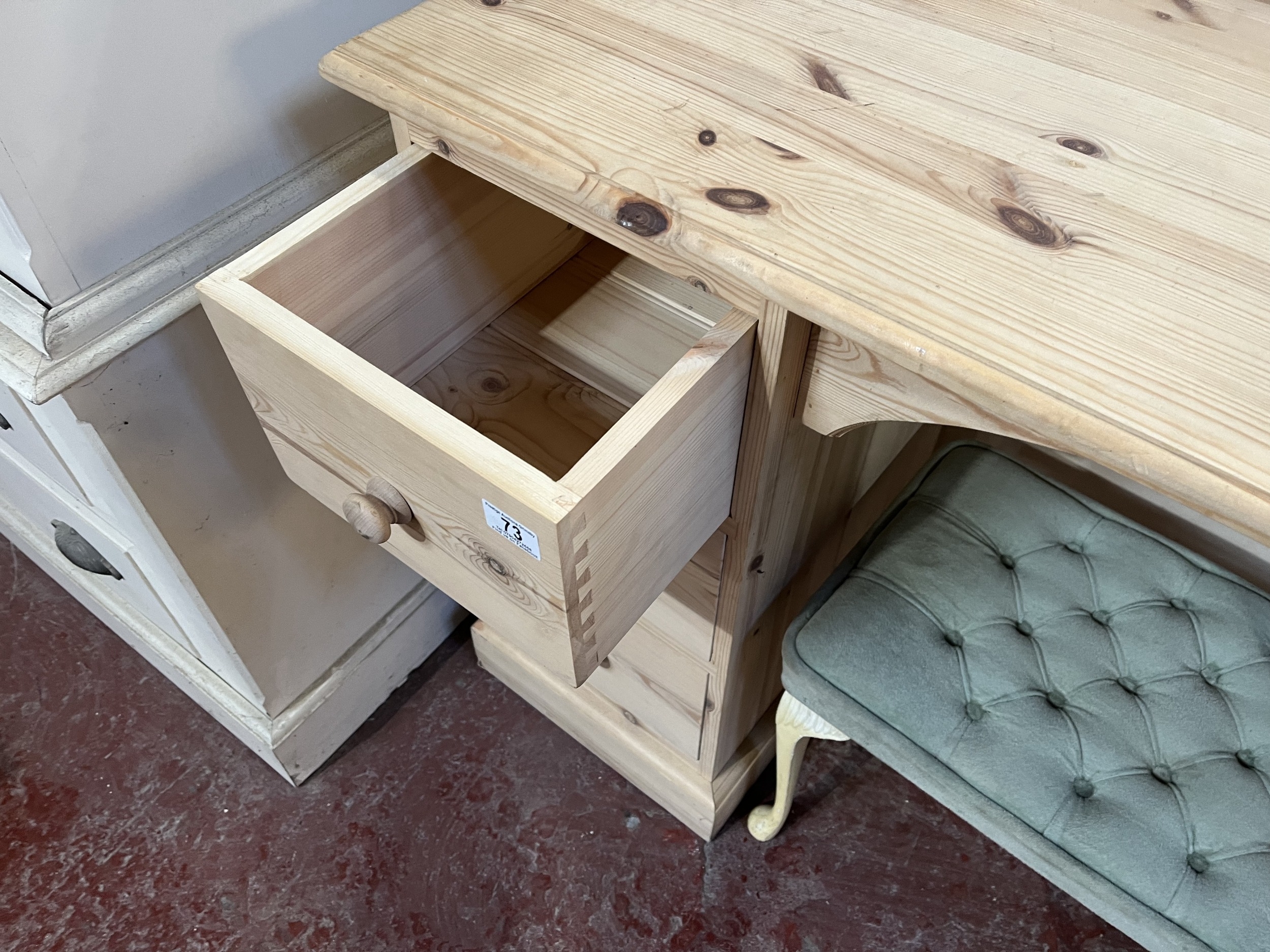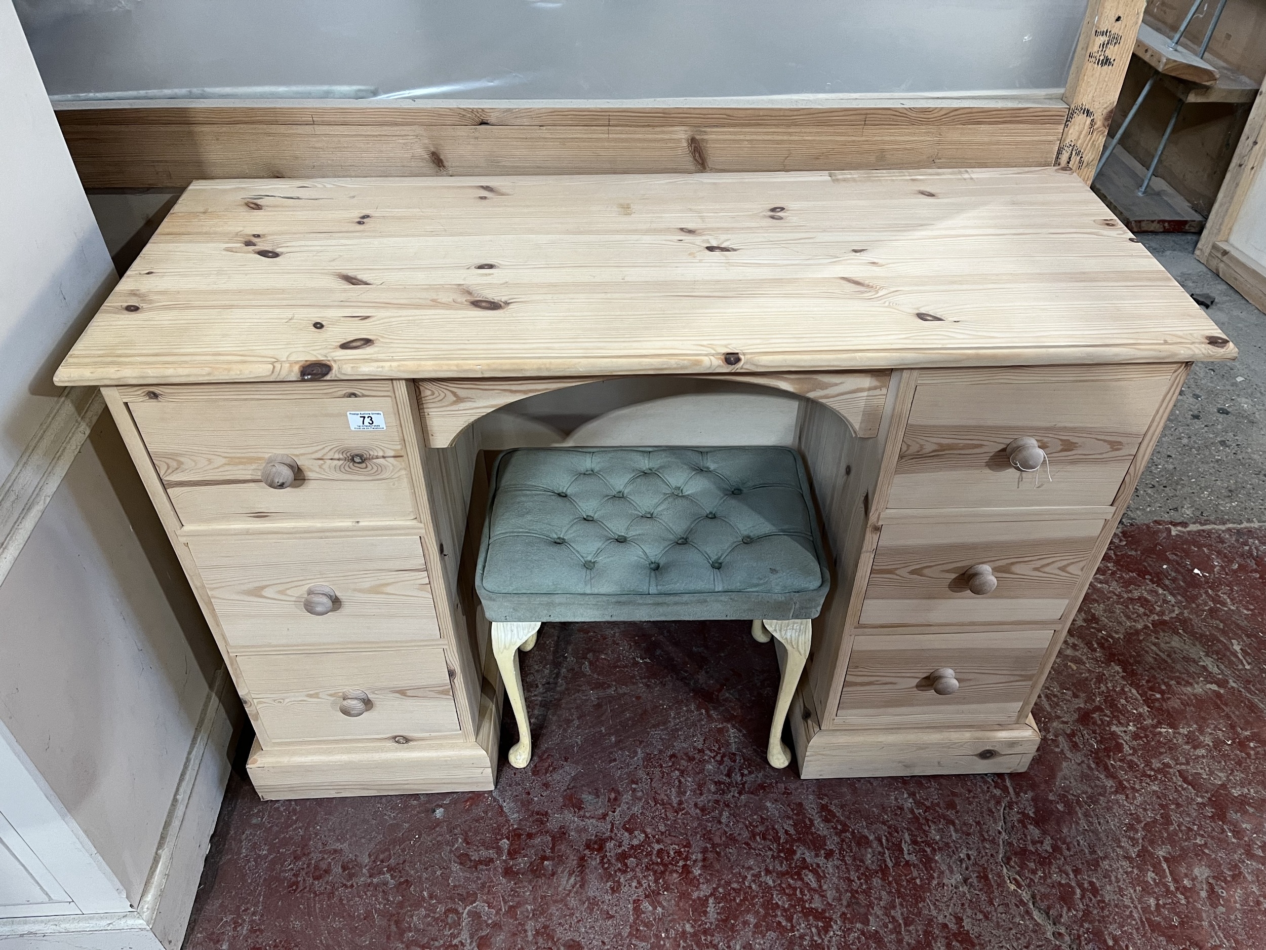 PINE DRESSING TABLE WITH 6 DRAWERS & STOOL 48" WIDE 32" TALL 18" DEEP
