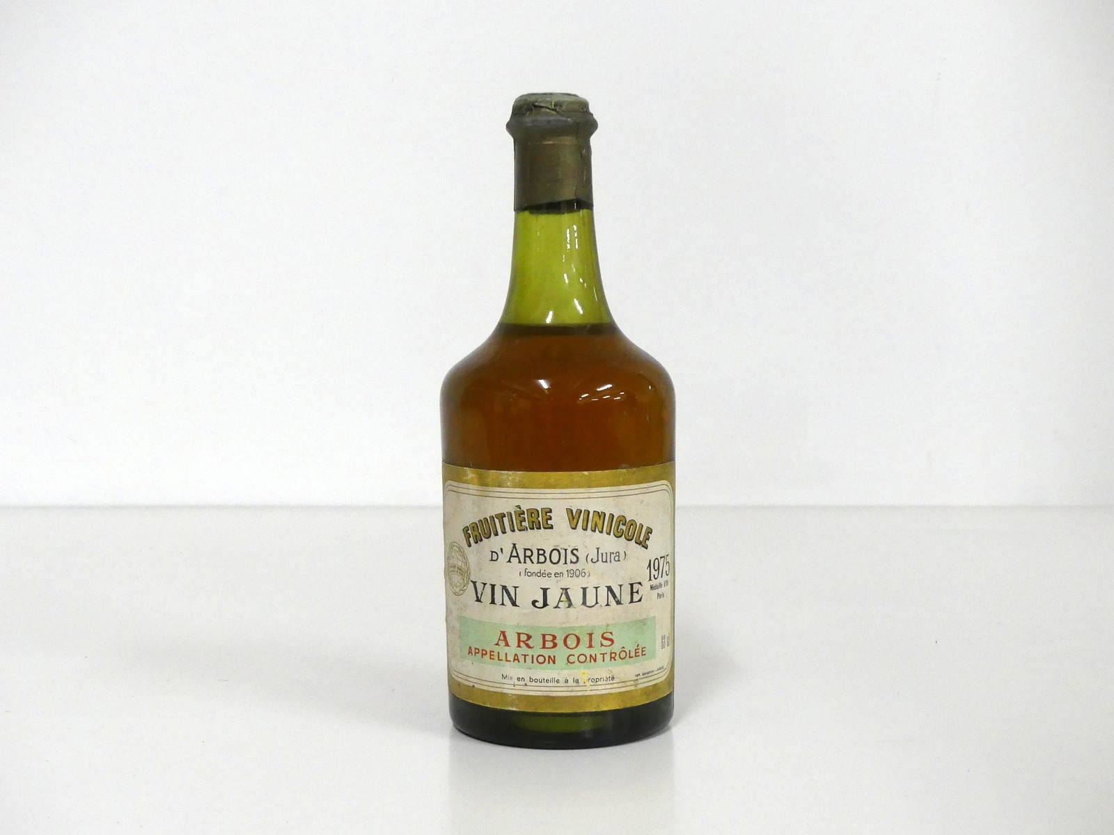 1 bt Fruitère Vinicole D'Arbois Vin Jaune 1975 base of neck, aged label
