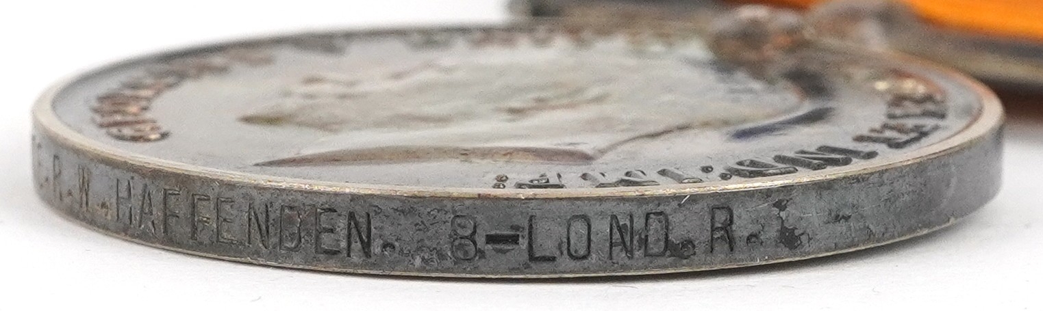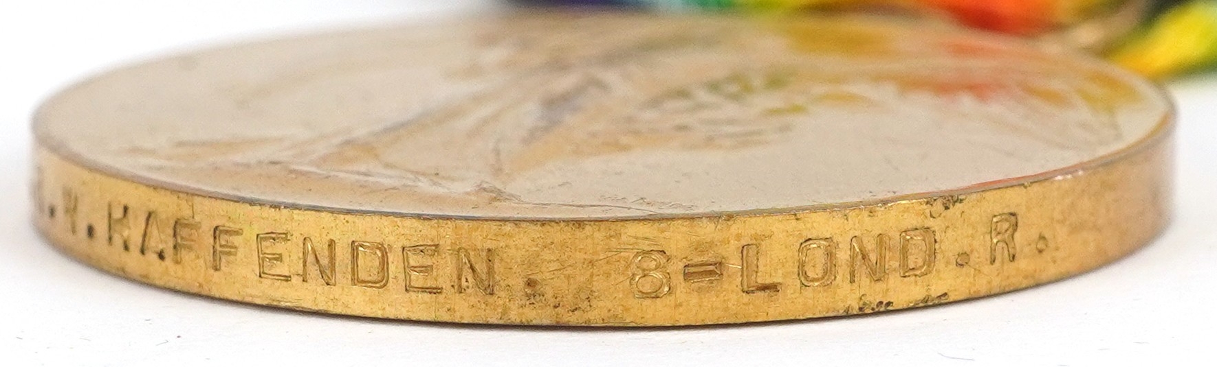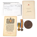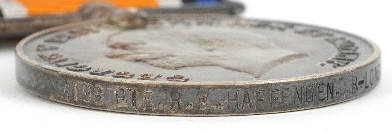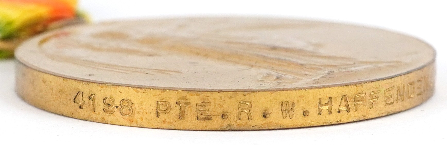A British military World War I medal pair and death plaque awarded to 4198 PTE RICHARD WILLIAM HAFFENDEN.8-LOND.R. and commemorative death scroll.