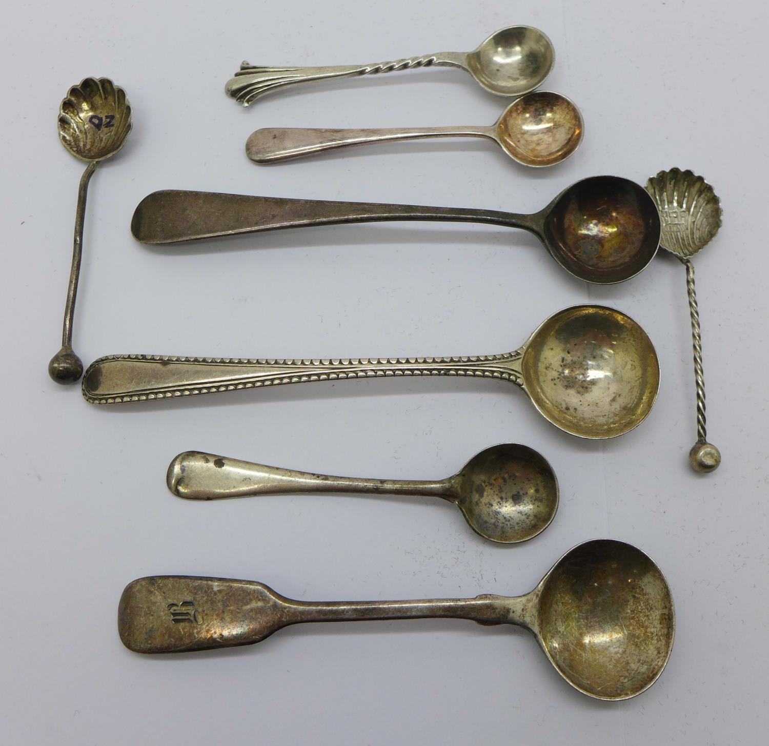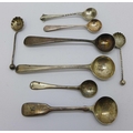 Eight silver condiment spoons, including 19th Century and one continental