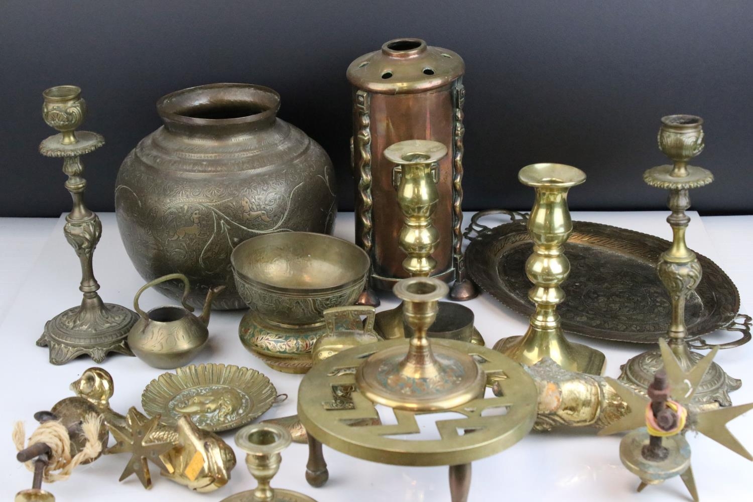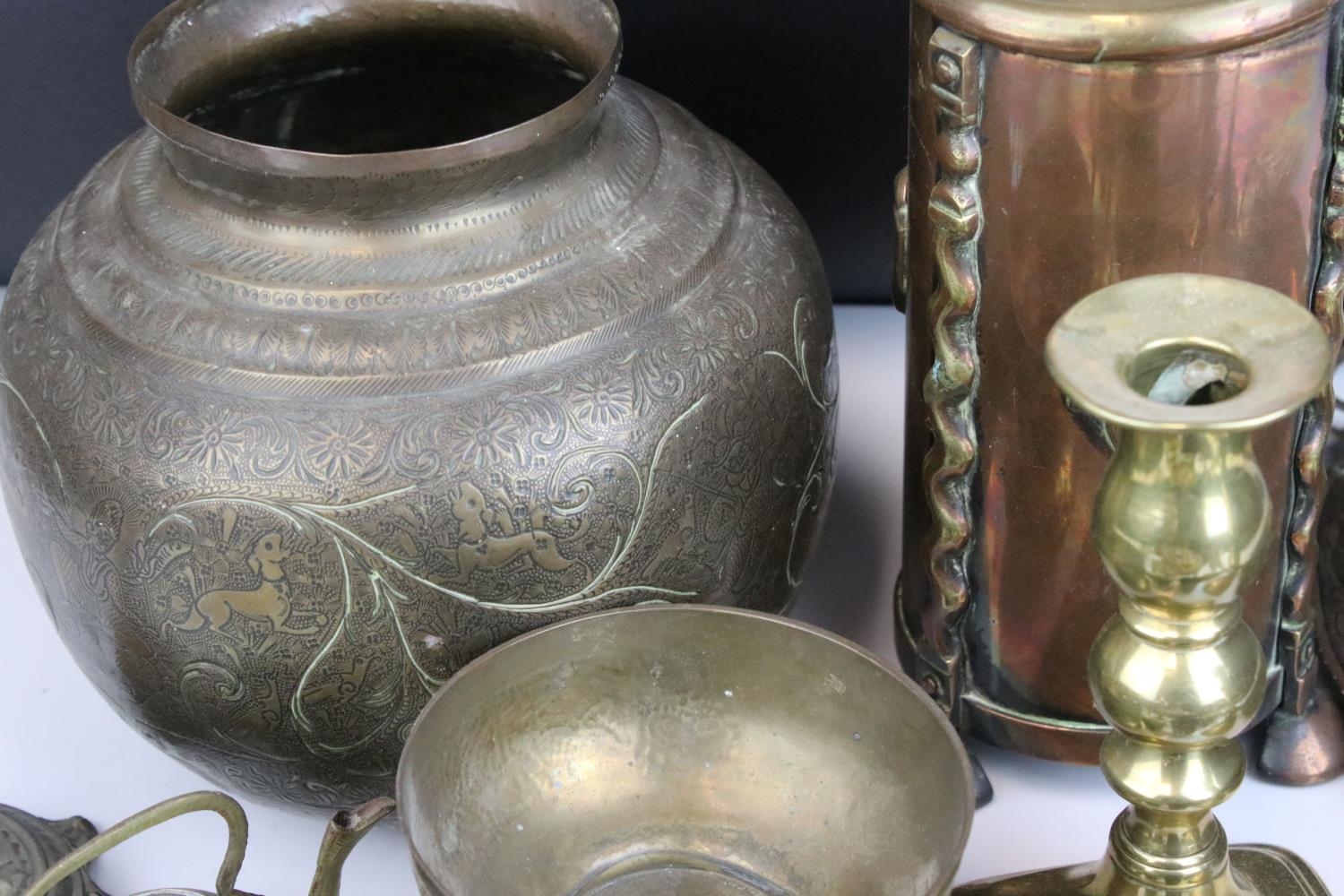 Mixed Lot of Brass including Persian / Indian Brass and a Copper Pot