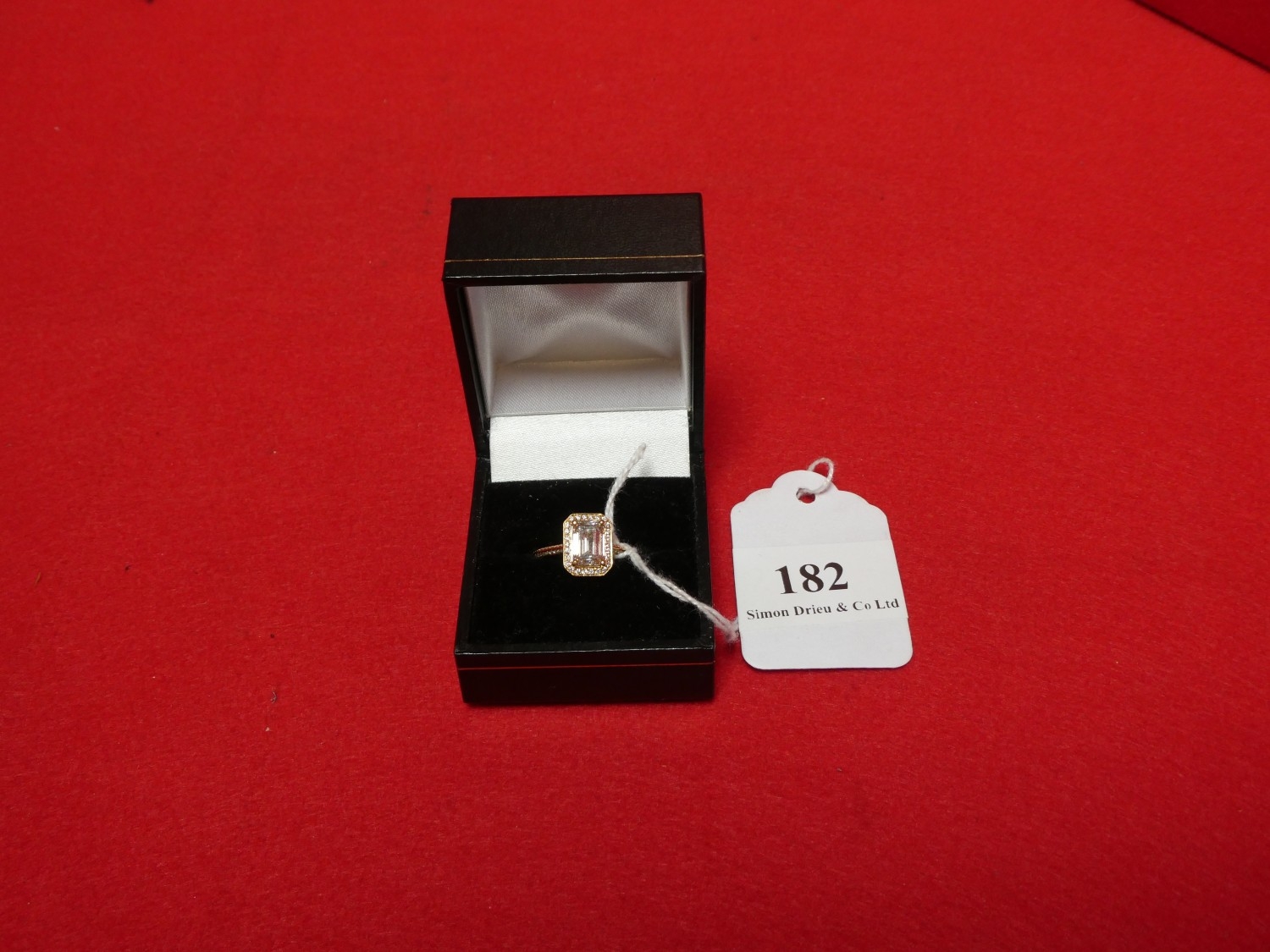 An 18 carat yellow gold emerald cut stone with 52 diamond surround ring (size L)