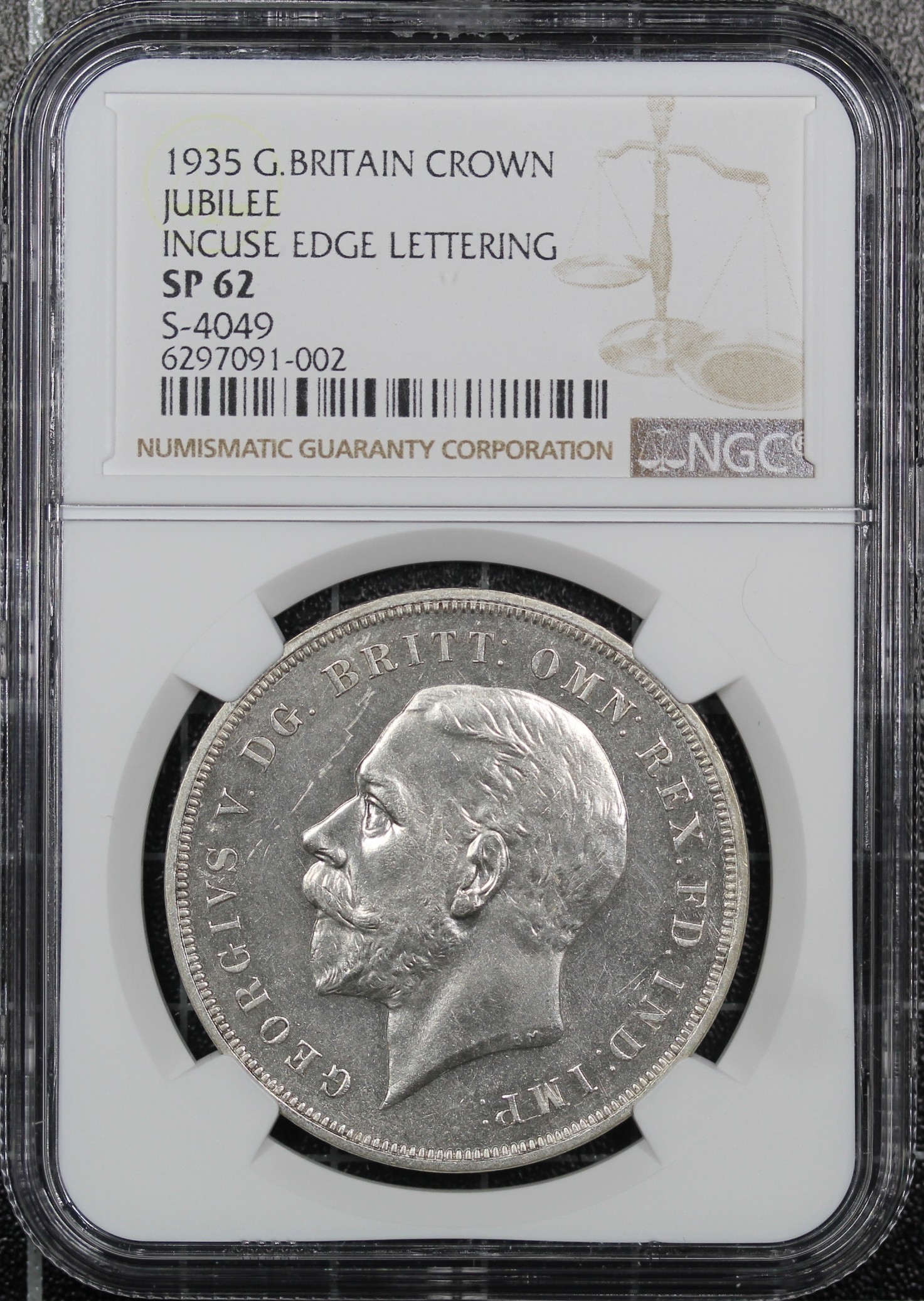 1935 Specimen crown, George V (ESC 376, Bull 3652, S.4048). Graded SP62, aUNC with a scratch before bust otherwise bright and vibrant with soft underlying lustre.