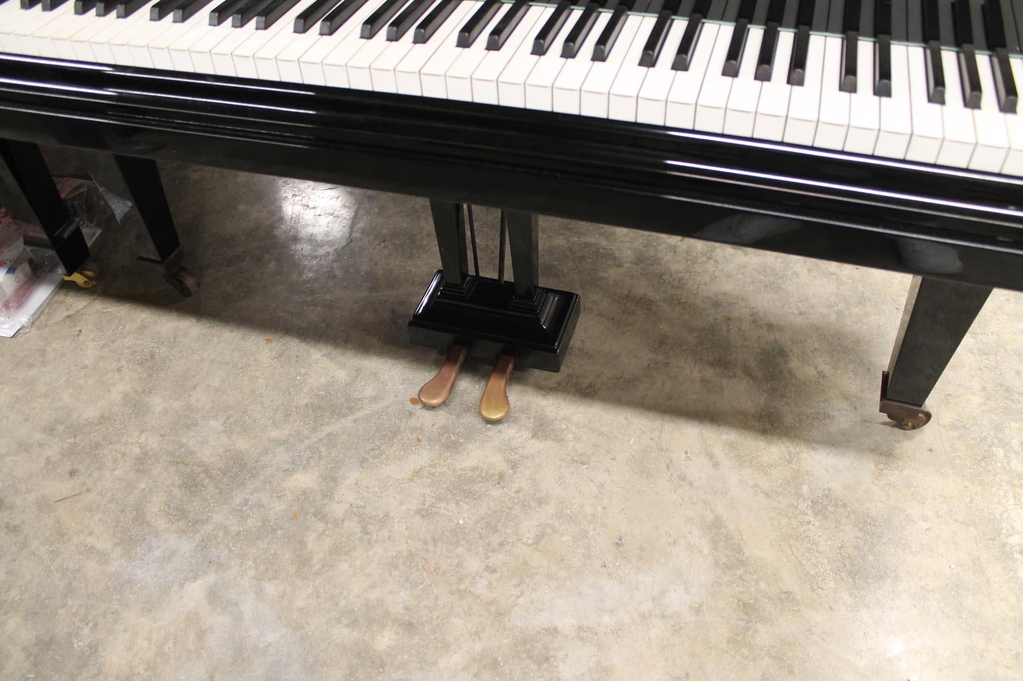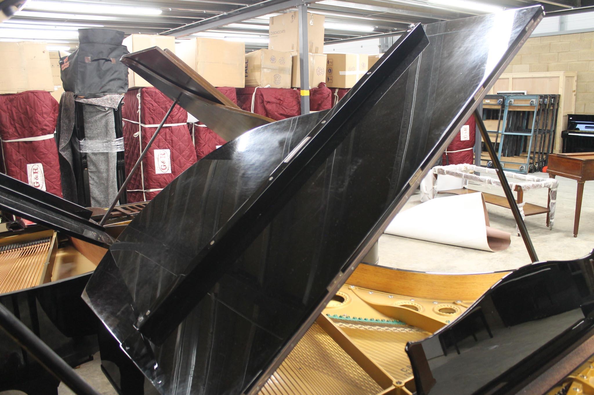 A 5ft 10in Model M grand piano in a bright ebonised case on square tapered legs; together with a stool.
