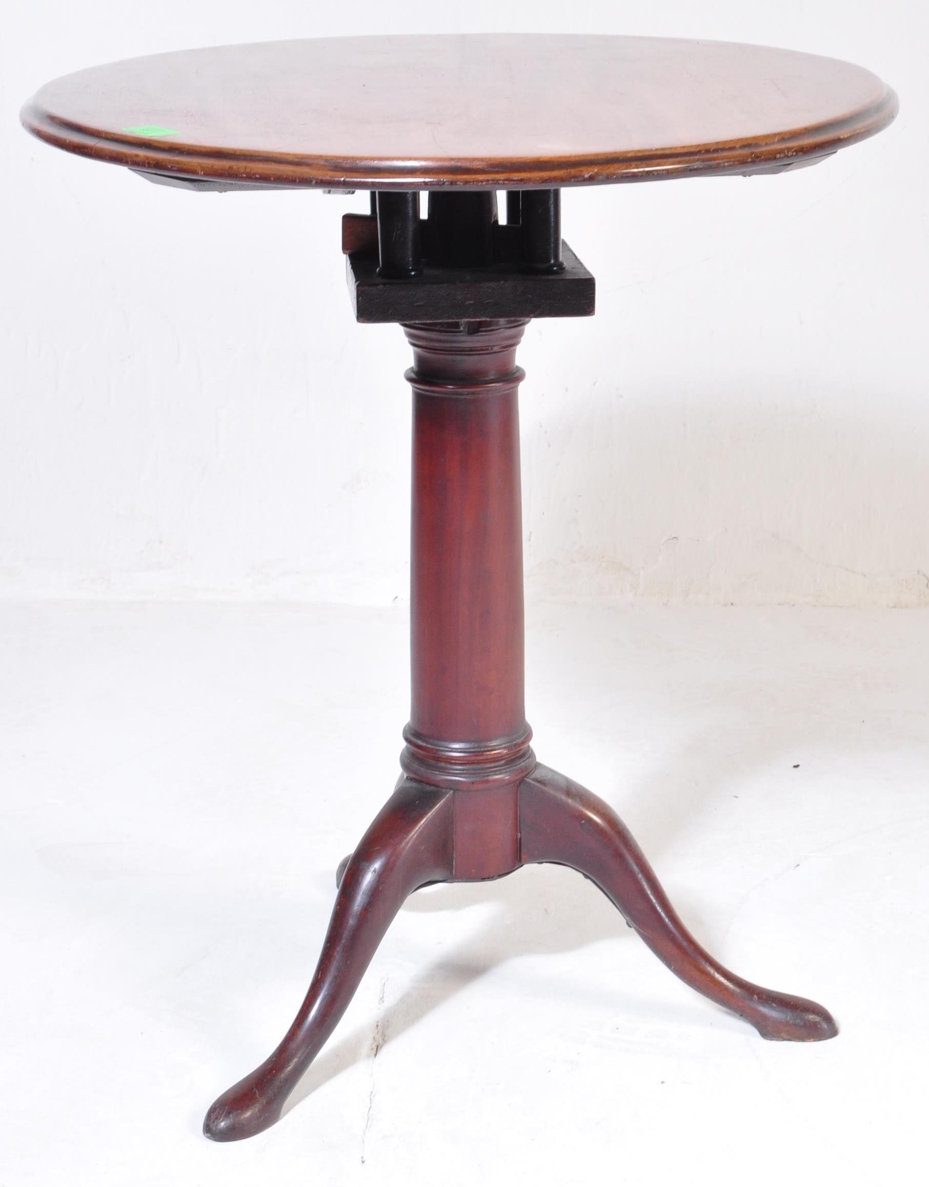 Georgian mahogany early 20th Century oval swivel occasional table with bird cage, raised on slender turned column and three out splayed supports. Measures approx. 68cm x 72cm x 58cm.
