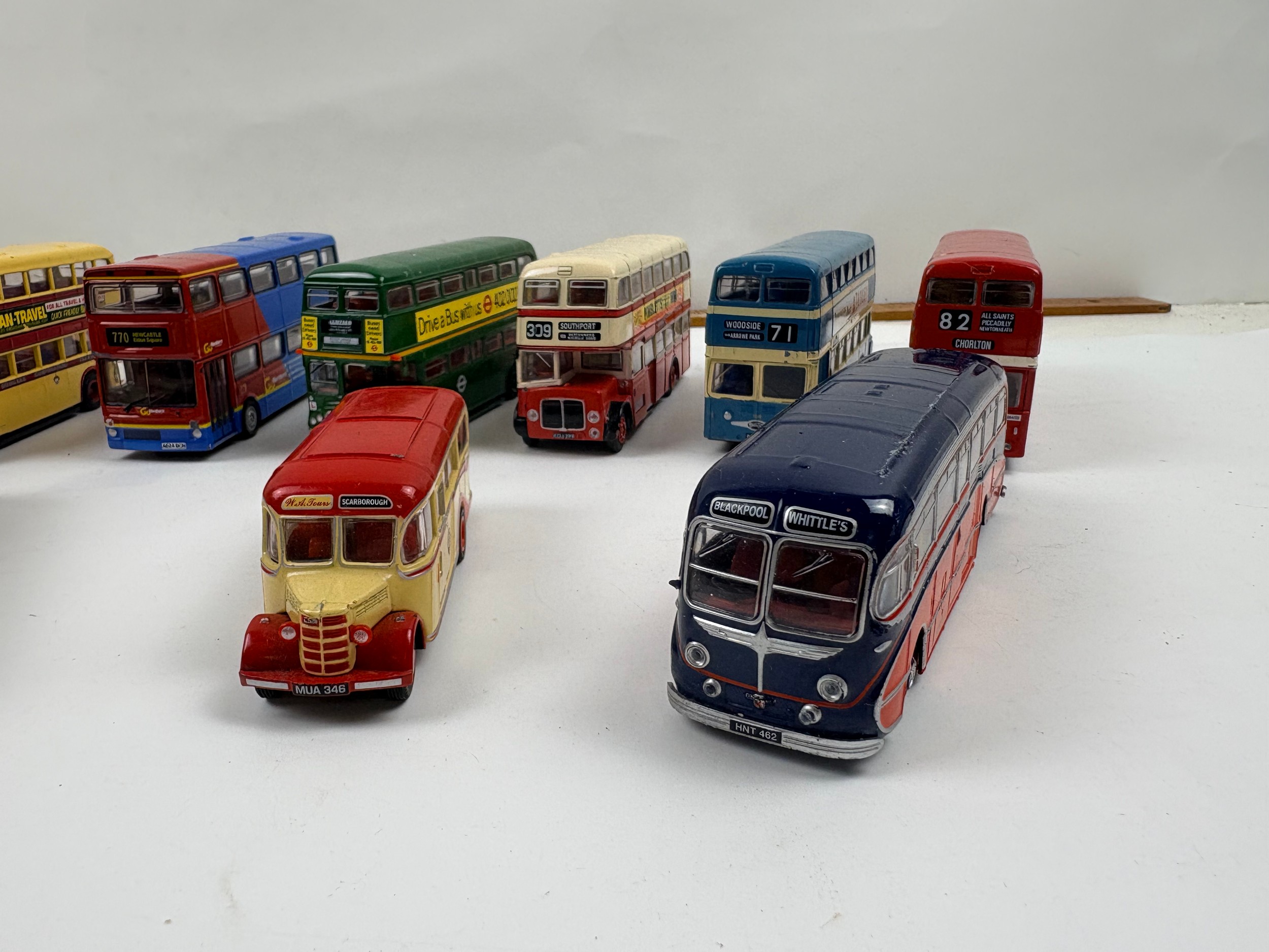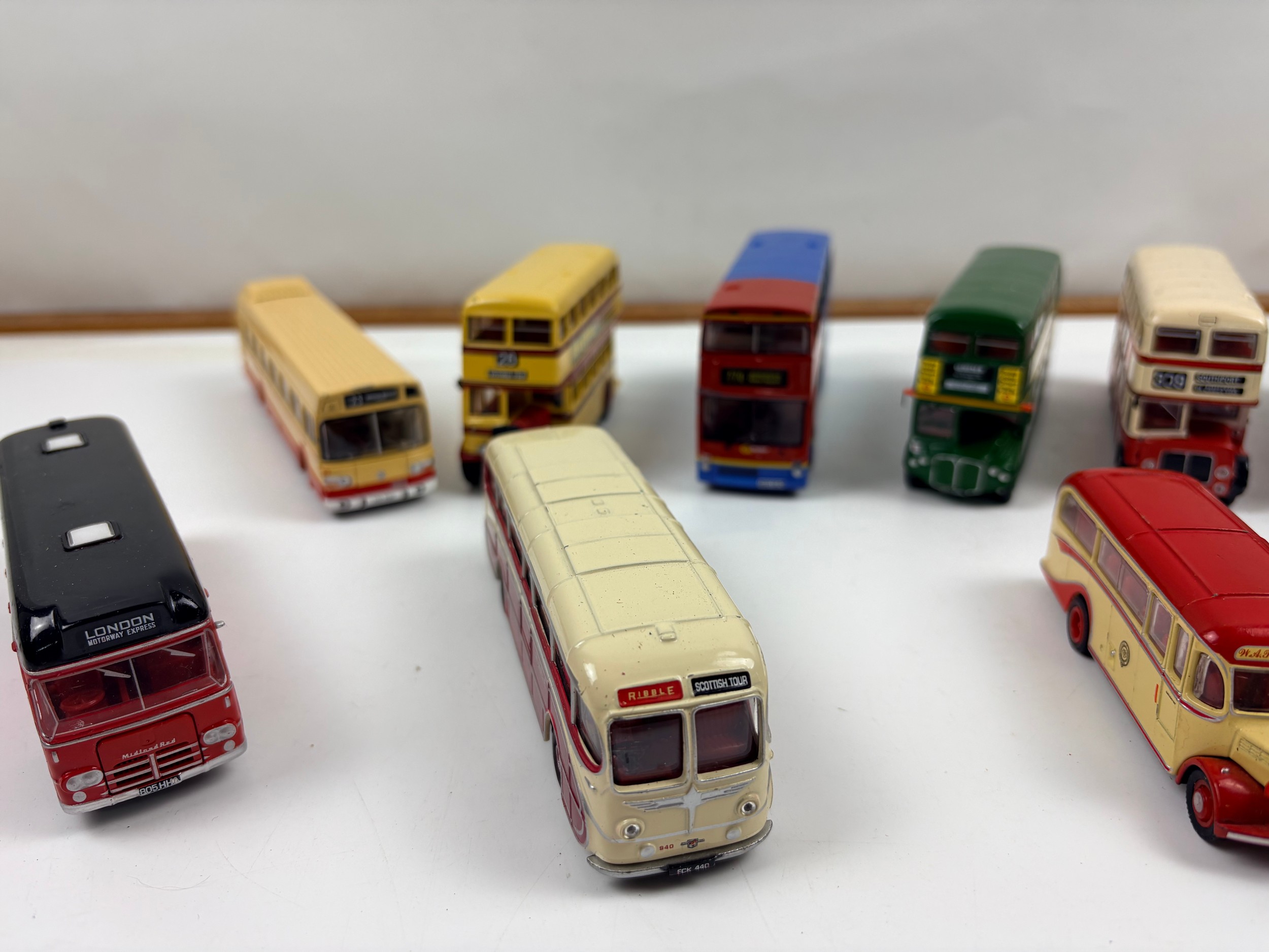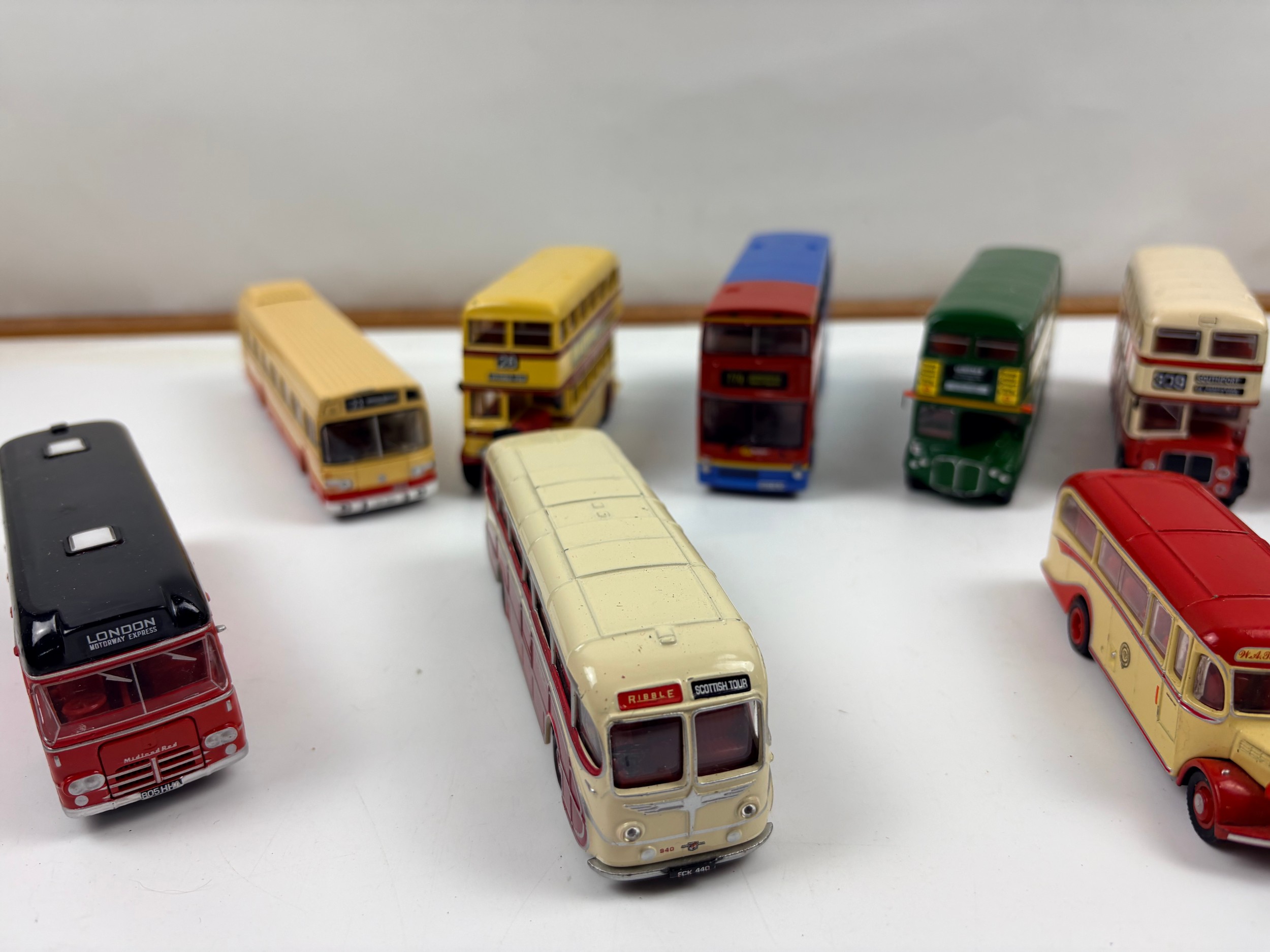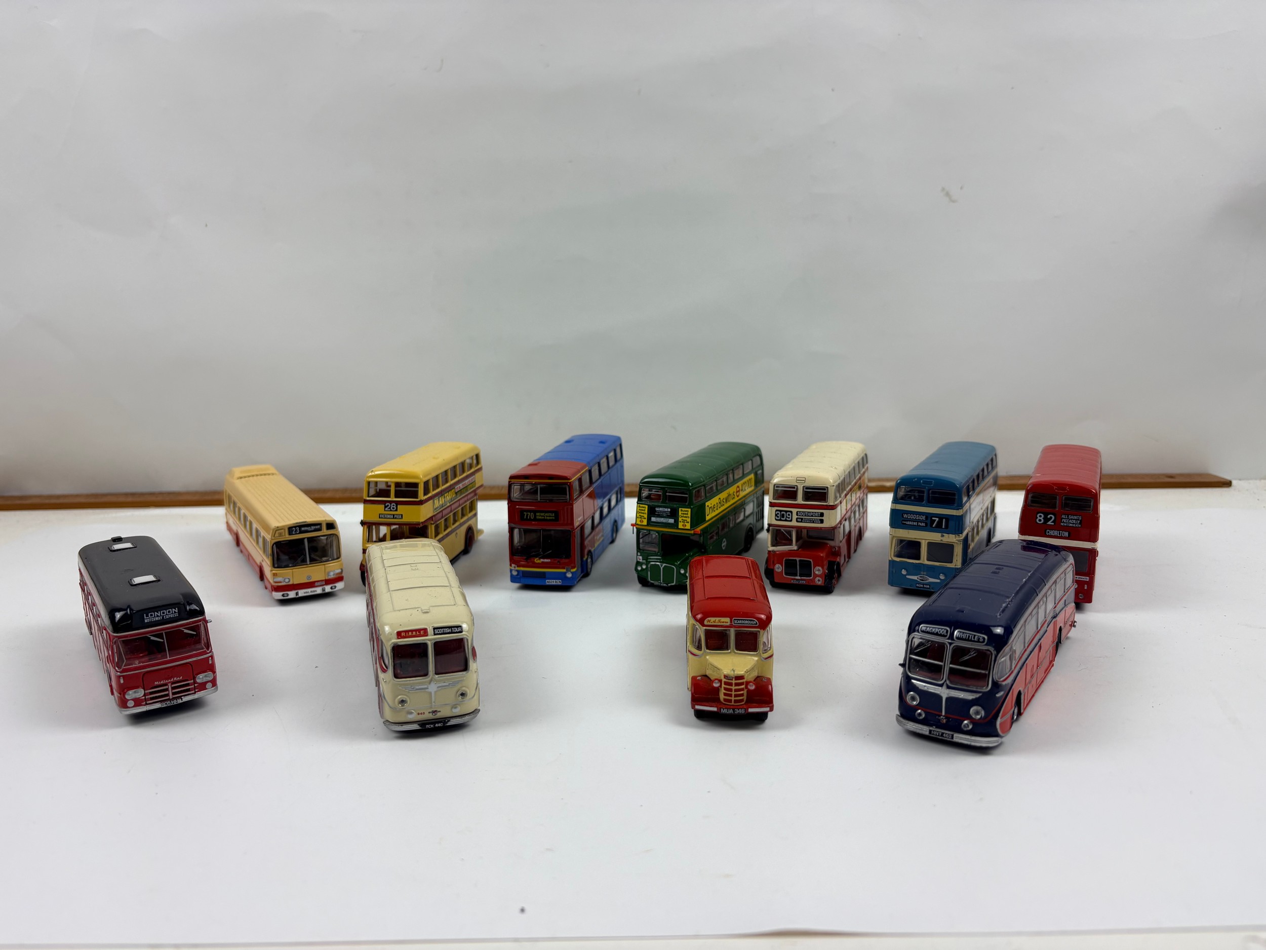 Box of 11 diecast busses from Corgi, Efe and Atlas
