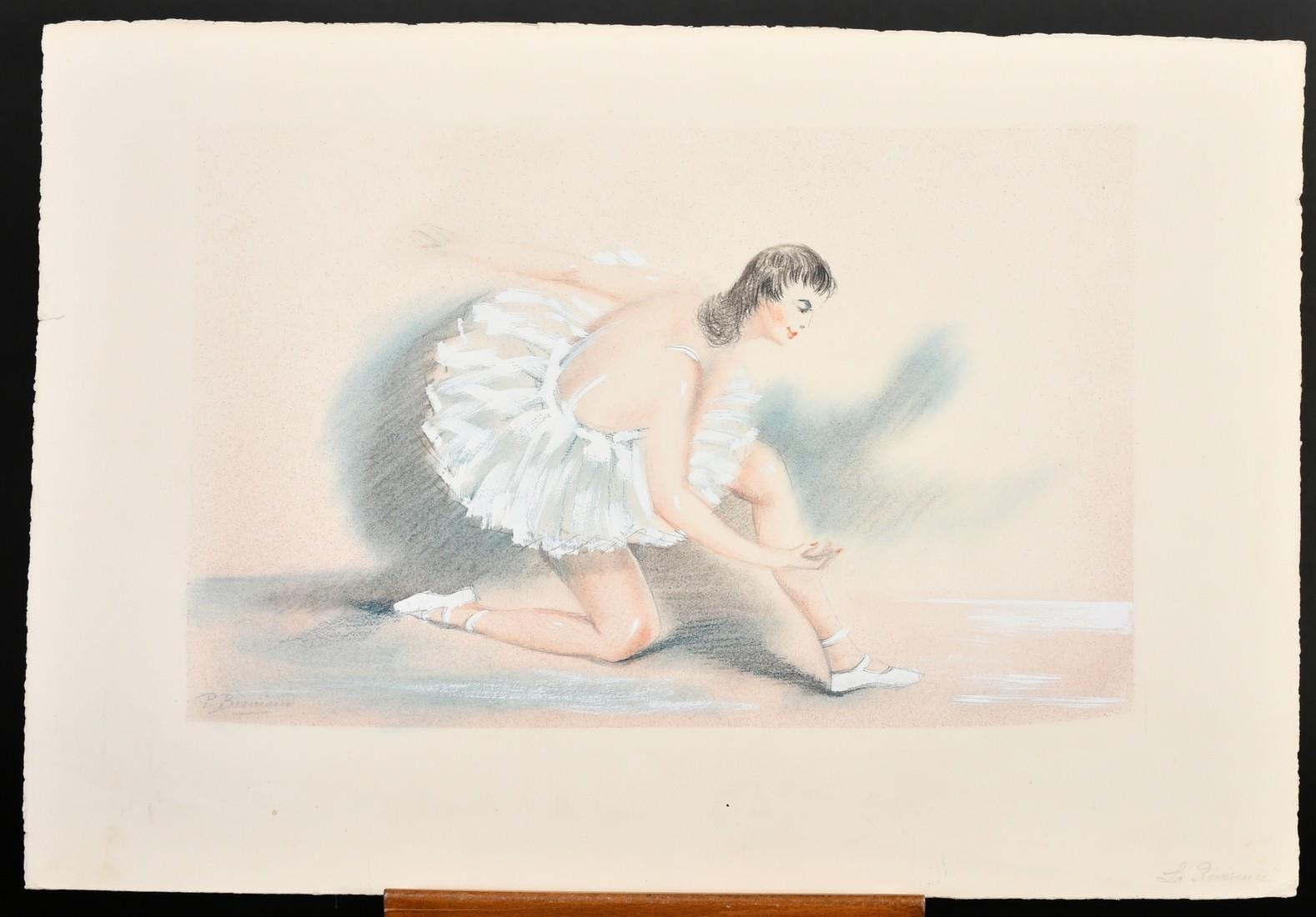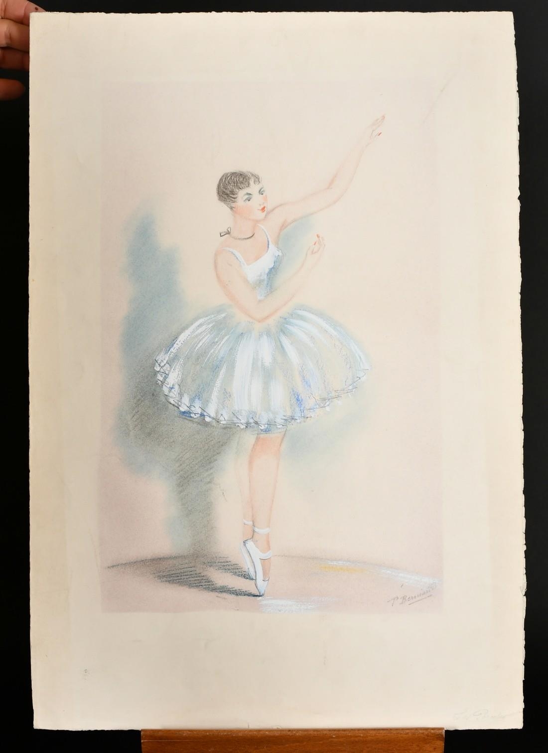 P. Berriand, Ballet dancers, mixed media, both signed and inscribed in pencil, paper size 22" x 15", (56x38cm) and 15" x 22", (38x56cm) (unframed) (2).