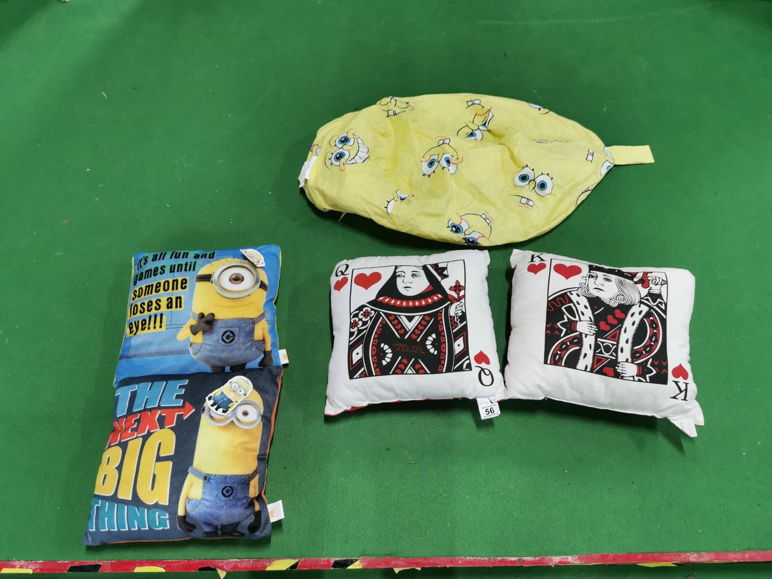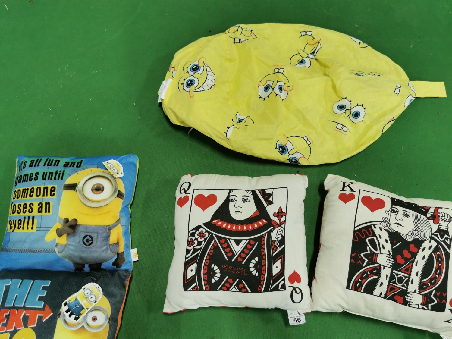 Four As New Novelty Cushions And A Sponge Bob Empty Bean Bag