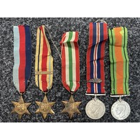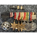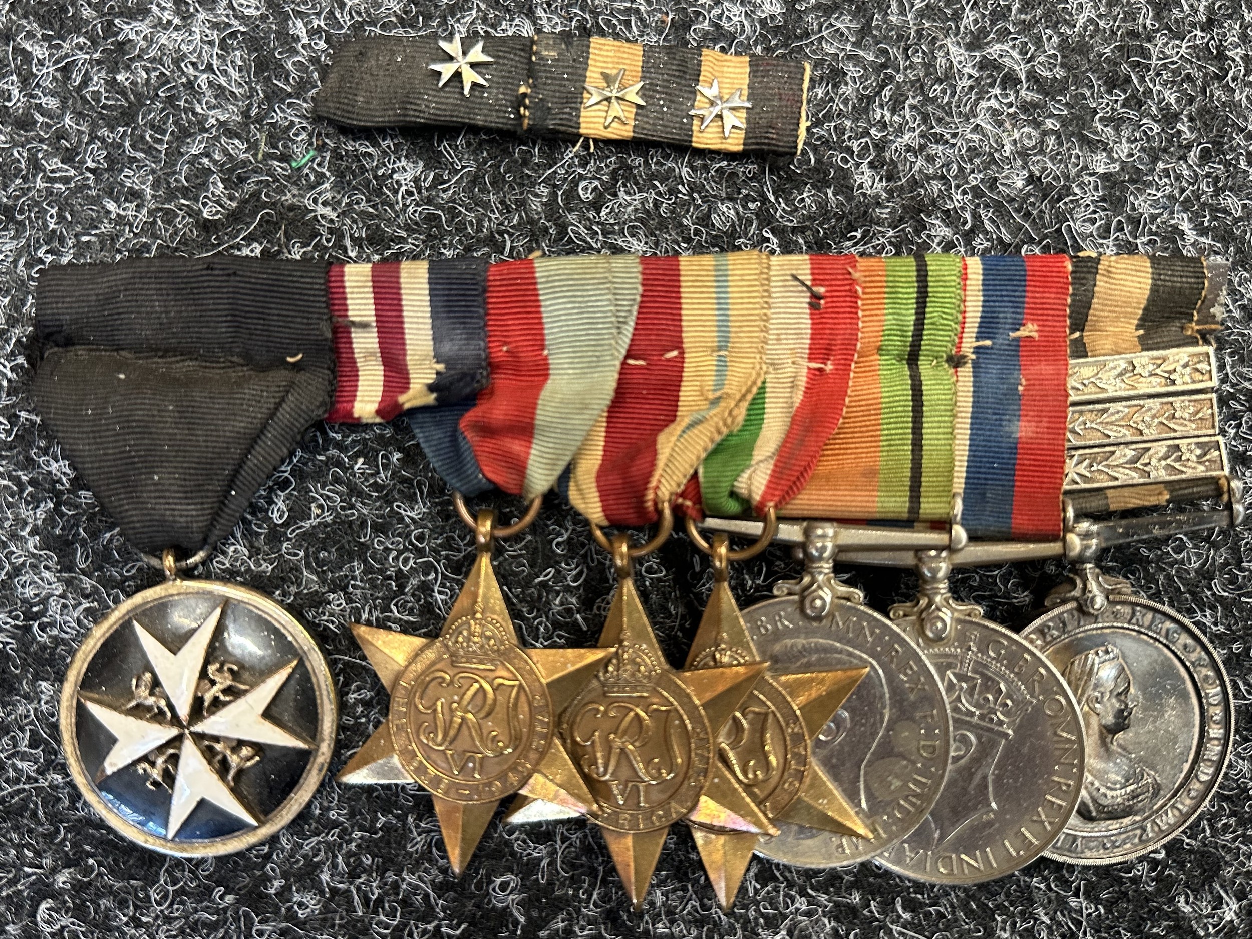 WW2 British Medal Group to 27282 C/Sgt Maj OJ Davies, Priory for Wales 1942 comprising of Order of St John, 1939-45 Star, Africa Star, Italy Star, Defence Medal, War Medal and Service Medal of the Order of St. John with three bars. Plus two medal ribbon bars. MM has been cut from the bar.