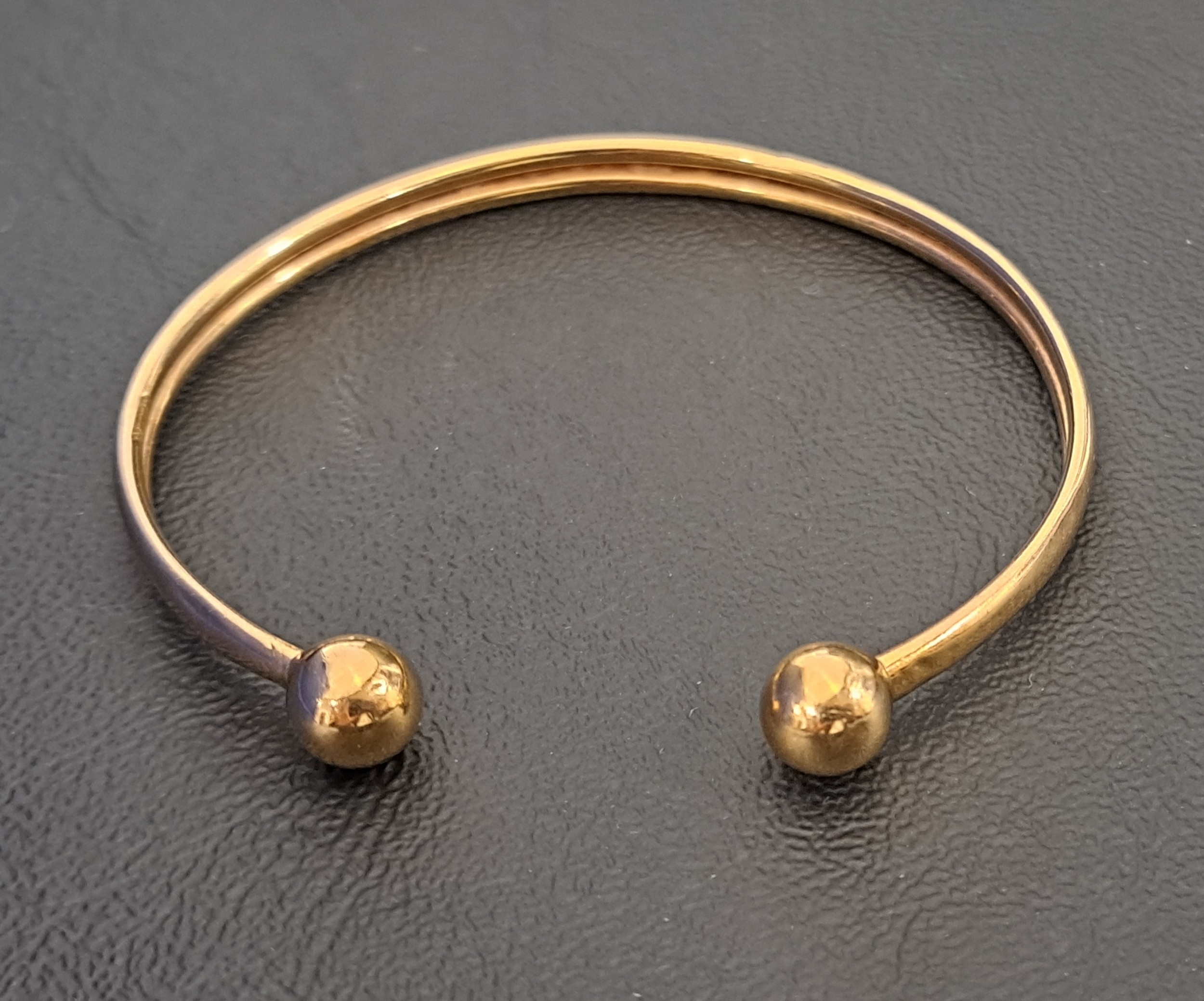 NINE CARAT GOLD BANGLEwith ball finials, approximately 5.4 grams