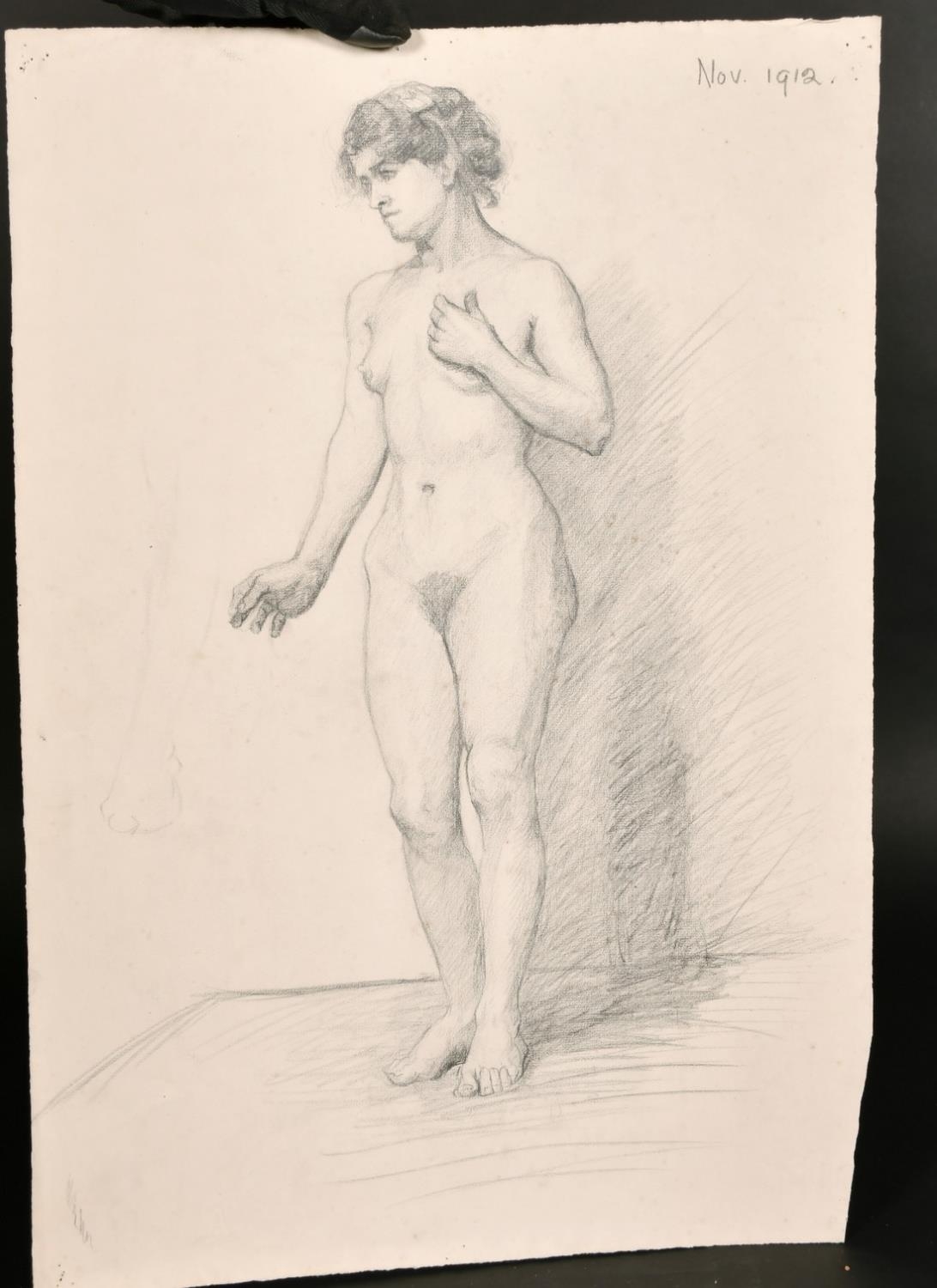Early 20th century English school, A folio of unframed life drawings and head studies, mostly charcoal, some initialled and dated, (qty).