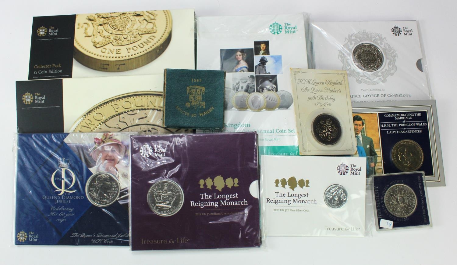 GB Small selection of mainly Royal Mint issues, includes two Royal mint folders of £2s & £1s from circulation also mint packs of £5s & one £20 silver issue