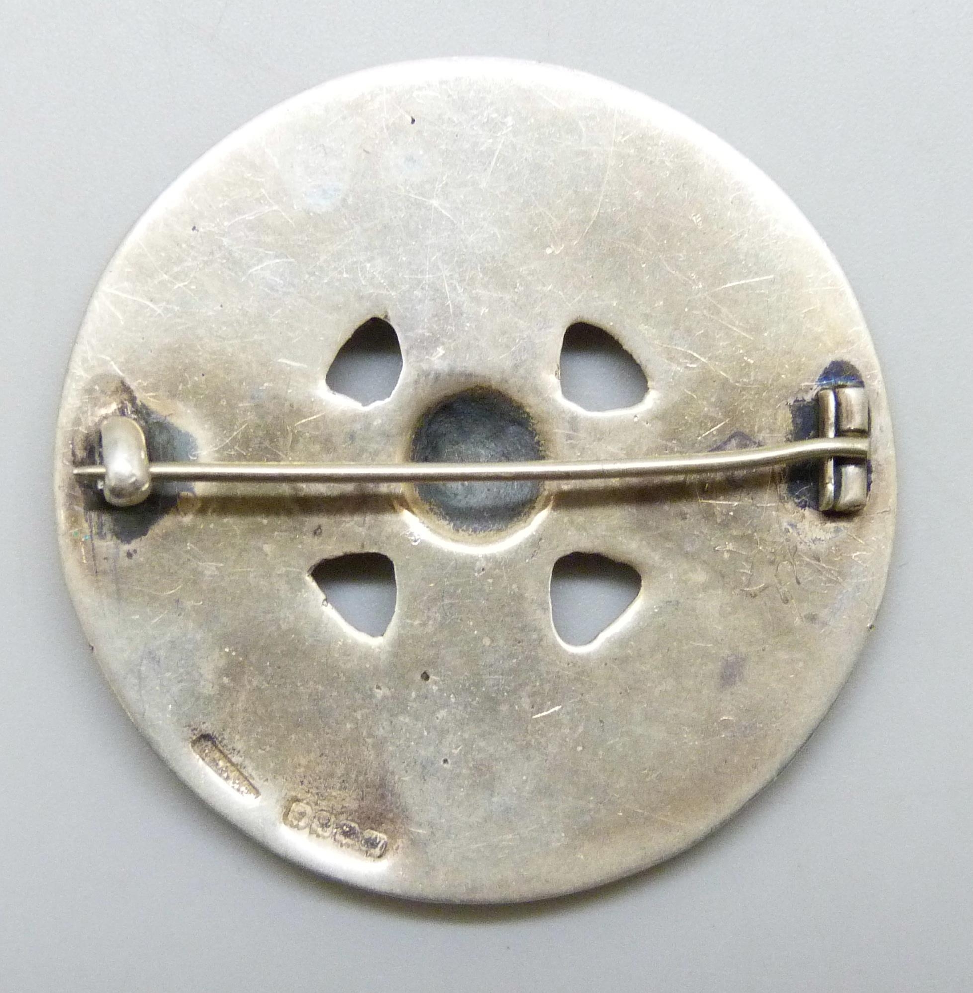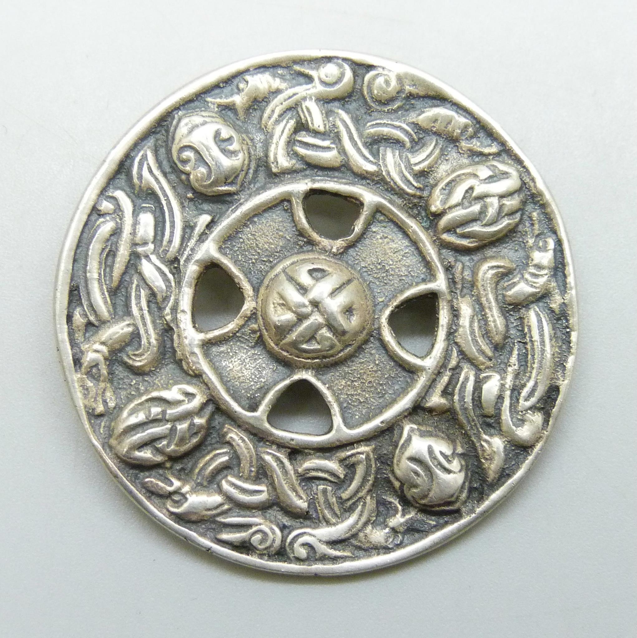 A large 1940s Scottish silver Celtic shield brooch, hallmarked Glasgow, 1945, 4.4cm