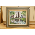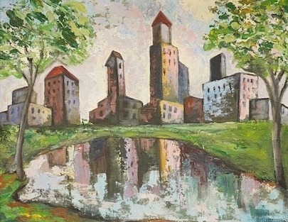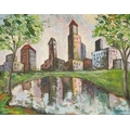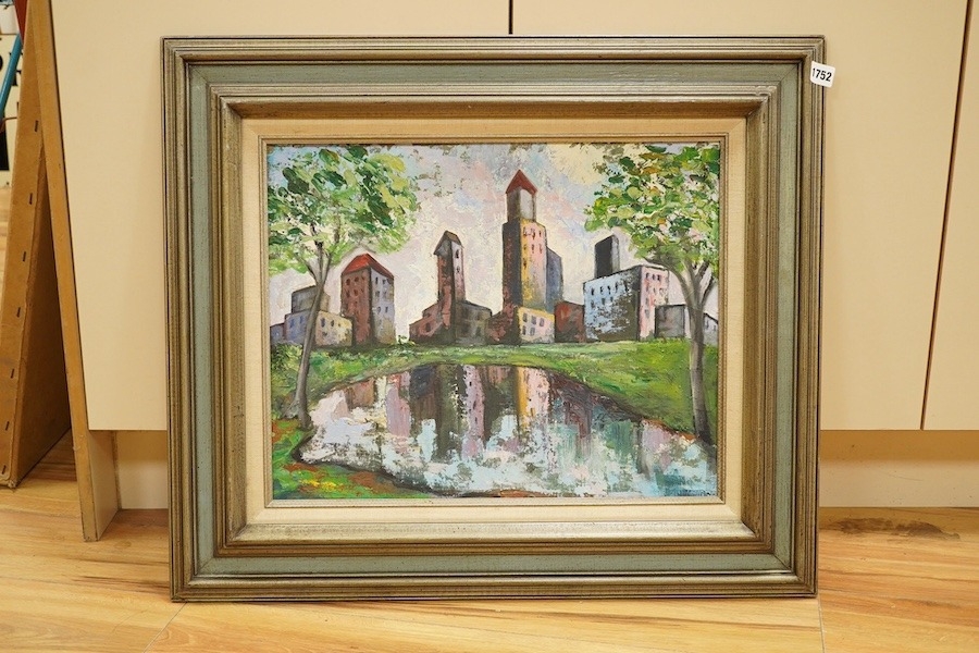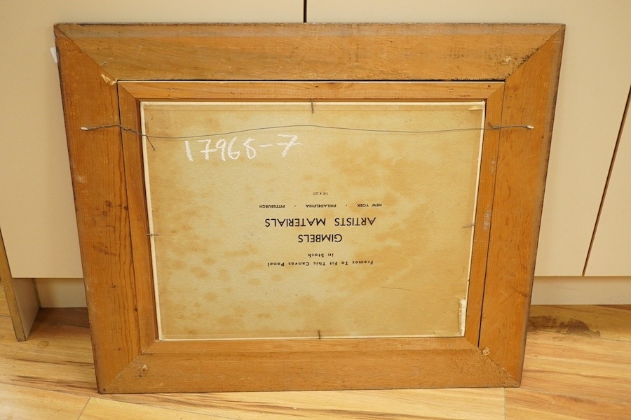 Mid century, oil on artists board, Cityscape, 39 x 50cm. Condition - good