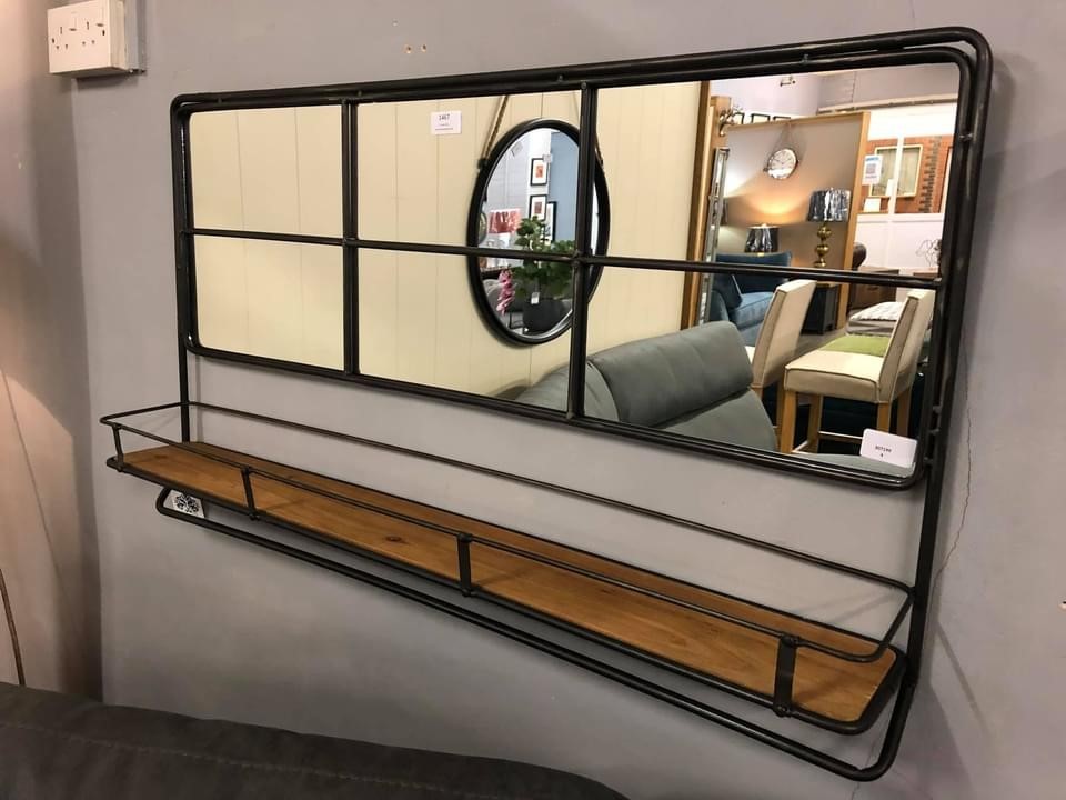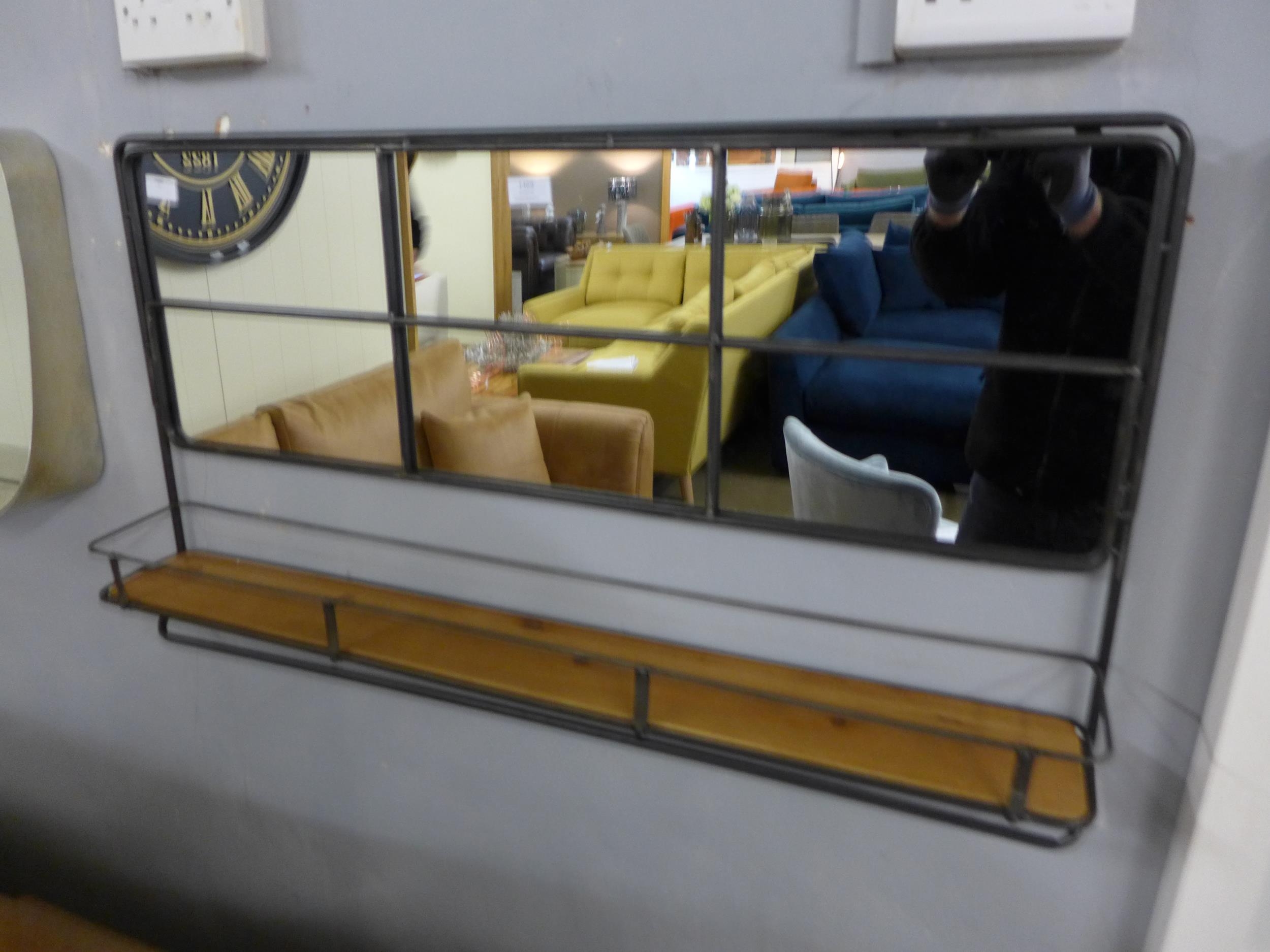 An industrial metal wall mirror with shelf, H 55cms x W 94cms (RFB3342) #