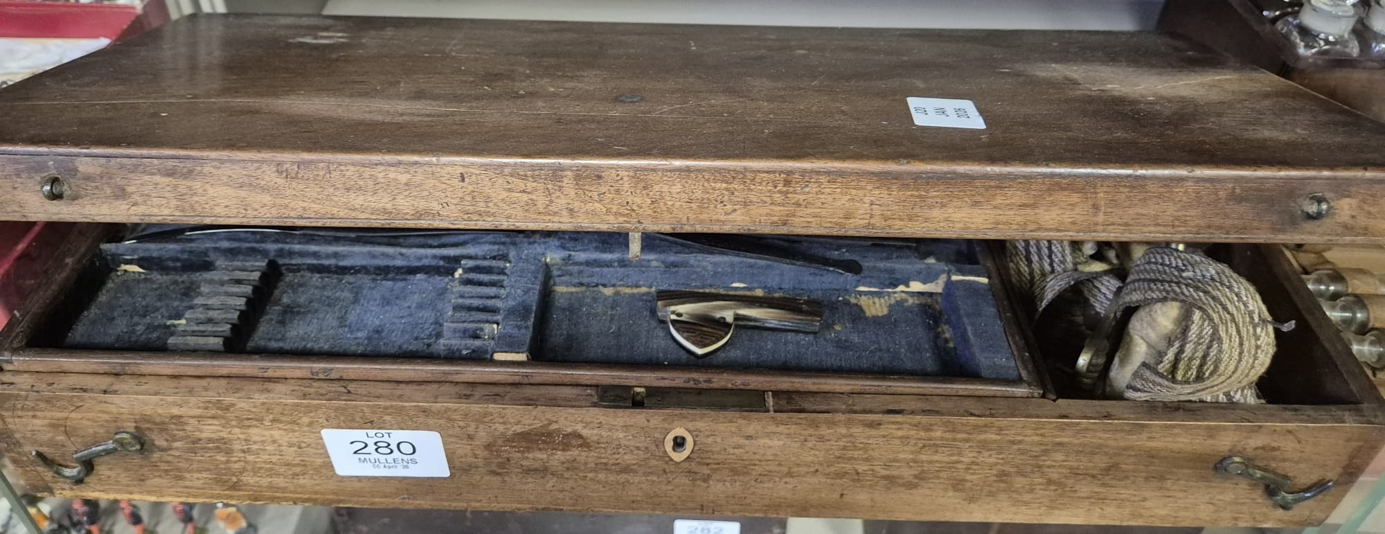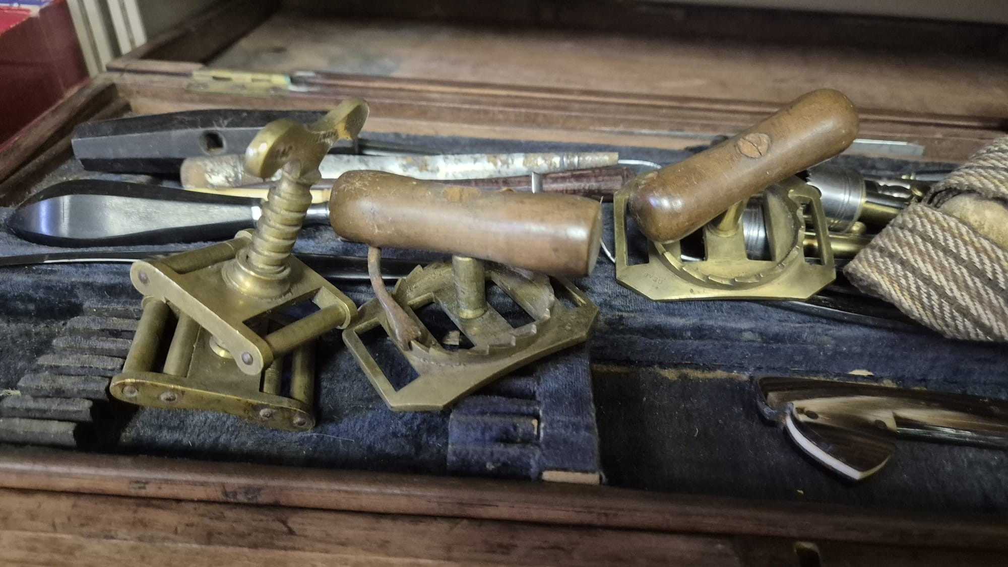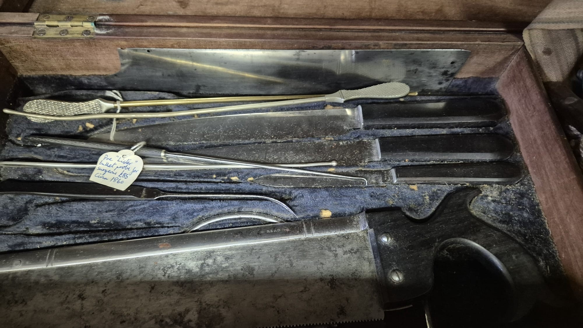 AN ANTIQUE CASED FIELD SURGEONS SET to include a miscellaneo...
