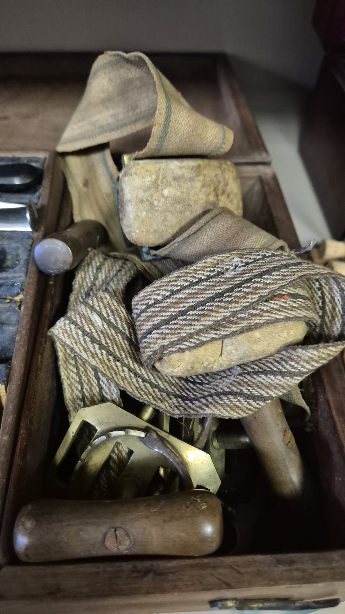 AN ANTIQUE CASED FIELD SURGEONS SET to include a miscellaneous collection of antique surgeon's medical instruments, some signed Read of Parliament Street, including tourniquets, etc.