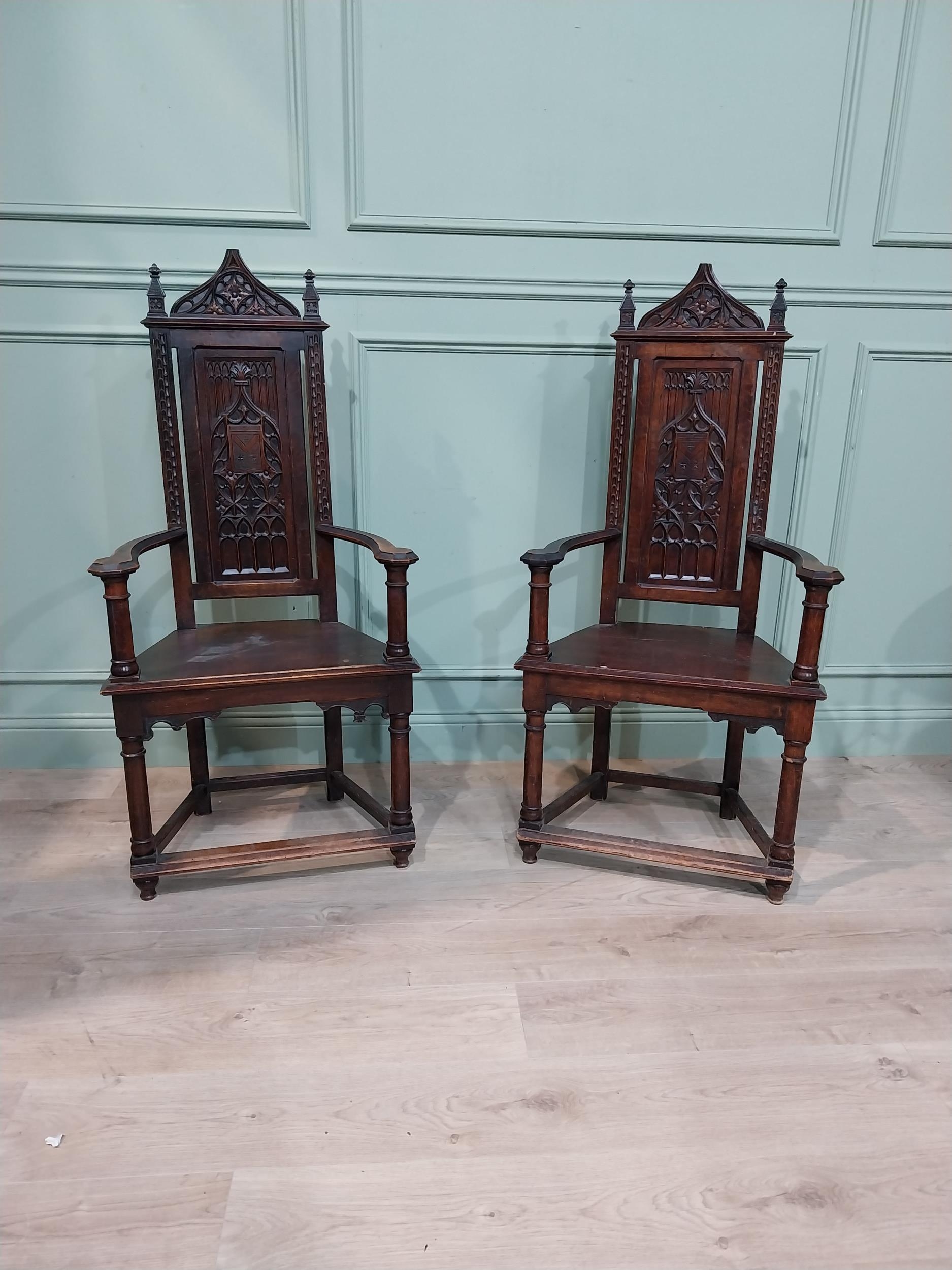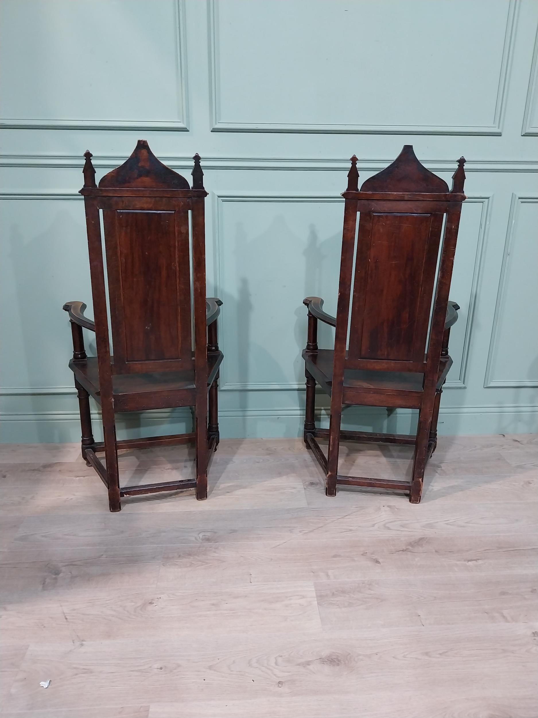 Pair of 19th C. carved oak throne chairs. {128 cm H x 60 cm W x 43 cm D}.