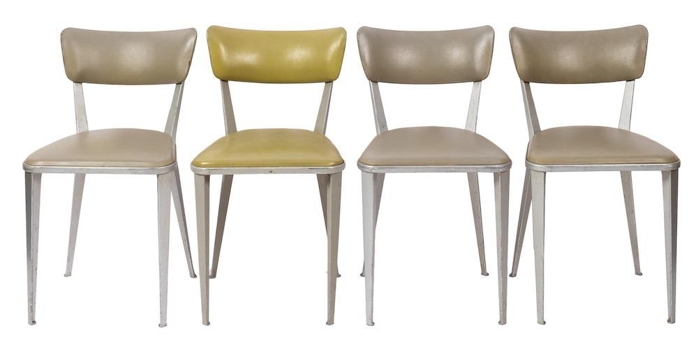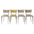 A set of four aluminium and faux leather covered chairs, model BA23, designed by Ernest Race for Race Furniture, circa 1946; each with a cast aluminium frame, pad seat and back, and cast 'BA23 Regd Design No.848794' to the undersides, 78cm high, 44cm wide