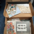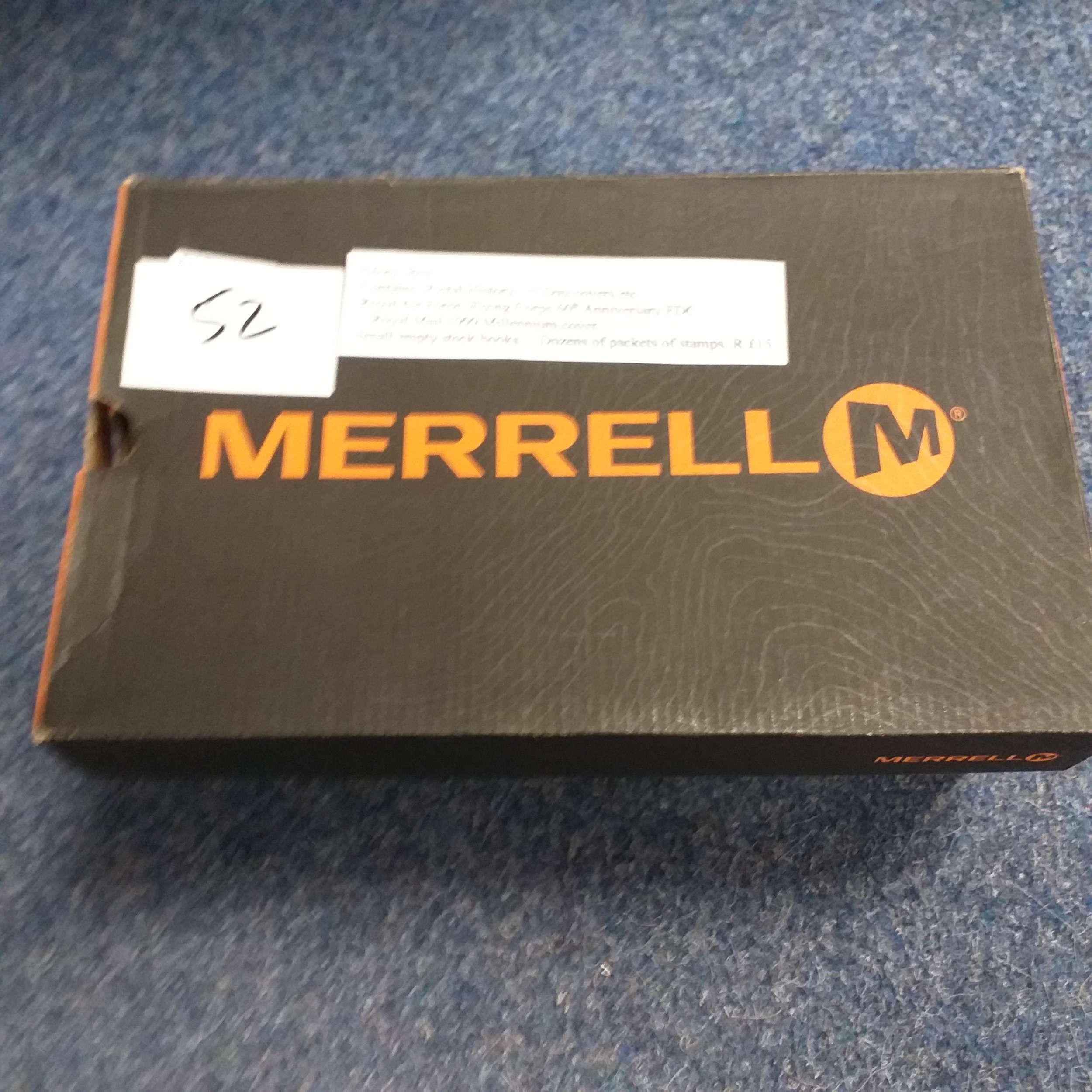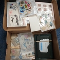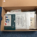 Merrell Shoe Box' Small Glory box containing Postal History, FDC's etc. Noted RAF 60th Anniv of RFC FDC & Royal Mail 1999 Millennnium cover, also small empty stock books and dozens of packets of stamps.