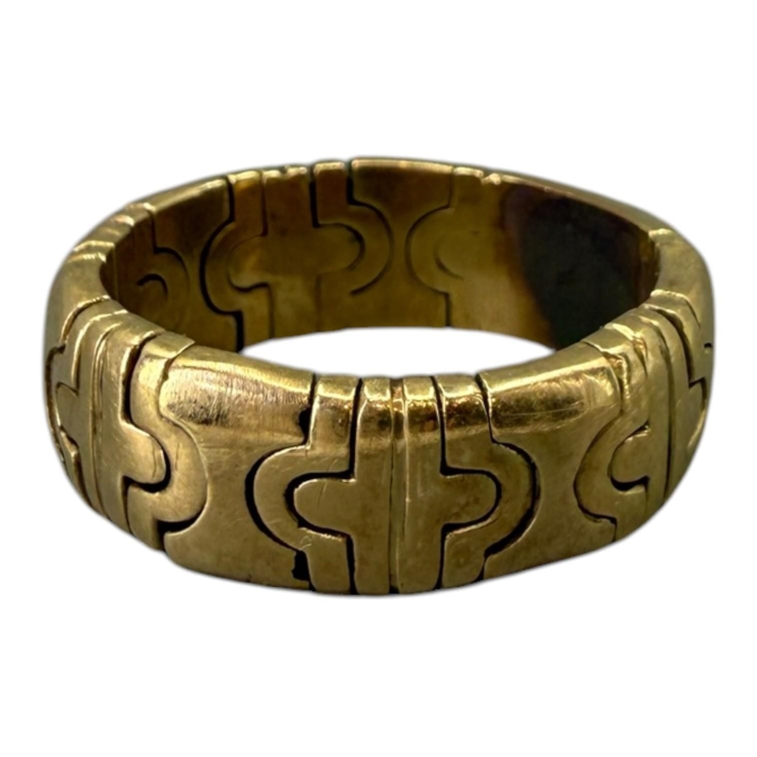 MANNER OF BVLGARI/BULGARI, 20TH CENTURY DESIGNER STYLE YELLOW METAL ‘PARENTESI’ RING (YELLOW METAL TESTS AS 9CT)