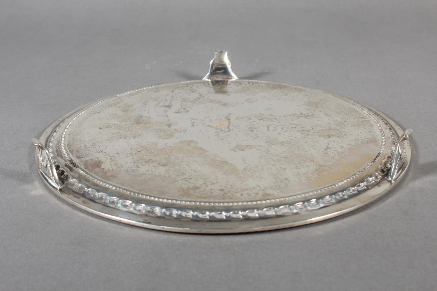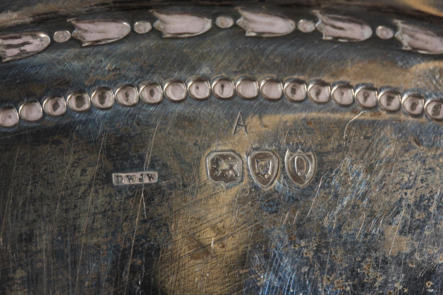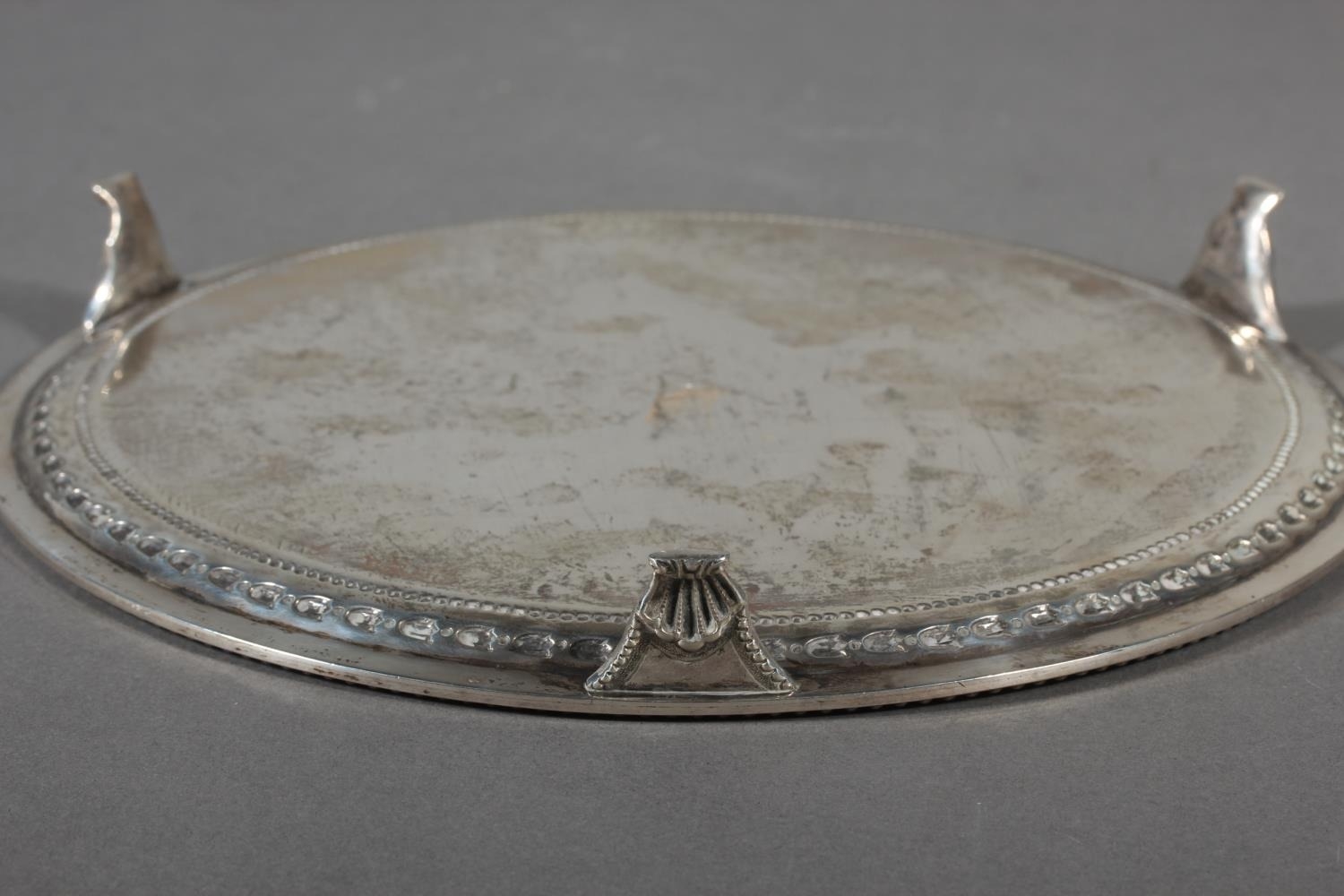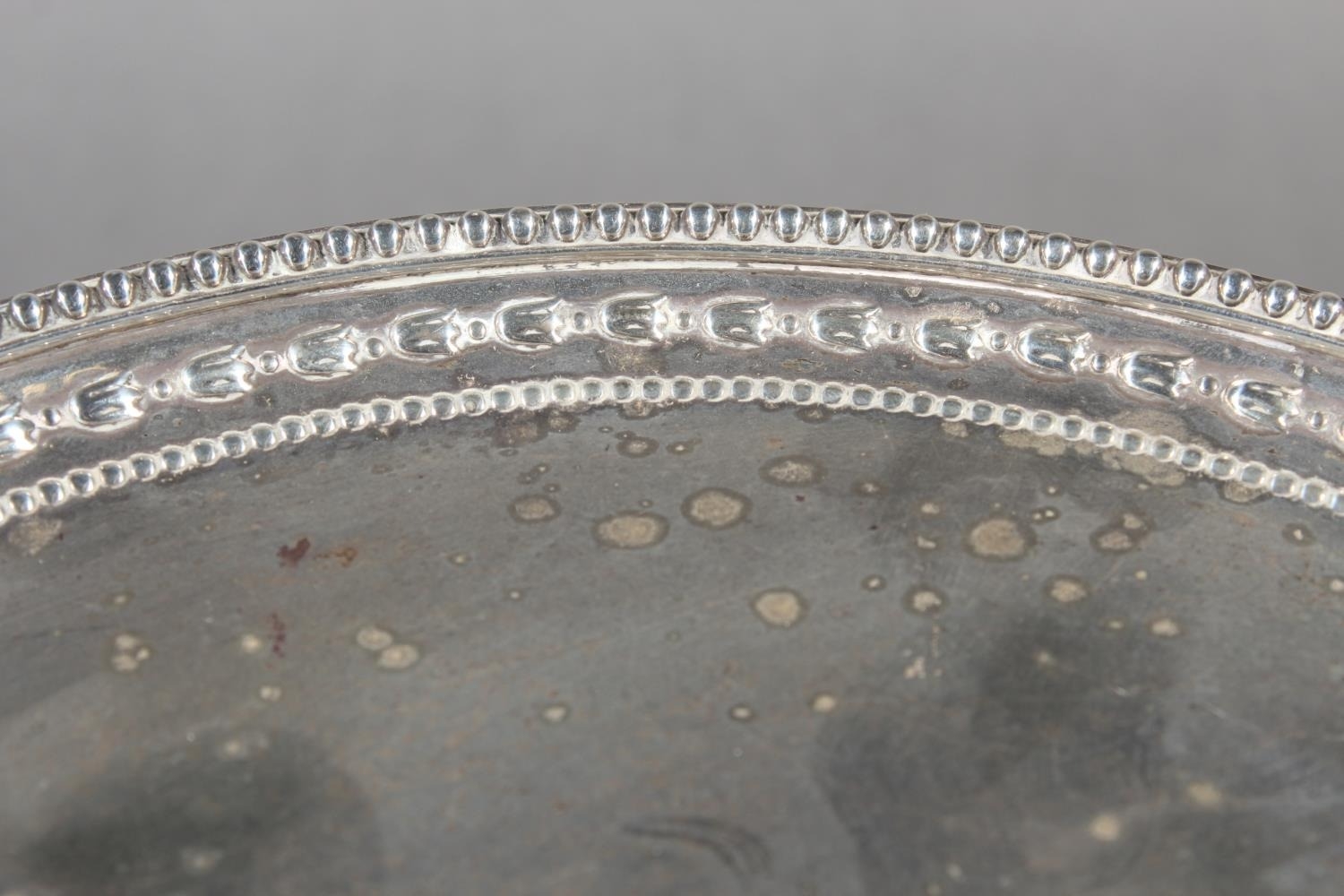 Victorian silver salver with decorative border and raised on tripod supports, Daniel & John Wellby, London, 1891, 'presented to Colonel Sir Basil Neven-Spence of Busta M.D.,F.R.C.P.Ed H.M Lieutenant for the county of Zetland on his retirement, 461g.