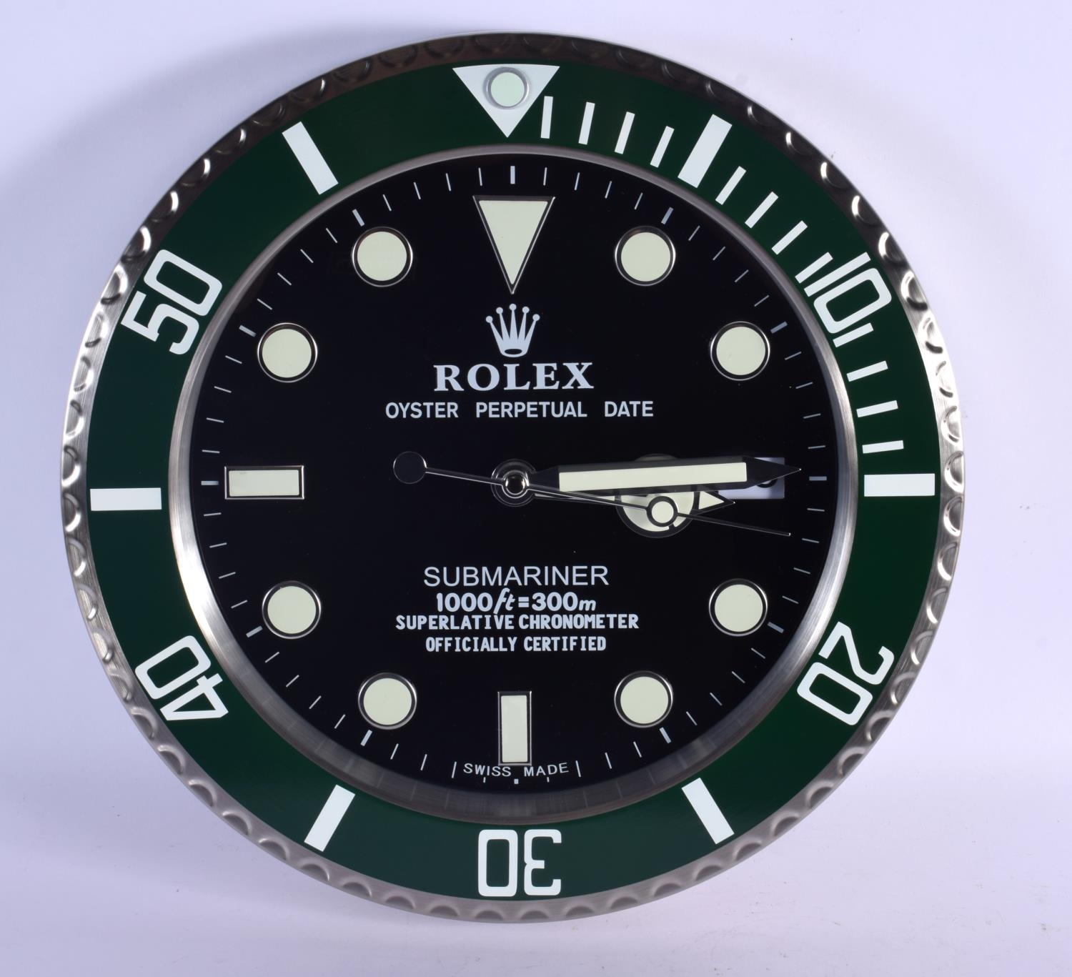 A ROLEX SHOP DISPLAY ADVERTISING WALL CLOCK. 33 cm diameter.