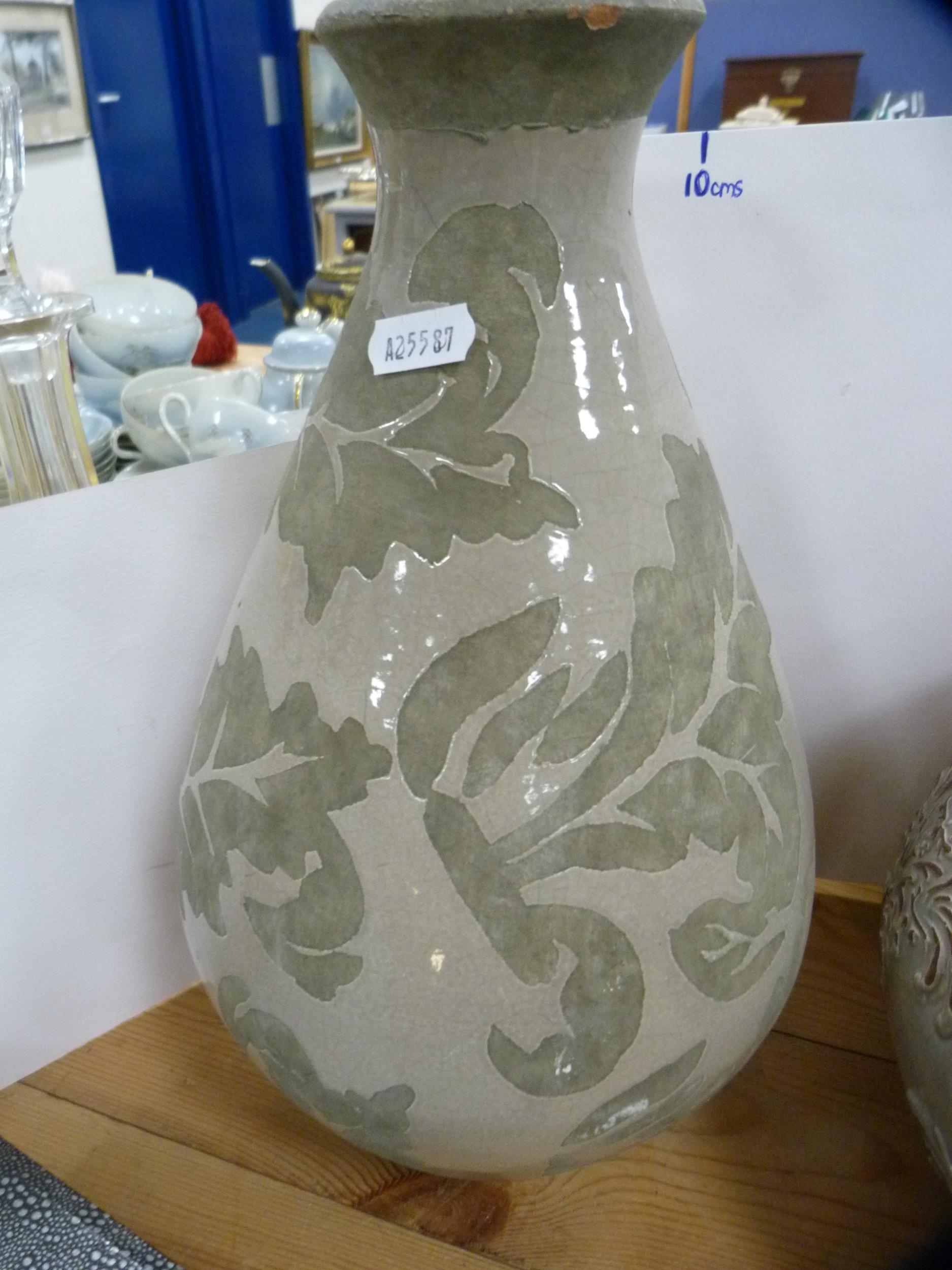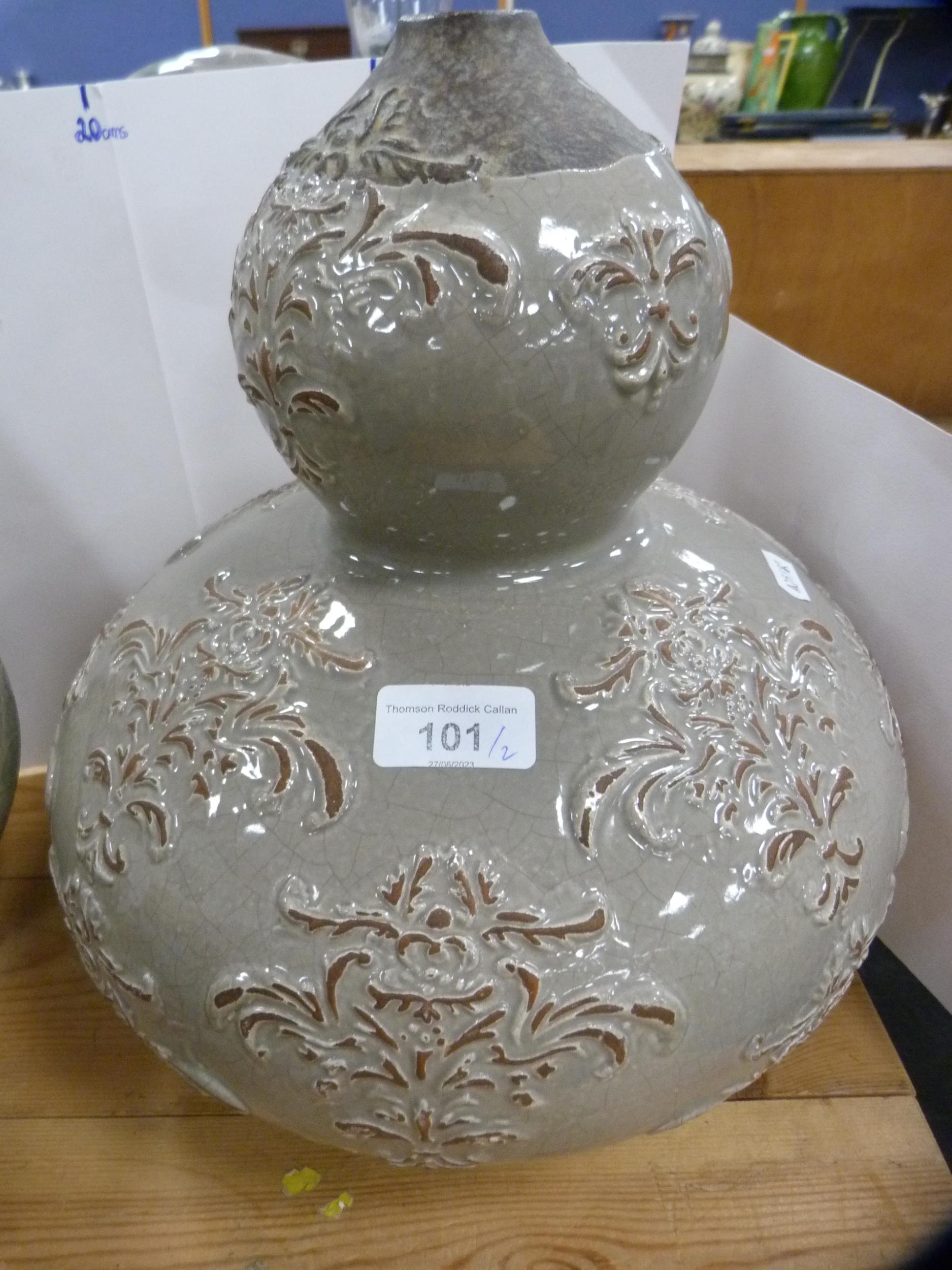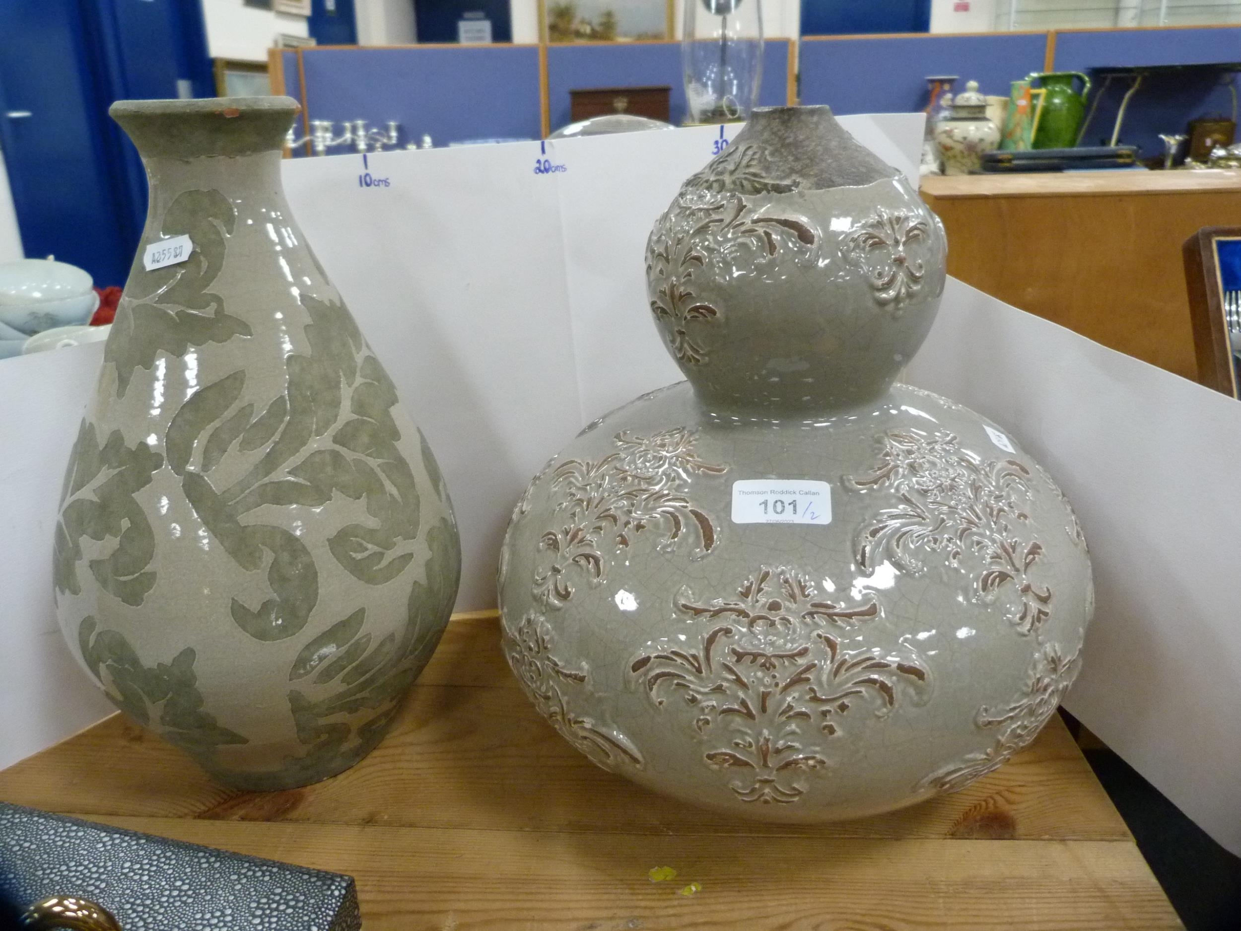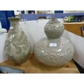 Double gourd studio pottery vase and a baluster-shaped studio pottery vase. (2)