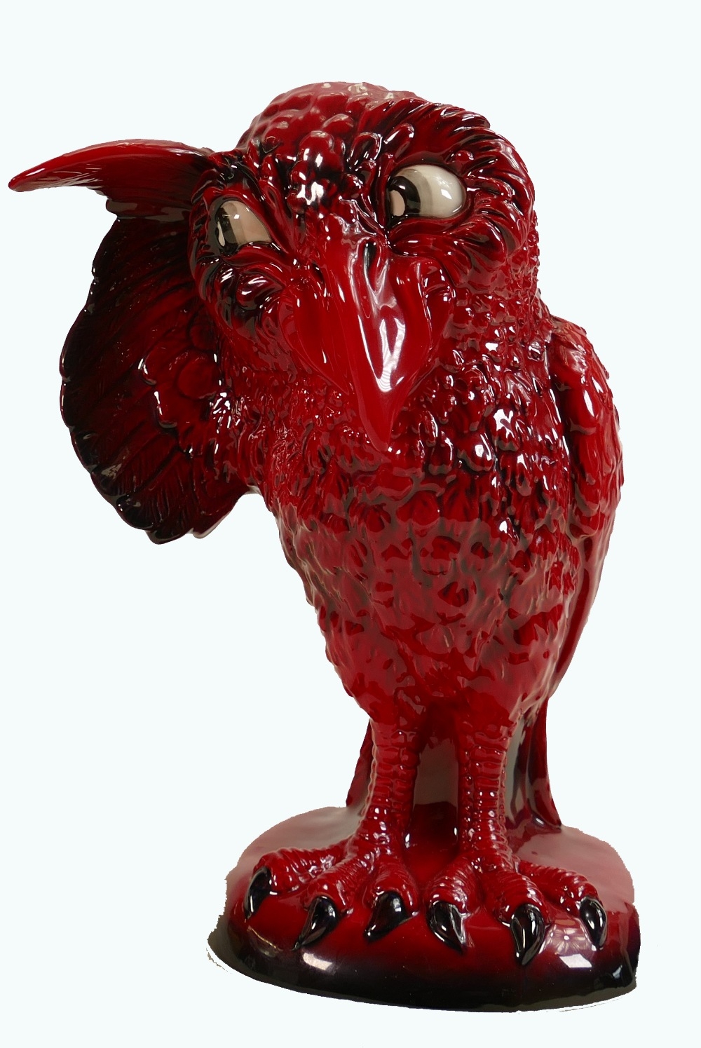 Kevin Francis Peggy Davies large Ruby Fusion comical grotesque bird ''The Listener'': Limited edition, with certificate, height 25cm.