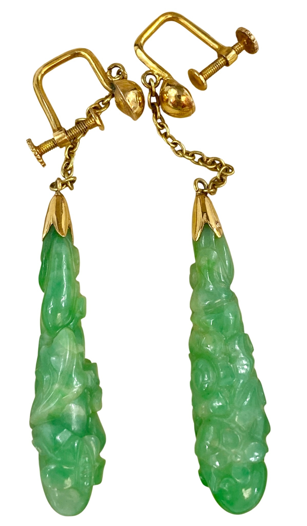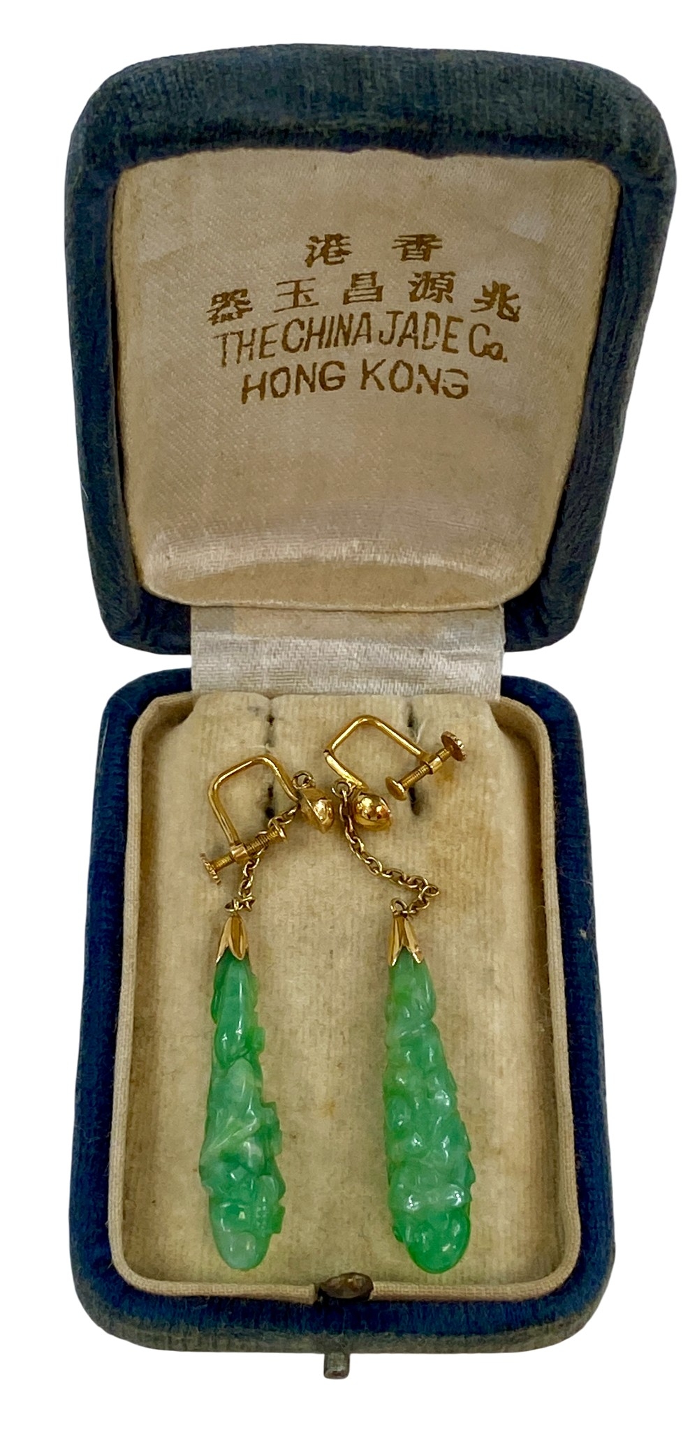 Pair of 14ct Gold and Jade earrings in box.From the China Jade Co, Hong Kong.