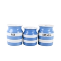 Two T G Green Cornish Kitchen Ware storage jars plus another. Including 'Oatmeal' and 'Rice', etc. Max. H18cm