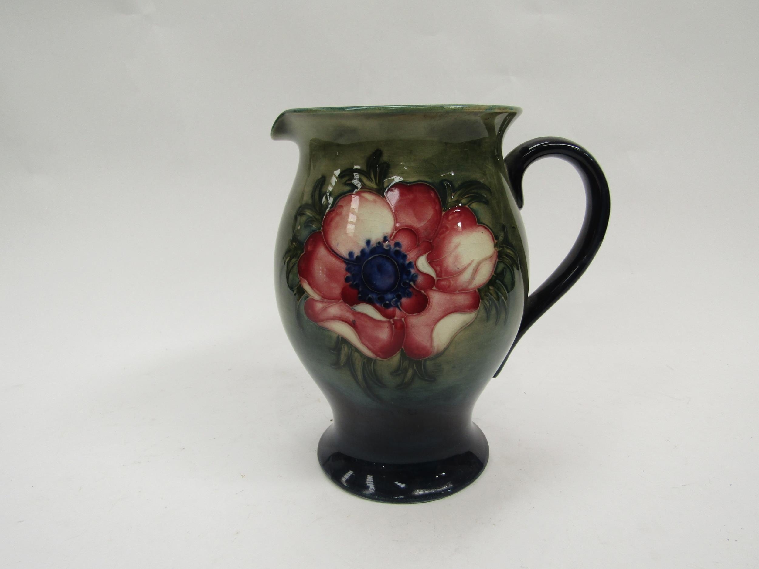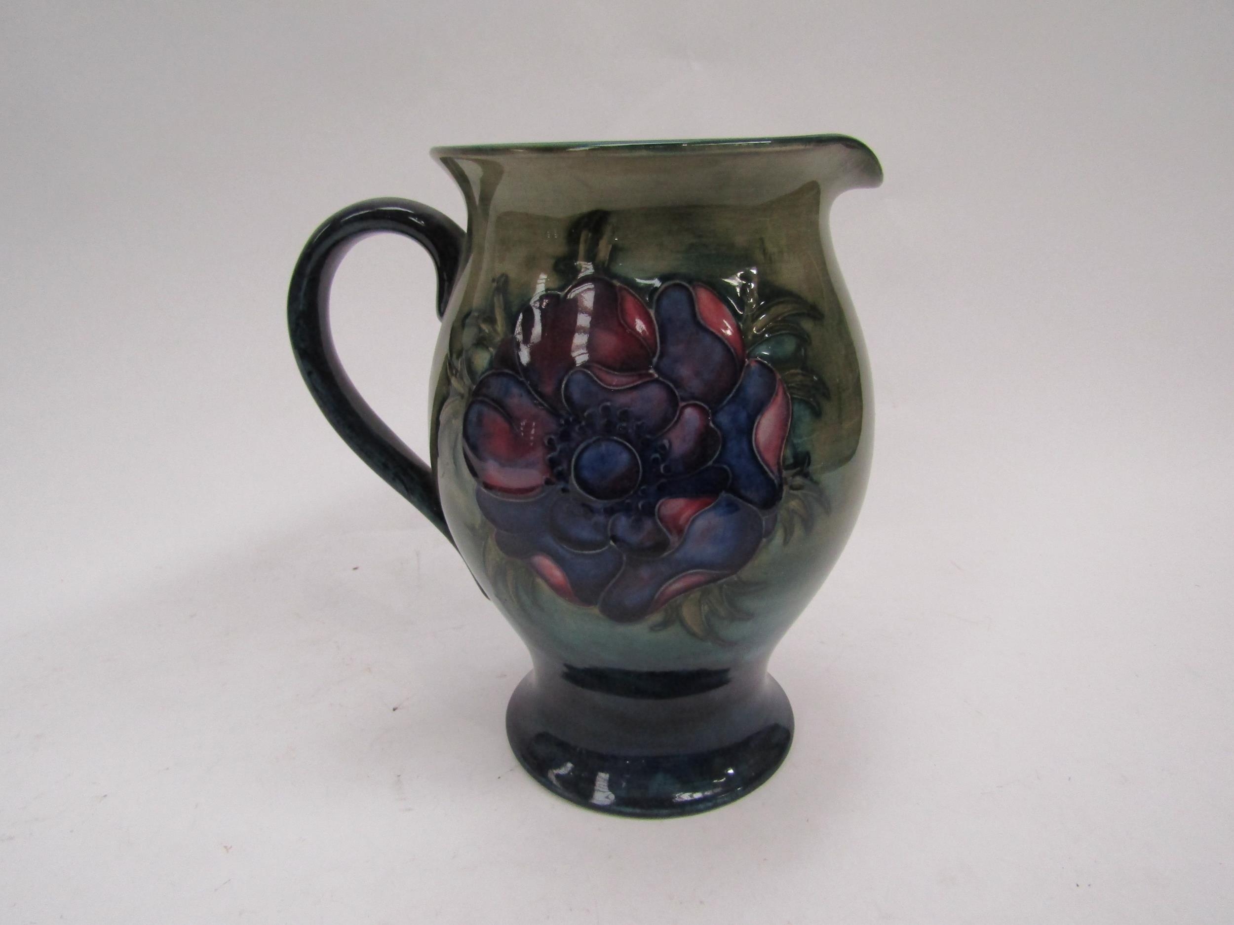 A Moorcroft Anemone pattern jug on green to blue ground, 19cm tall