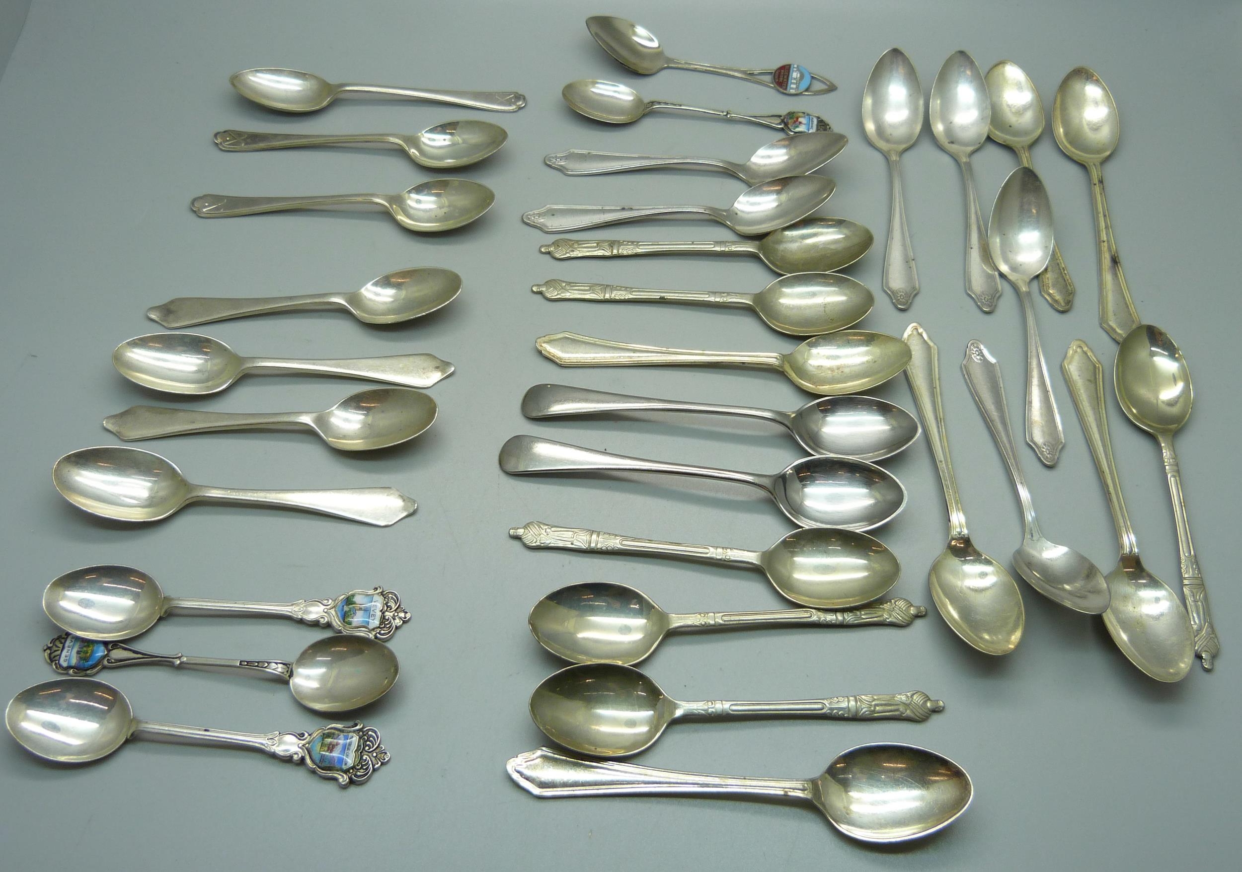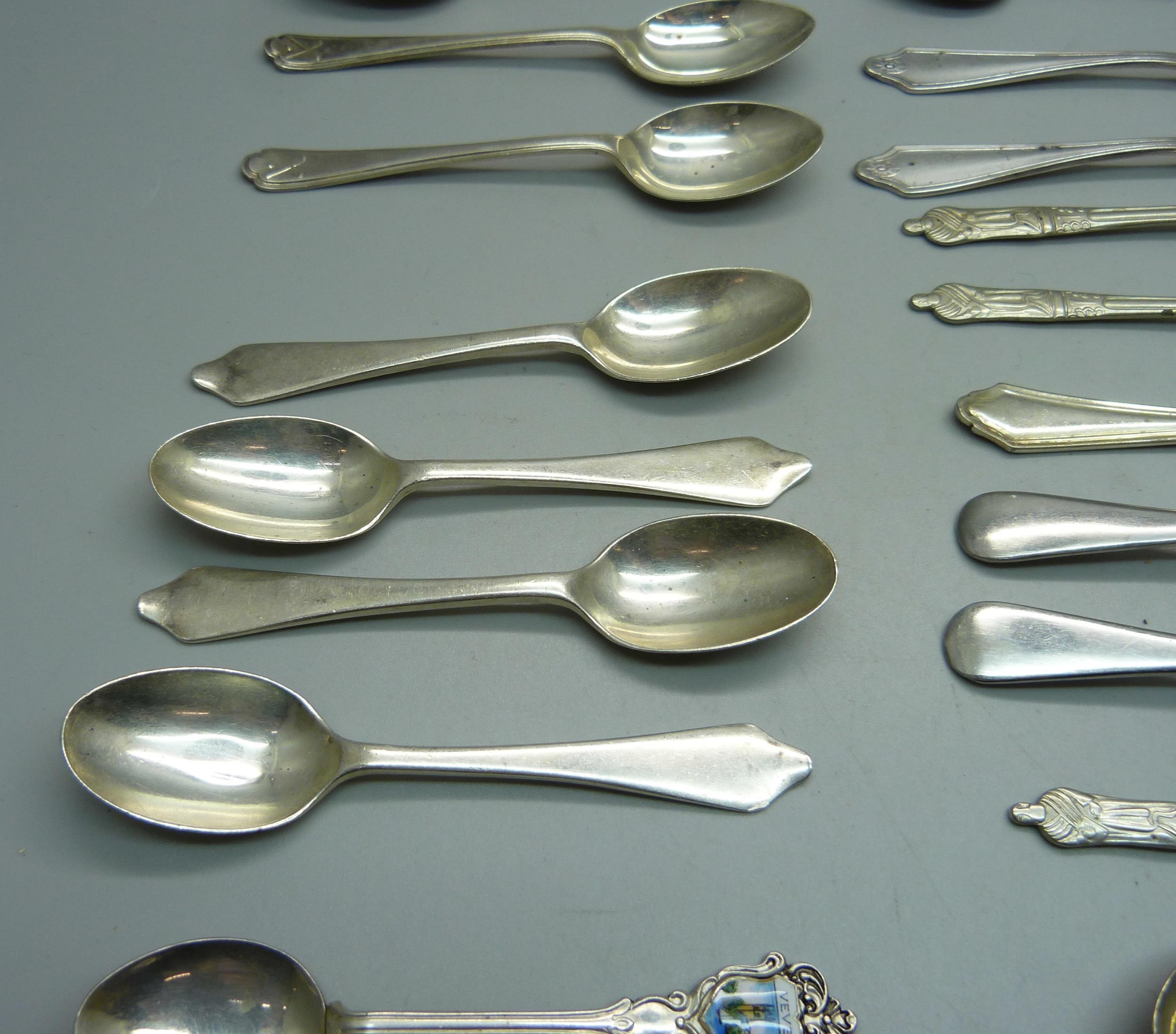 Collectors spoons; including 102g of hallmarked silver and 36g of .800 silver
