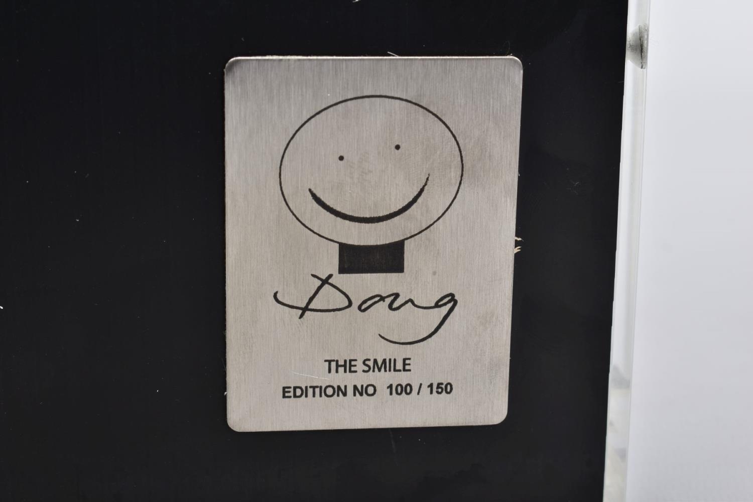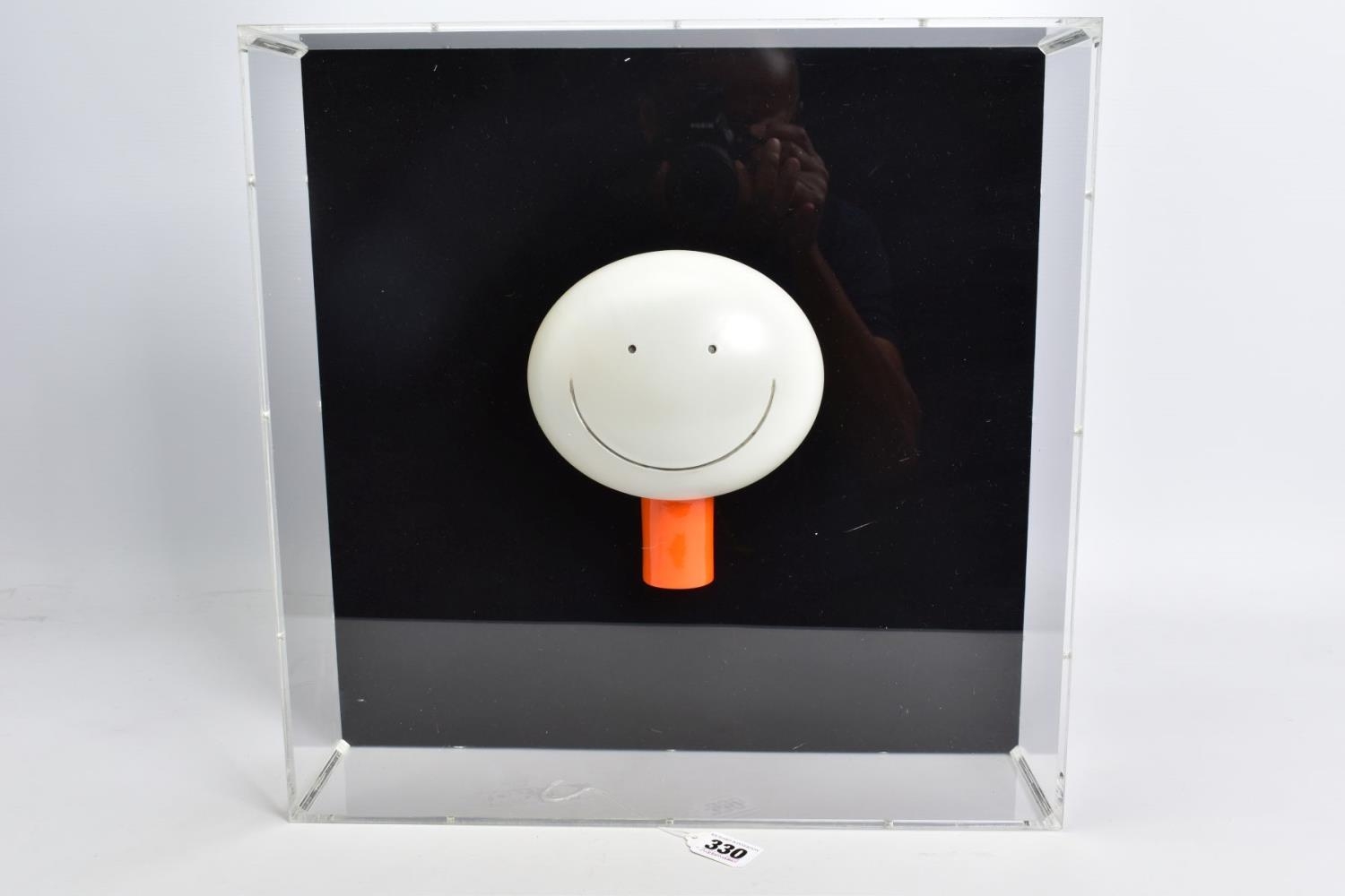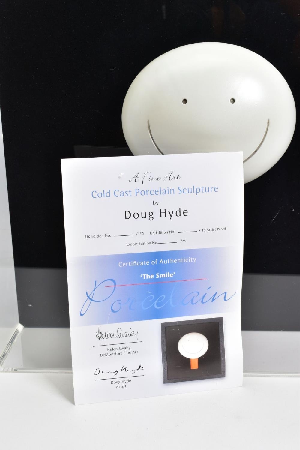DOUG HYDE (BRITISH 1972) 'THE SMILE (OBJET D'ART)', a limited edition coldcast porcelain sculpture of a smiling face, mounted within a perspex box 100/150, with certificate and box, approximate dimensions of perspex box 40cm x 40cm (condition: light scratches to perspex)