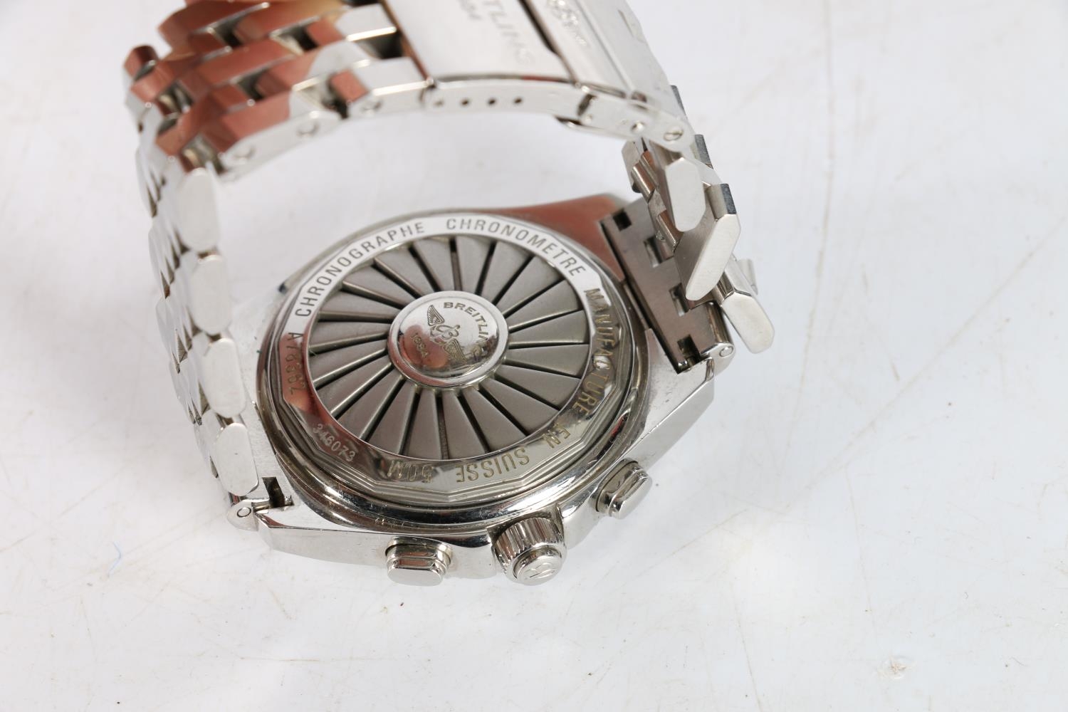 Breitling Chronometre B-1 A78362 wristwatch with stainless steel case, stainless steel strap and safety clasp.