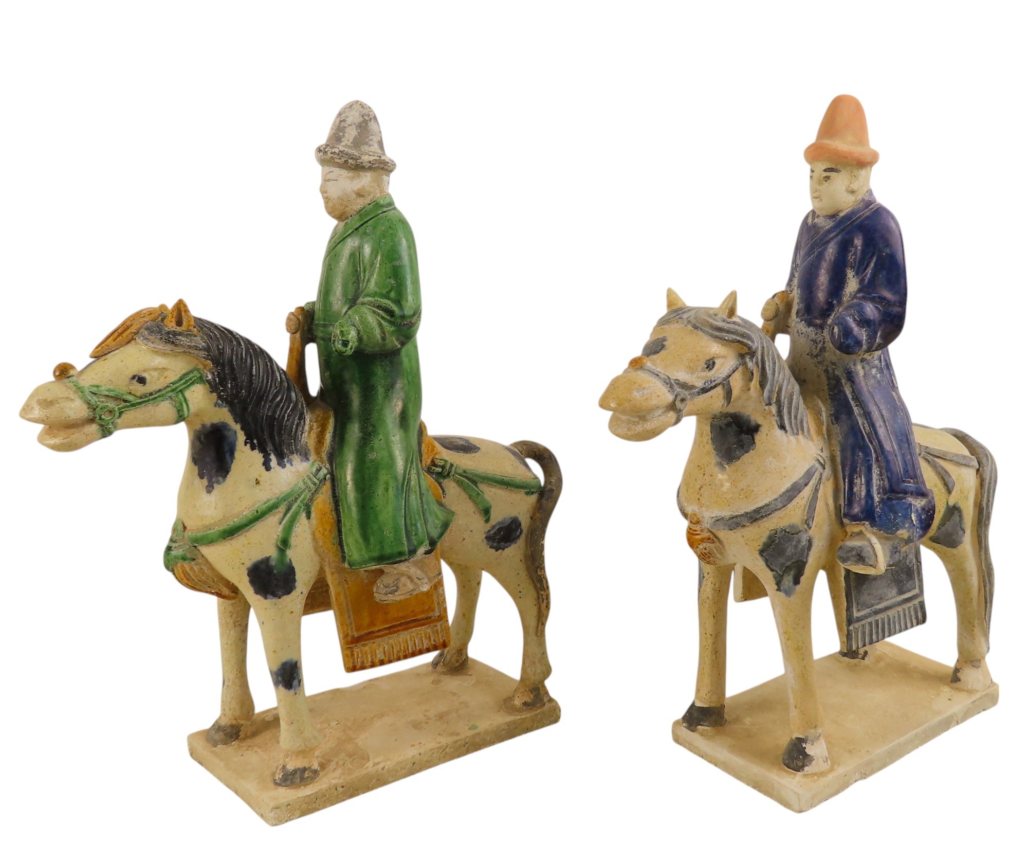 A PAIR OF SANCAI GLAZED POTTERY HORSE AND RIDERS