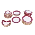 A red and gilt Simpsons Ambassador Ware dinner service. Comprising large and small plates, two tureens, oval dishes, etc.