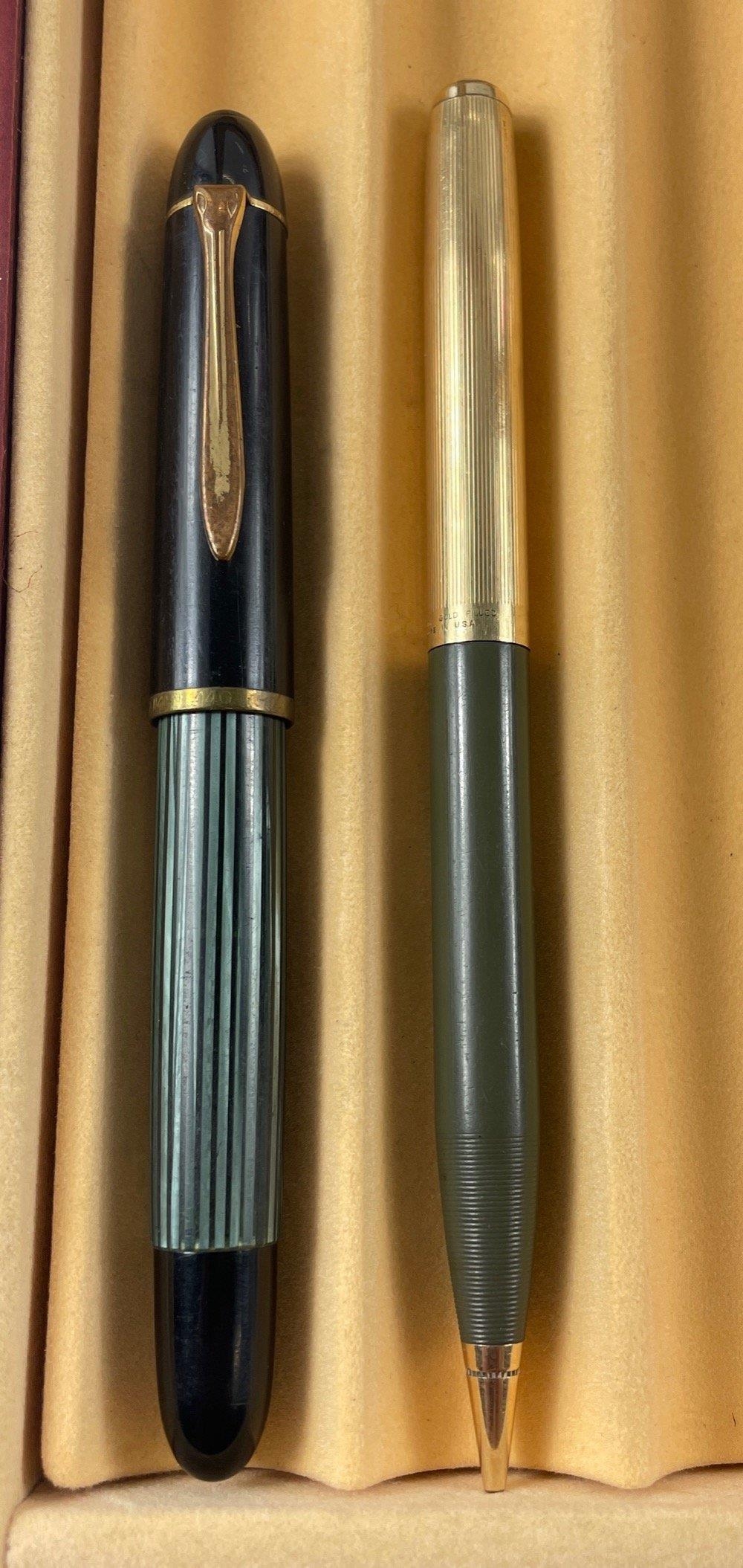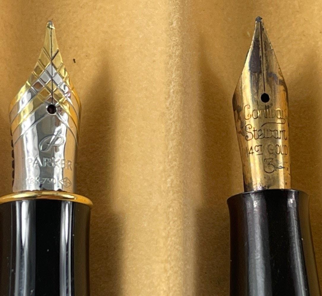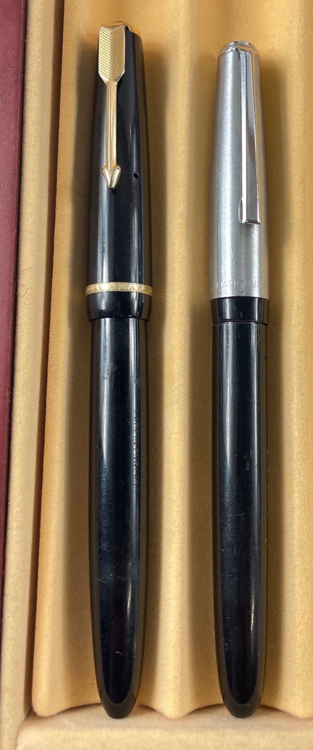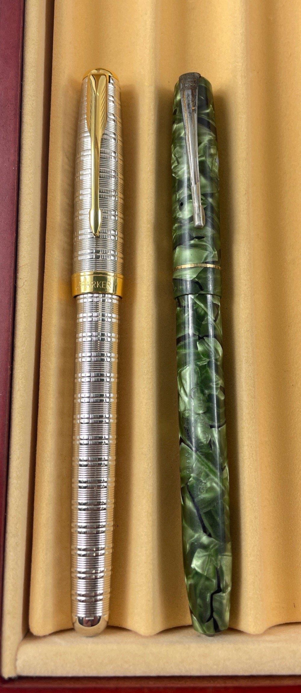 Modern 23 slot quality wooden Pen collectors cabinet complete with 24 vintage mainly fountain pens. Includes Parkers, Mentmore, Conway Stewart, Platignum etc.