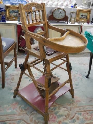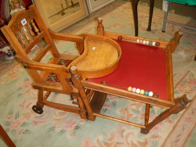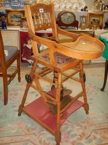 An early to mid 20th century metamorphic child's high chair. COLLECT ONLY.