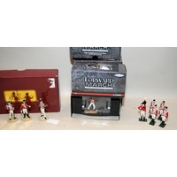 Model soldiers of the Napoleonic era: Britain's Redcoats Highlanders Ensign 44050, Inniskilling Ensign 44055, Private of the Coldstream Guards 43010. all boxed c/w Elite Command series Duke of Wellington with Infantrymen, boxed