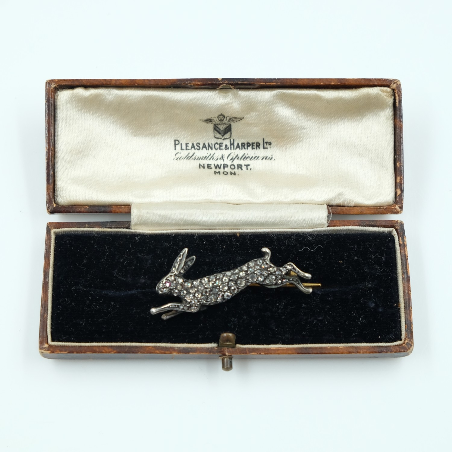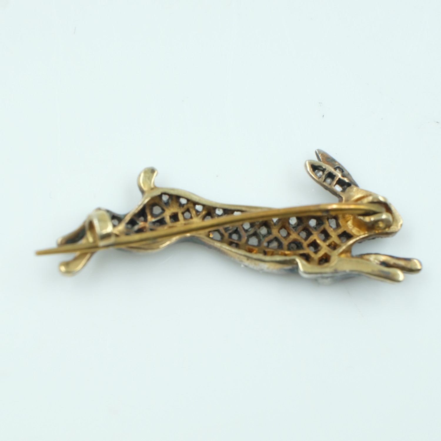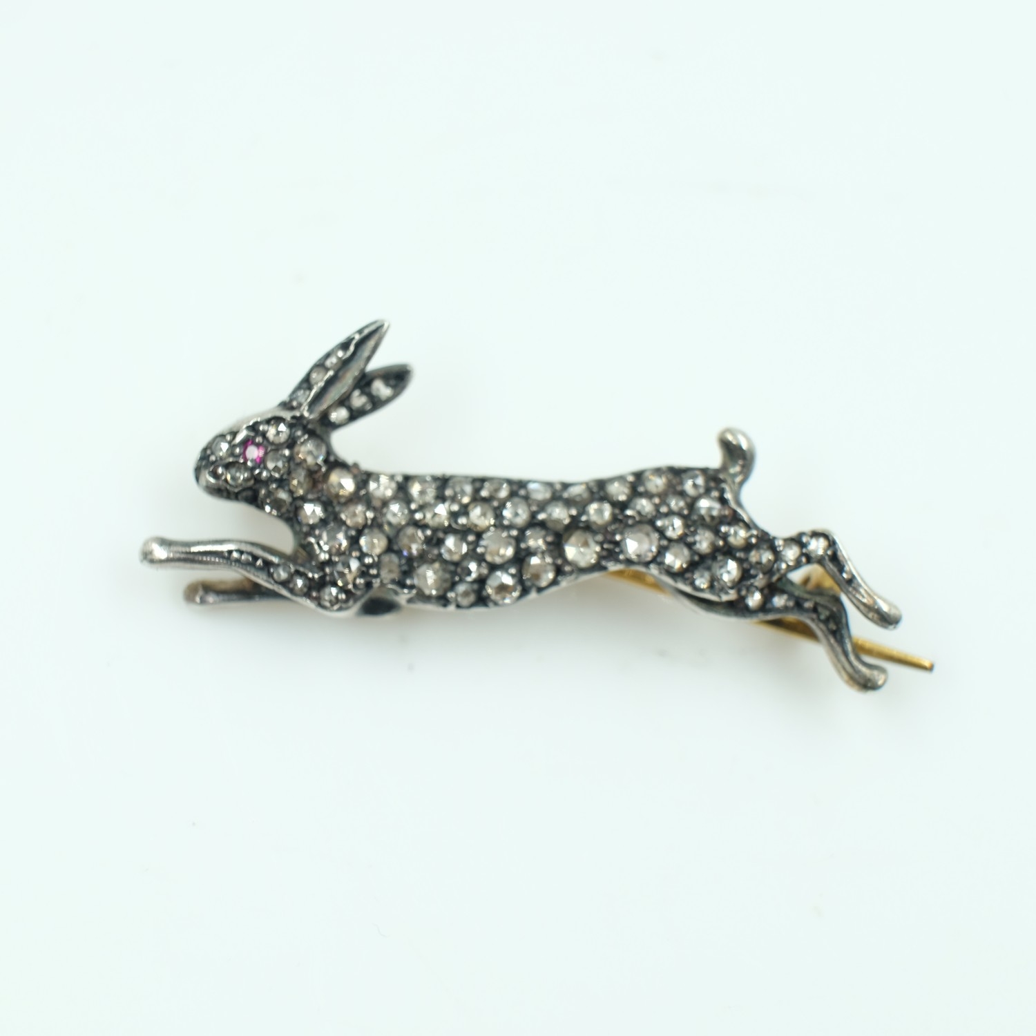 Antique style large rabbit brooch encrusted with rose cut diamonds and a ruby, L: 40 mm. UK P&P Group 0 (£7+VAT for the first lot and £1+VAT for subsequent lots)