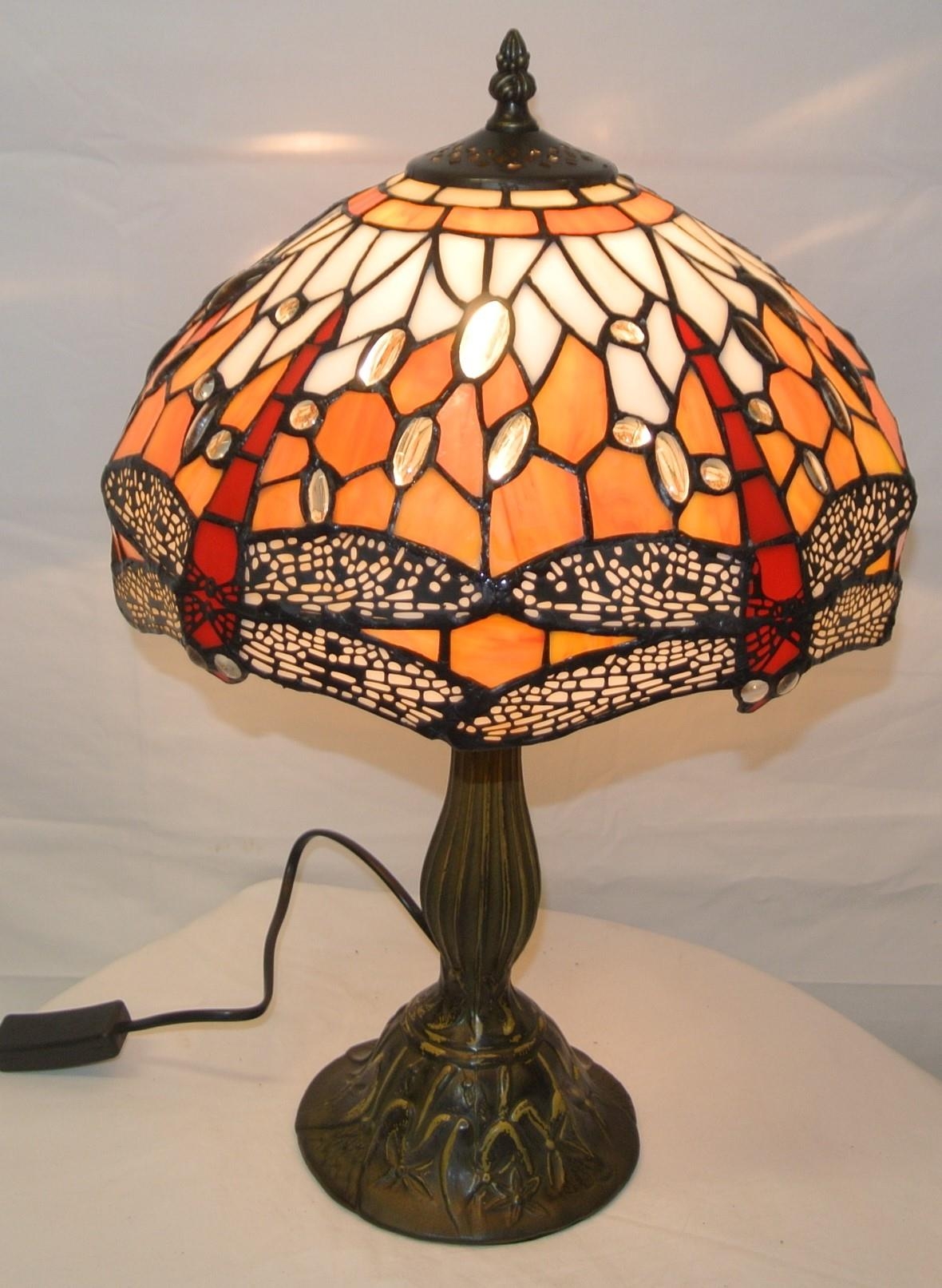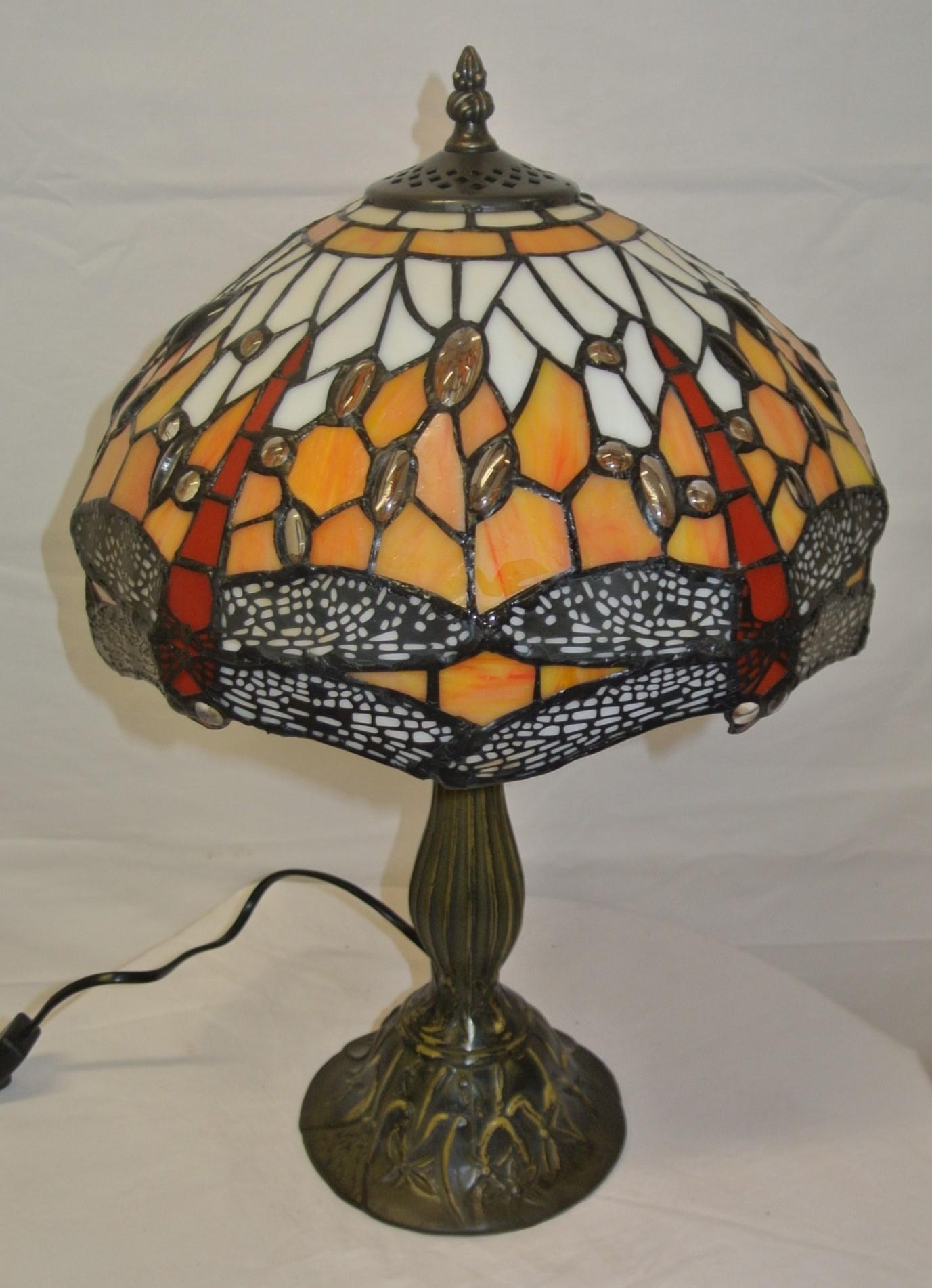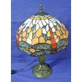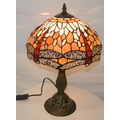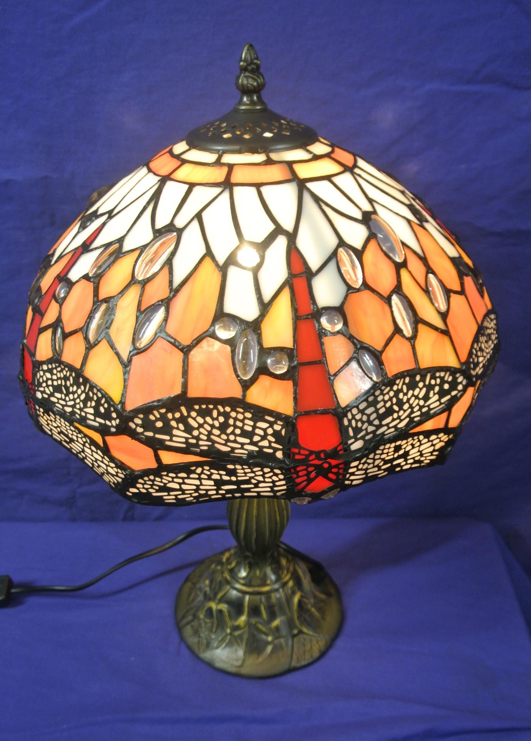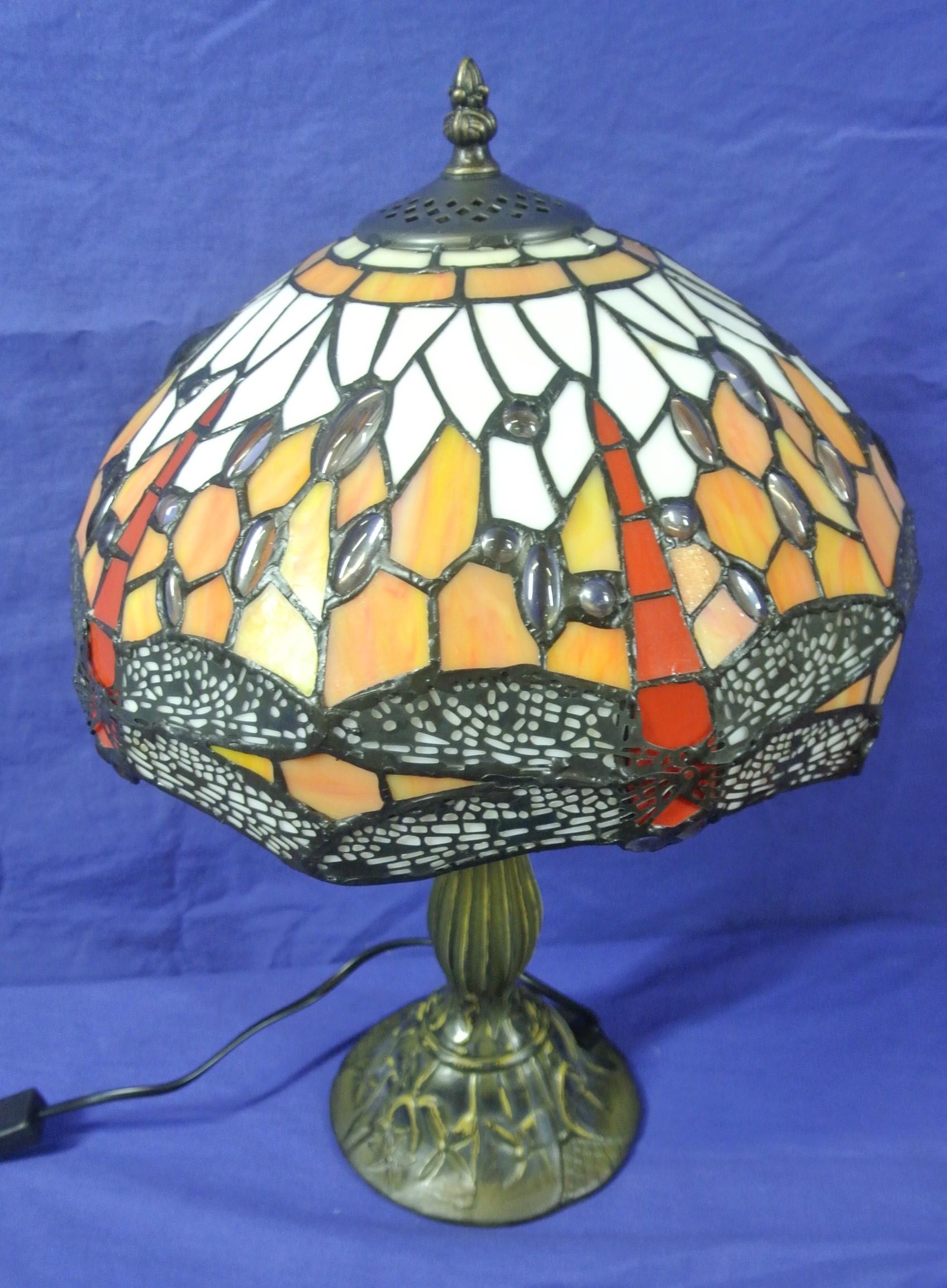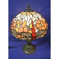 Art Deco style electric table lamp with multi-coloured butterfly decorated shade and shaped base