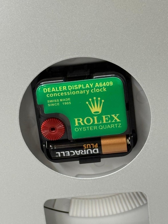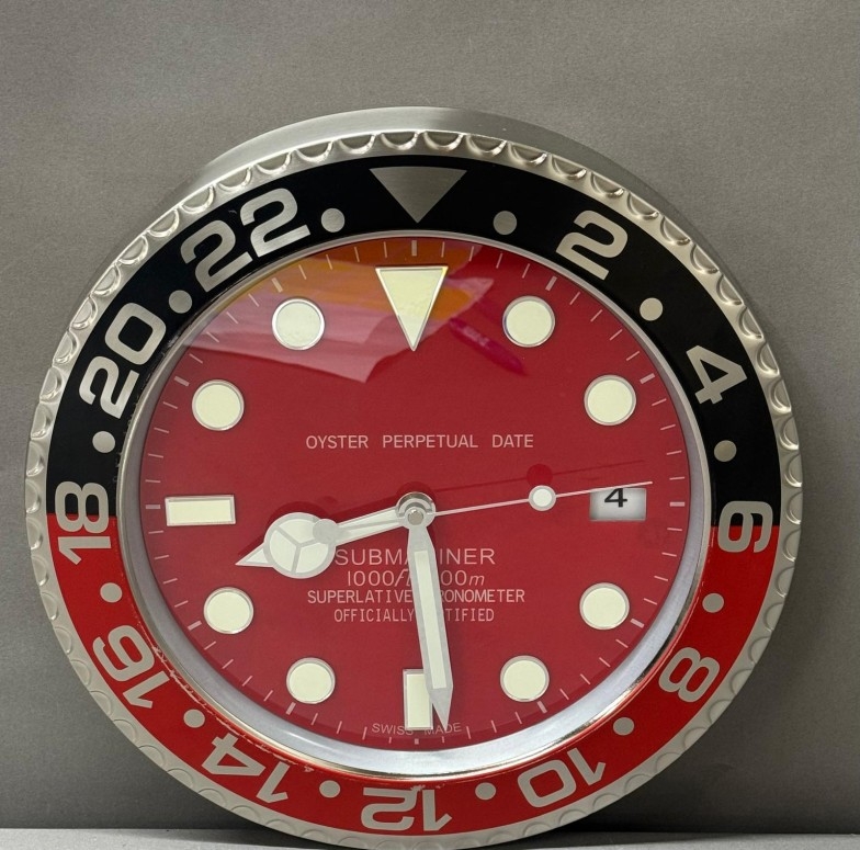 A Rolex-style dealer display metal wall clock with sweeping motion Dia34cm