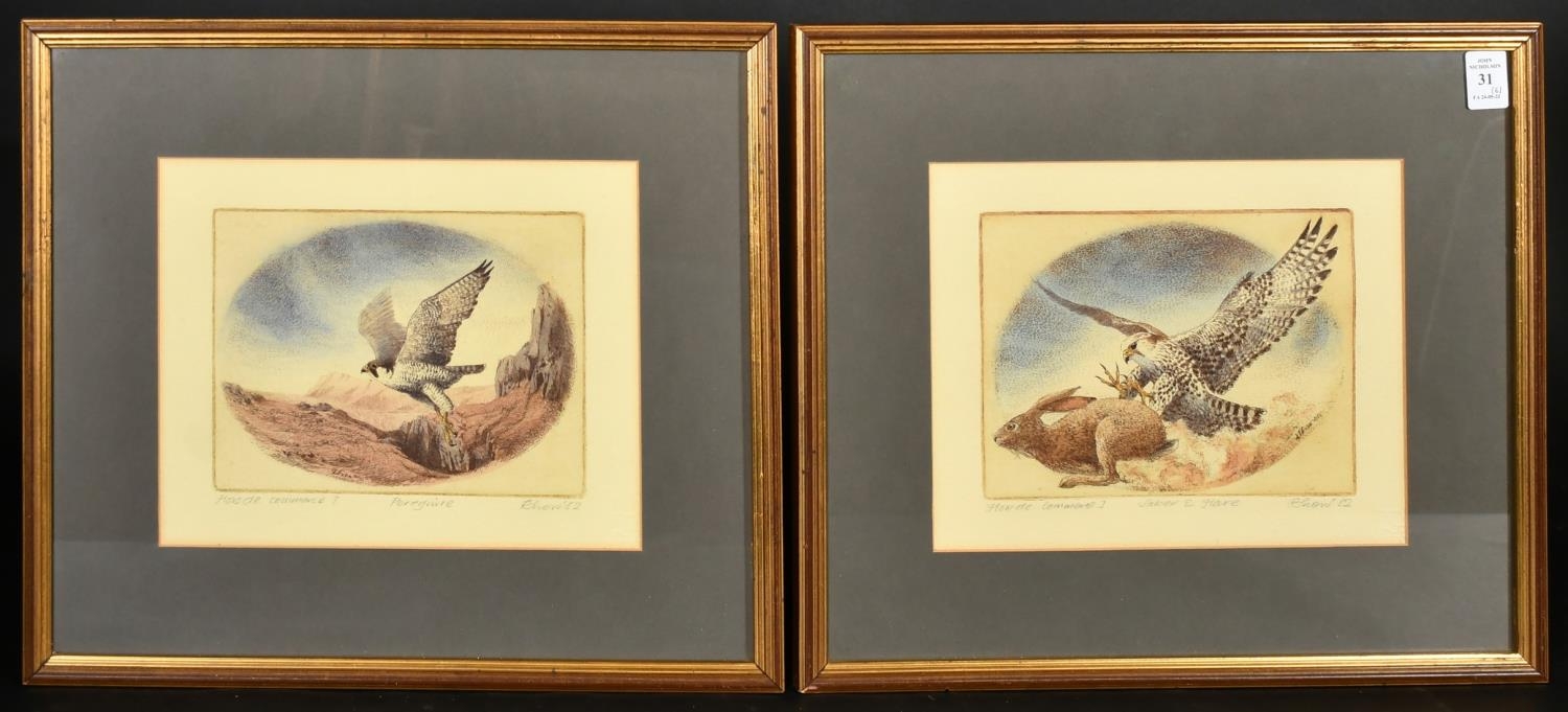 20th Century, a group of six prints relating to birds of prey, each signed and inscribed in pencil, plate size 6" x 8" (15 x 20cm), (6).