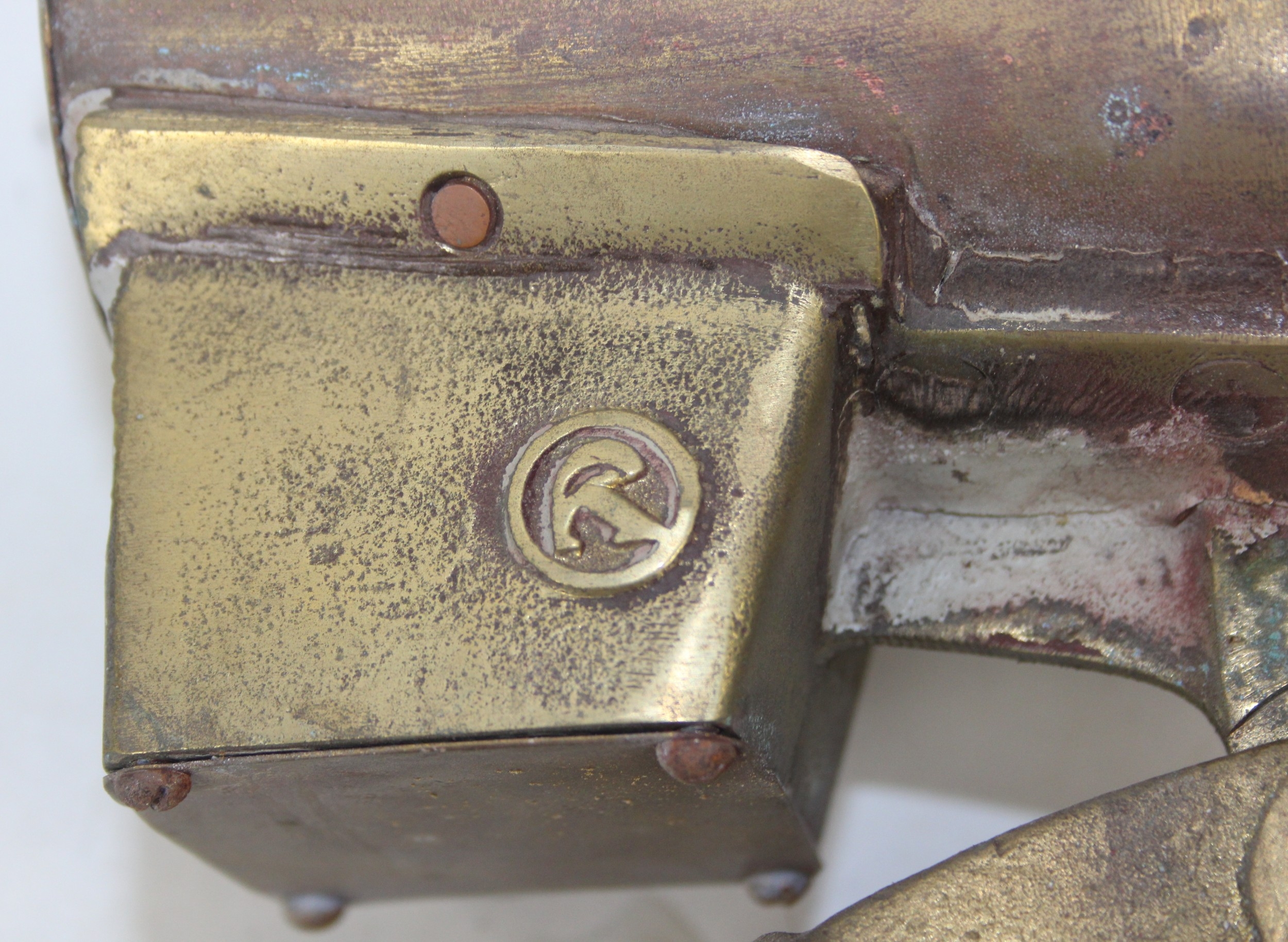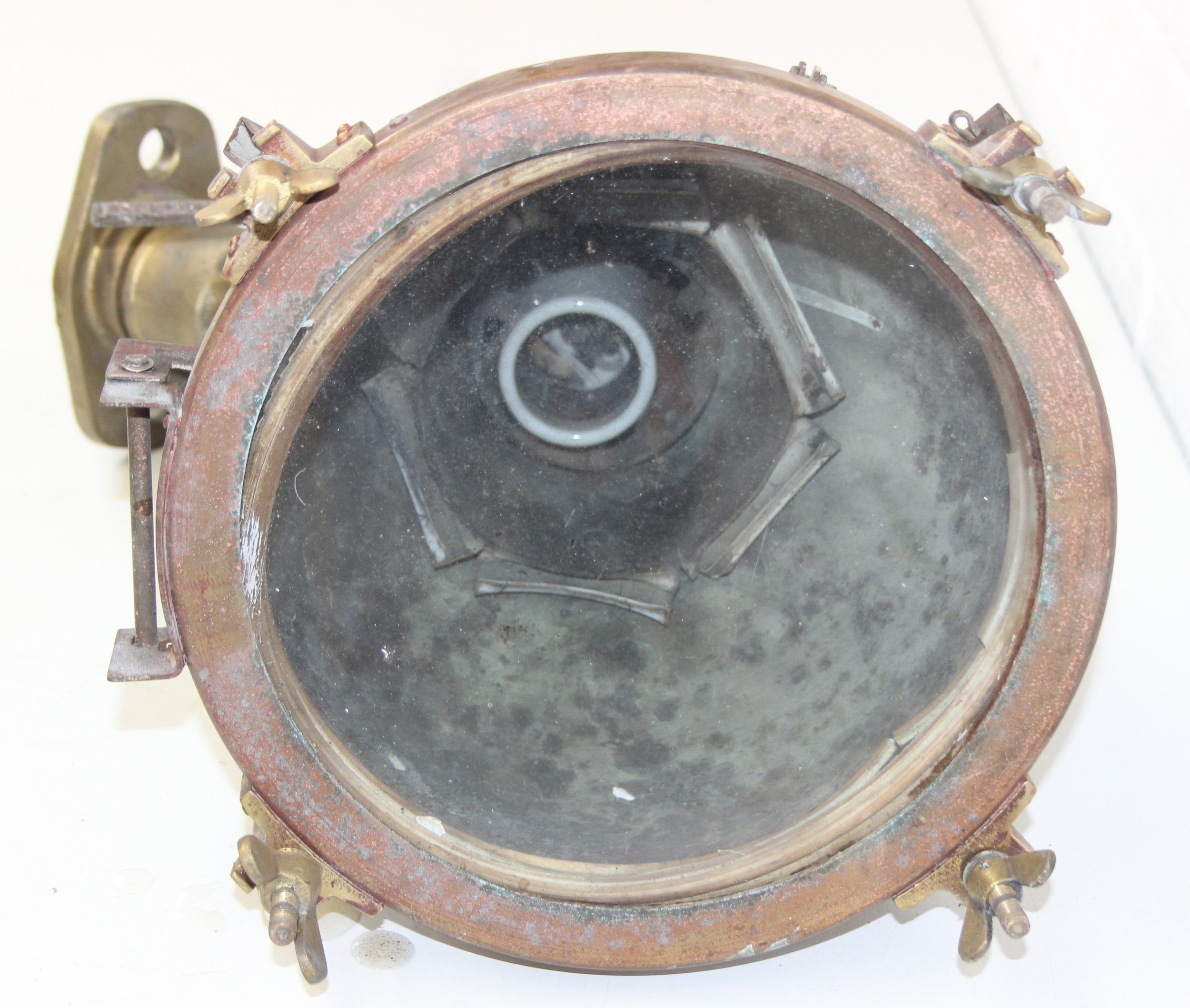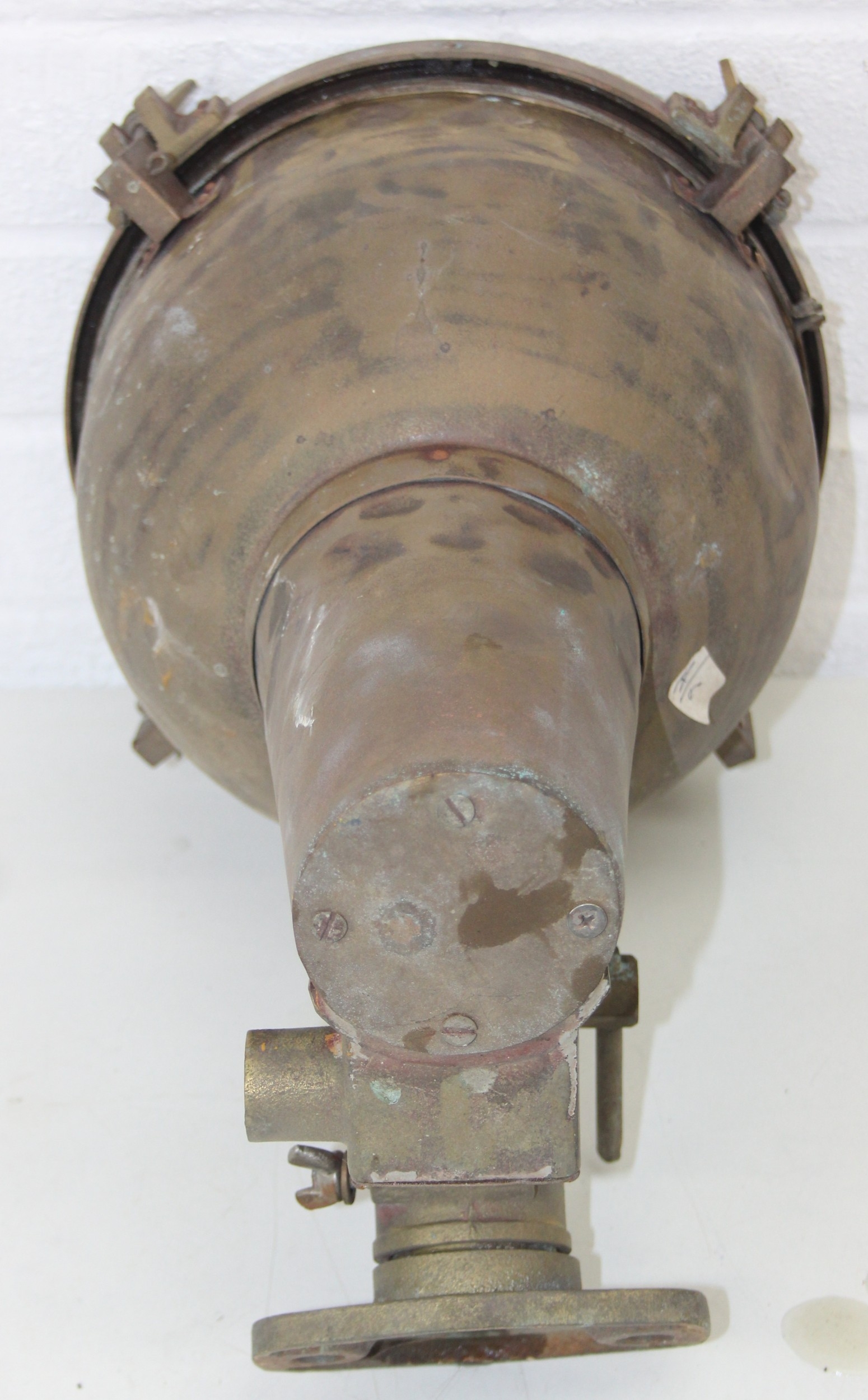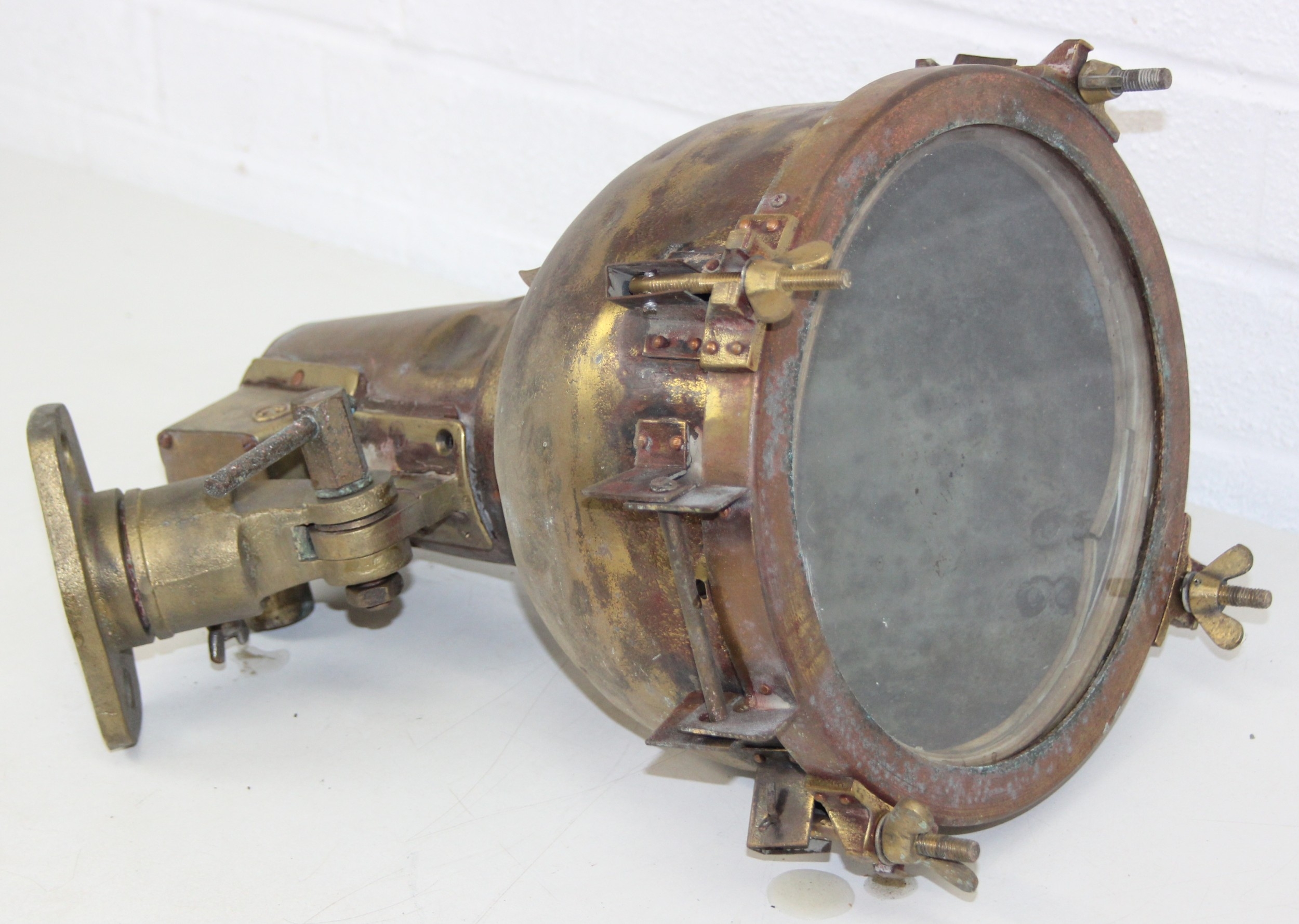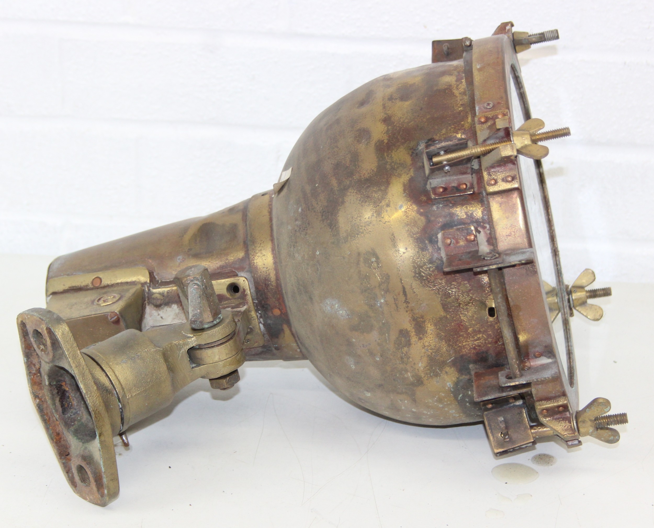 Marine lamps - brass spot lamp with four wingnut fastenings to lens, diameter 25cm x depth 36cm