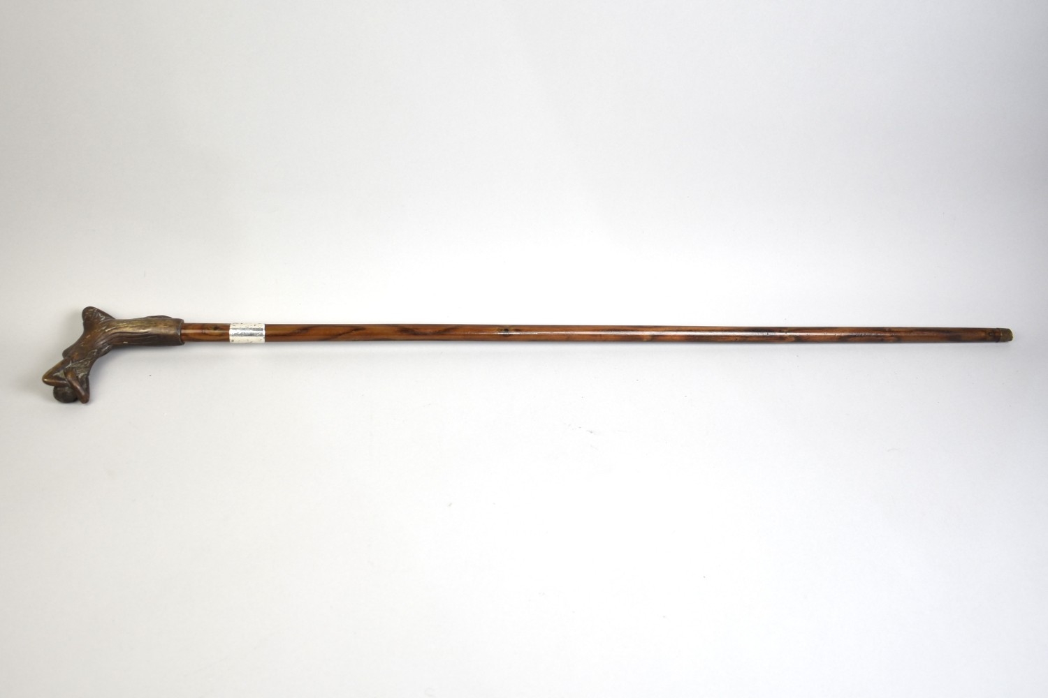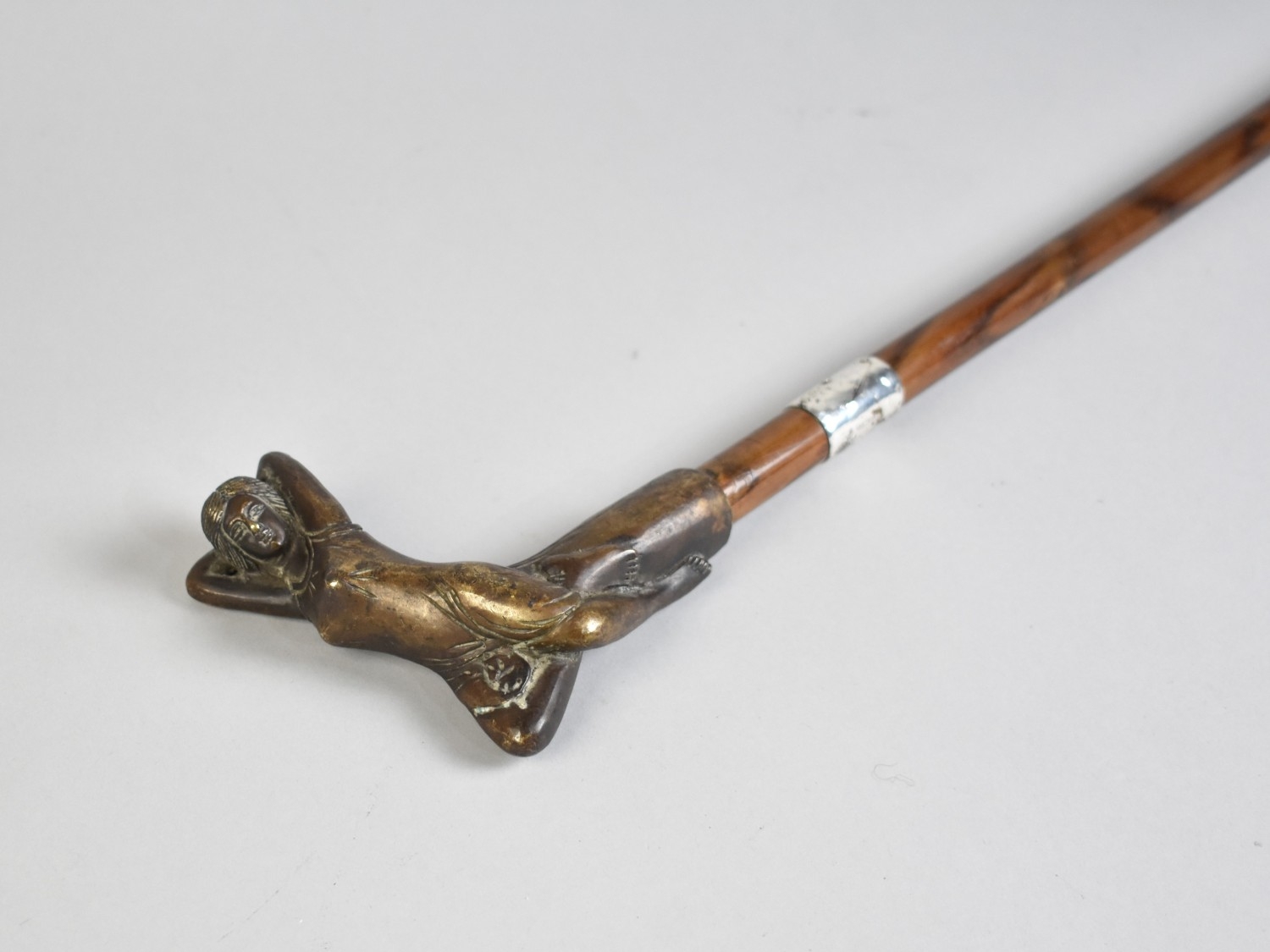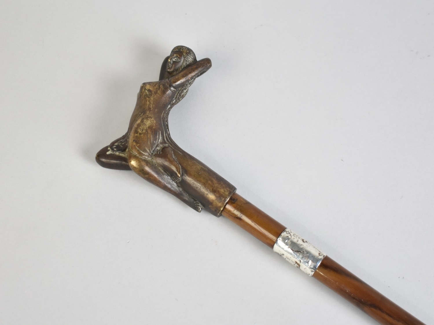 A Wooden Walking Cane with Bronze Handle in the Form of Art Nouveau Girl Reclining