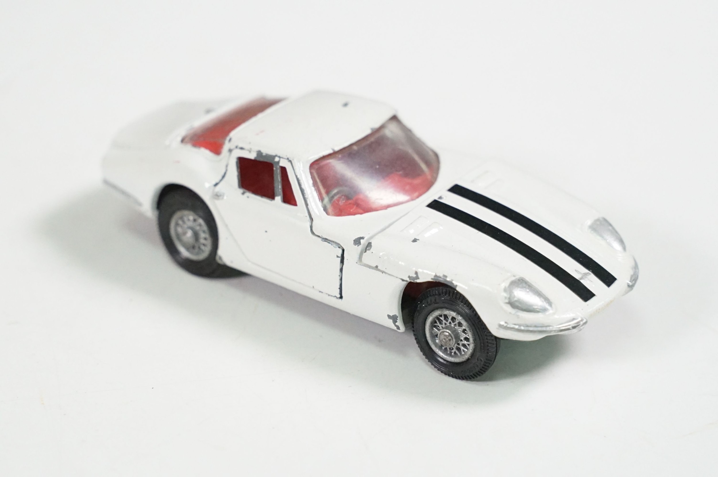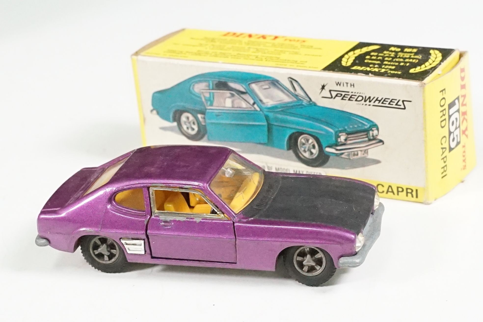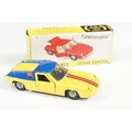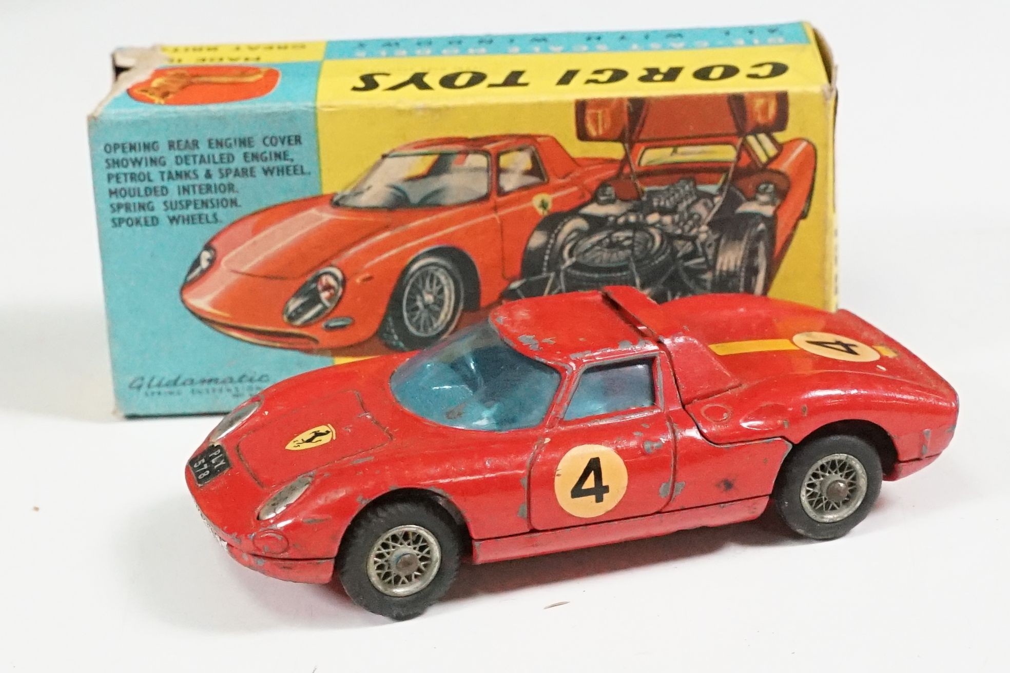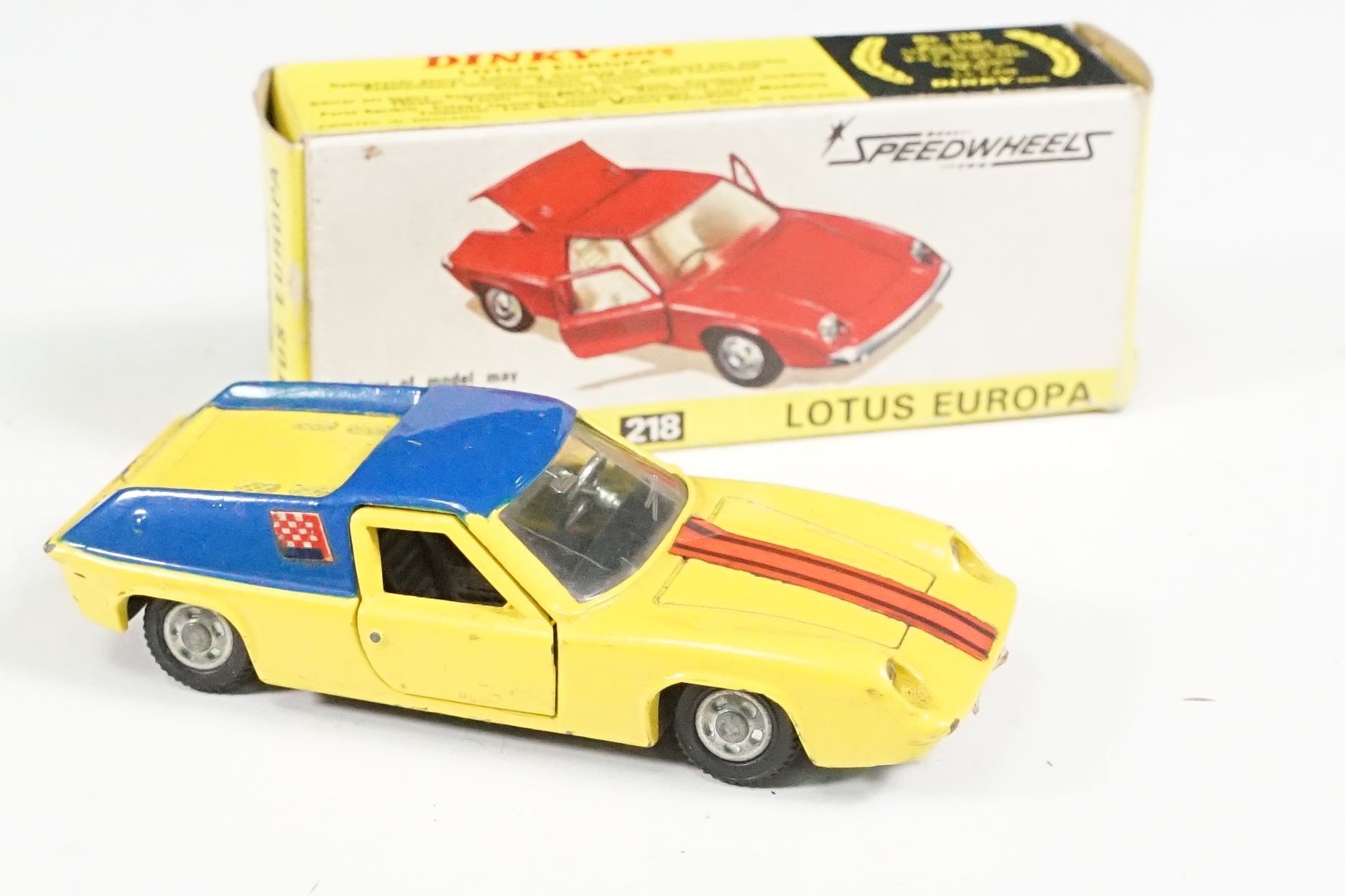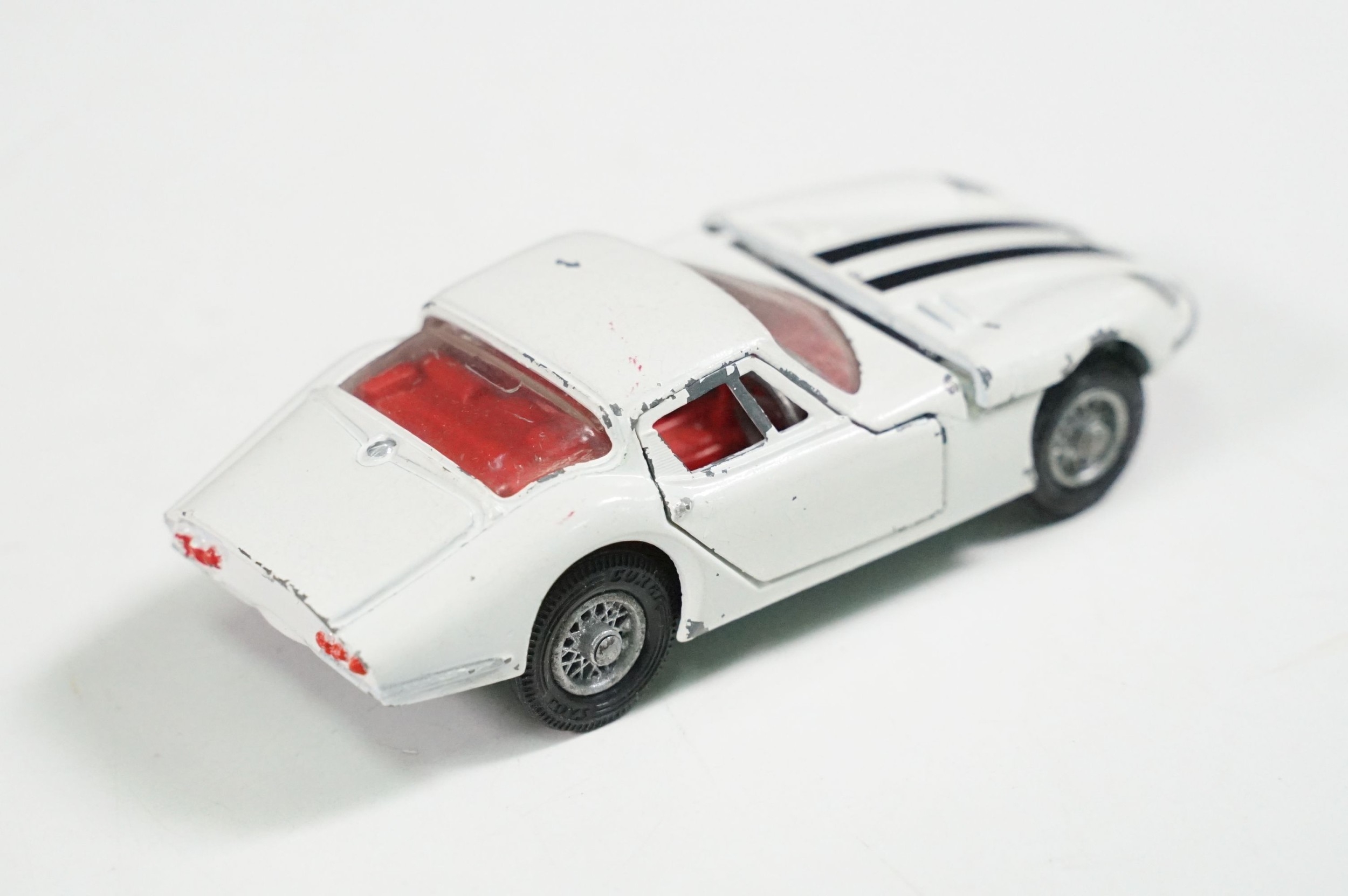 Nine boxed mid 20th C diecast models to include 6 x Corgi featuring 334 Mini Cooper Magnifique, 341 Mini Marcos GT 850, 319 Lotus Elan S2, 314 Ferrari Berlinetta, 231 Triumph Herald Coupe and 324 Marcos 1800 GT with Volvo engine and 3 x Dinky to include 165 Ford Capri in purple, 218 Lotus Europa in main body yellow and 344 Land Rover in blue, showing play wear with some previous rivet removal, boxes fair overall