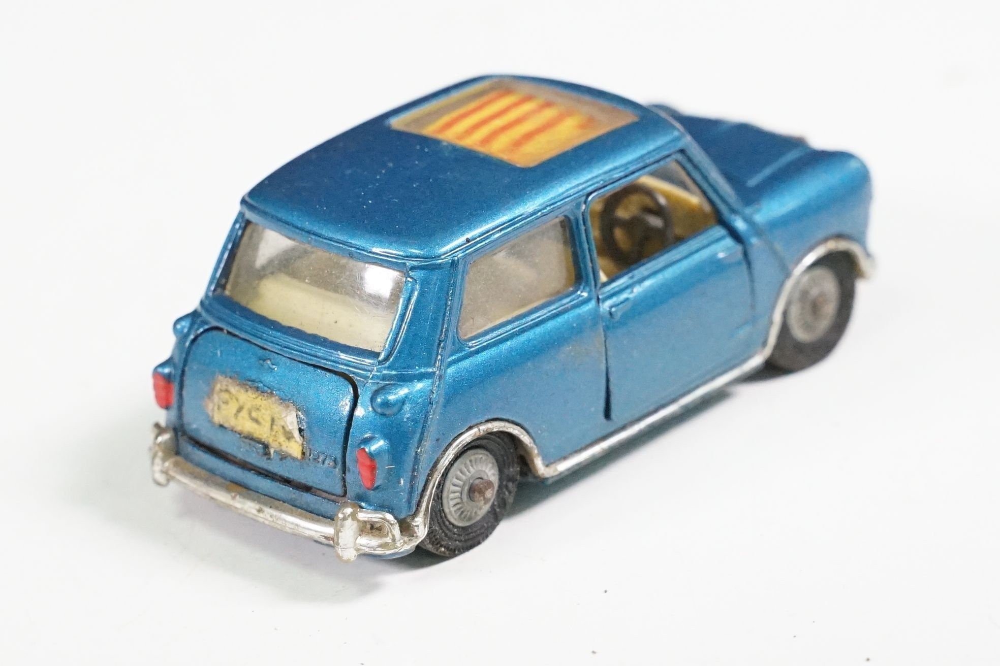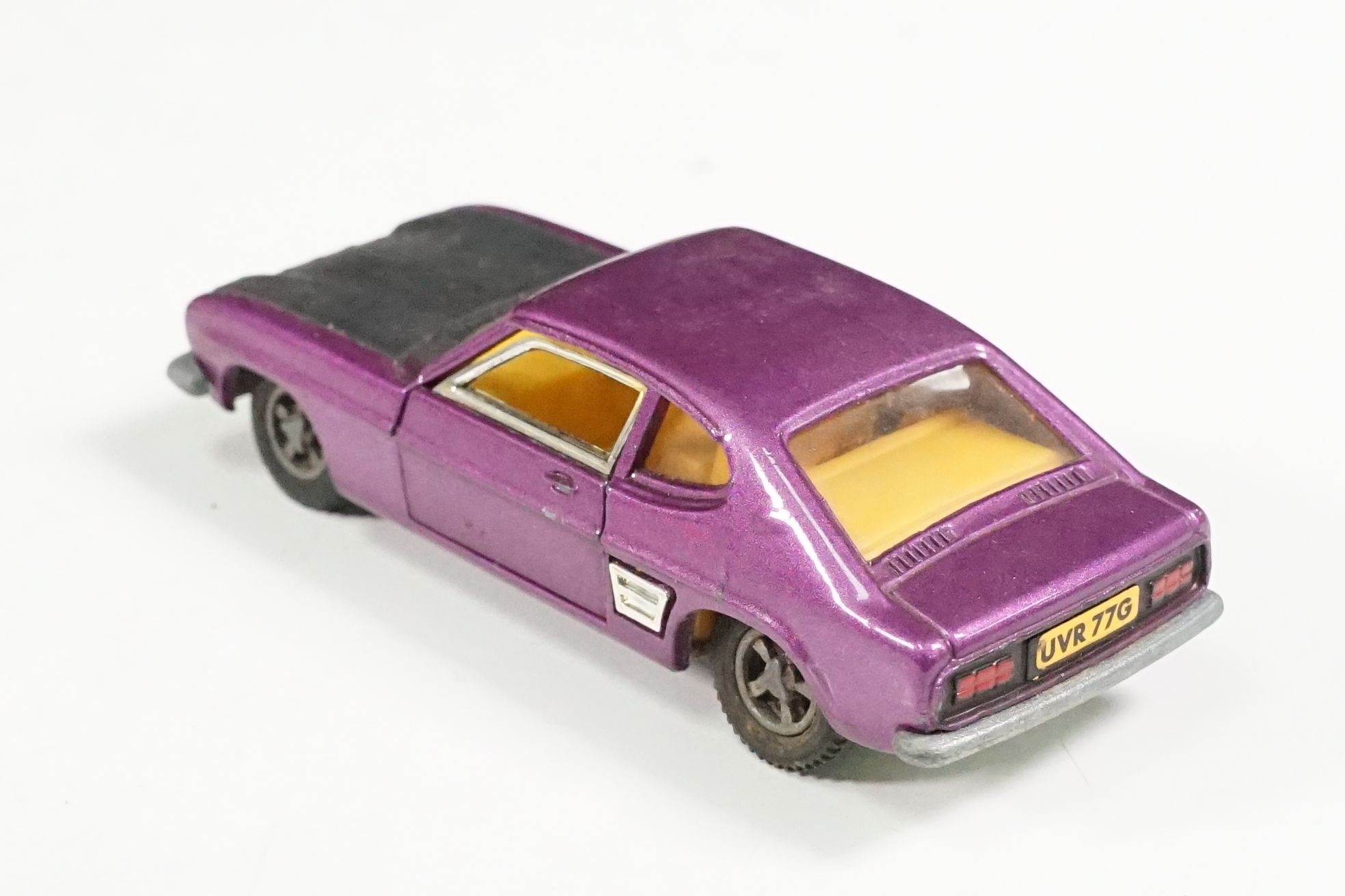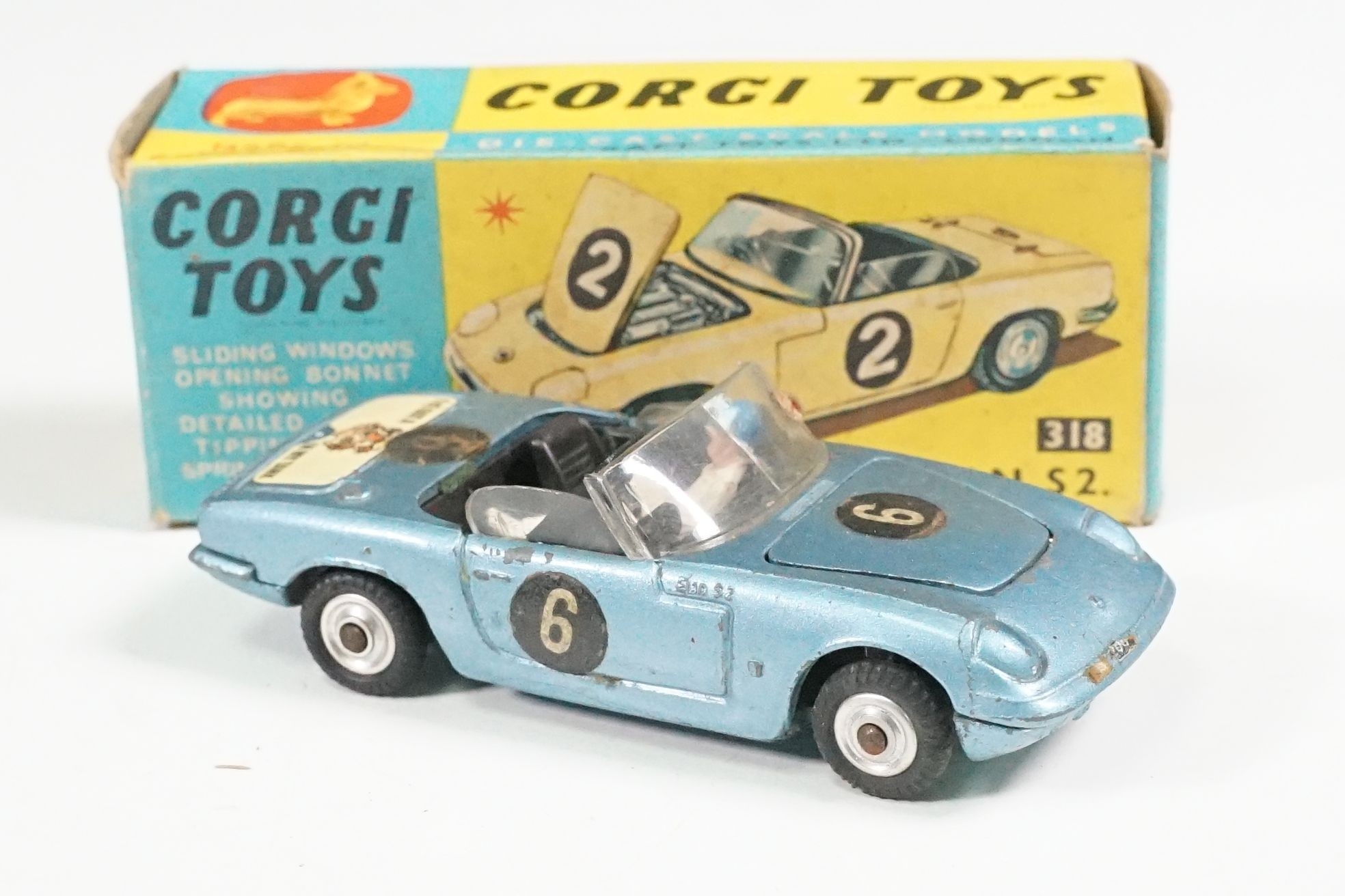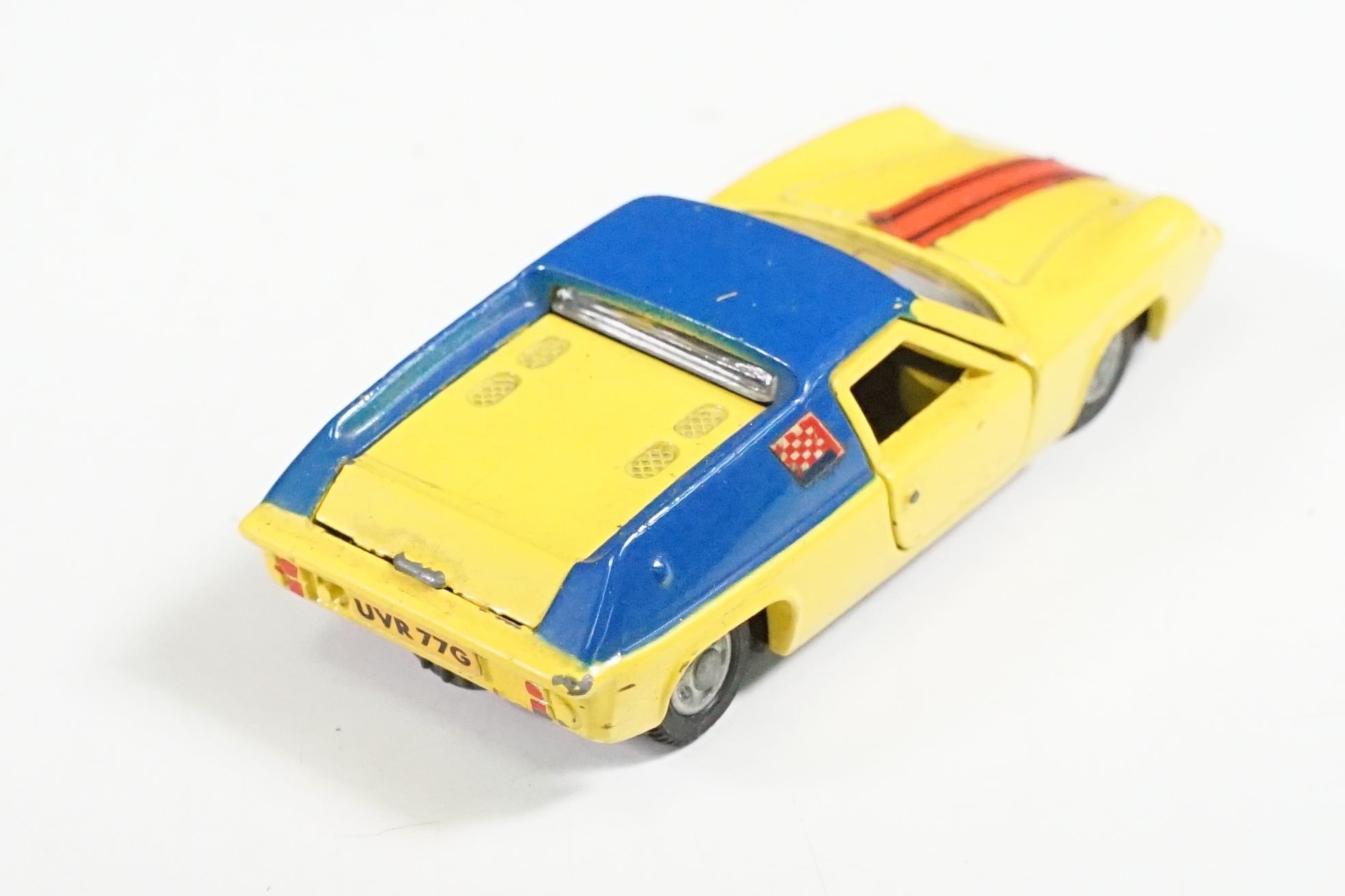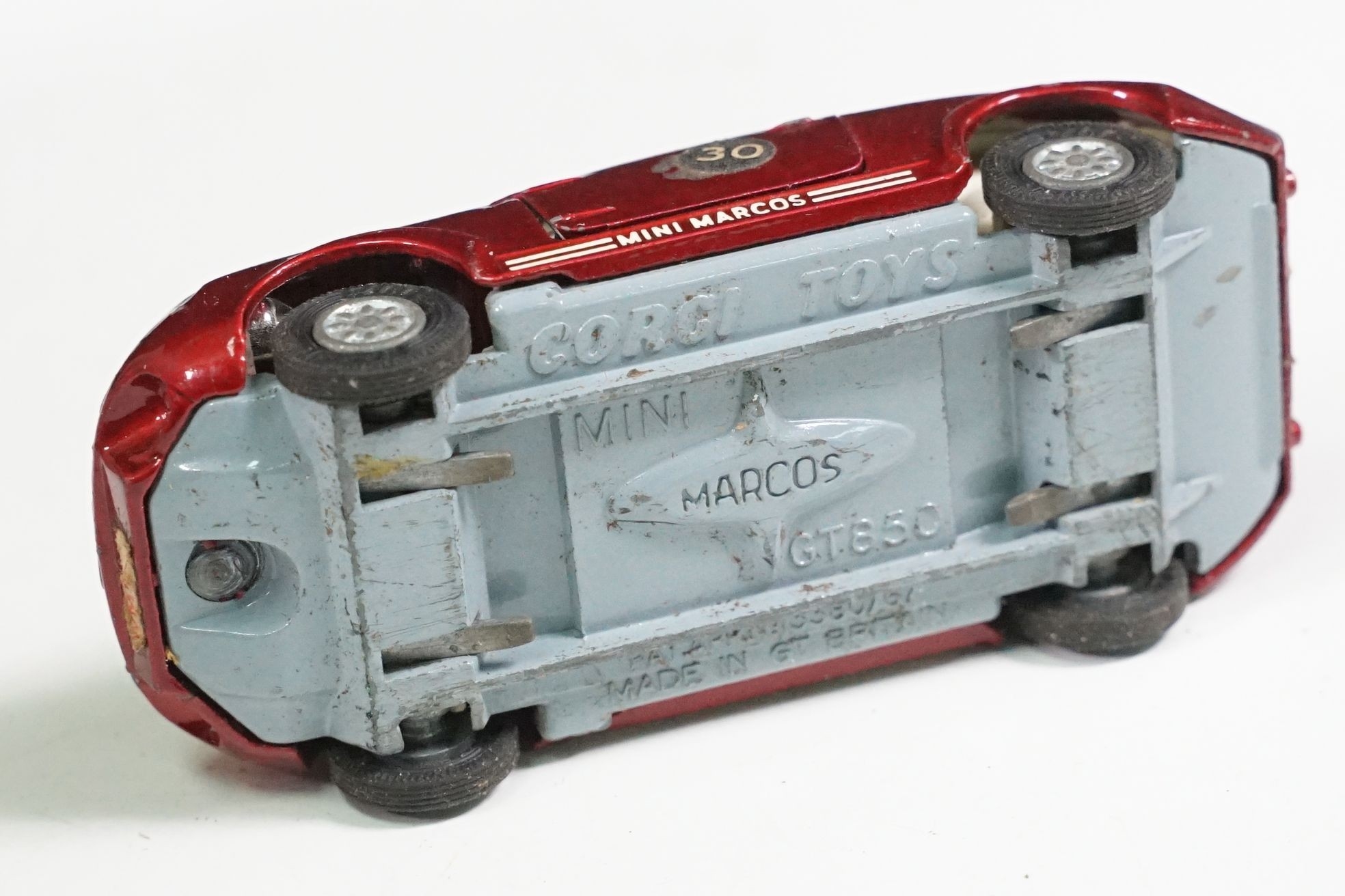 Nine boxed mid 20th C diecast models to include 6 x Corgi featuring 334 Mini Cooper Magnifique, 341 Mini Marcos GT 850, 319 Lotus Elan S2, 314 Ferrari Berlinetta, 231 Triumph Herald Coupe and 324 Marcos 1800 GT with Volvo engine and 3 x Dinky to include 165 Ford Capri in purple, 218 Lotus Europa in main body yellow and 344 Land Rover in blue, showing play wear with some previous rivet removal, boxes fair overall
