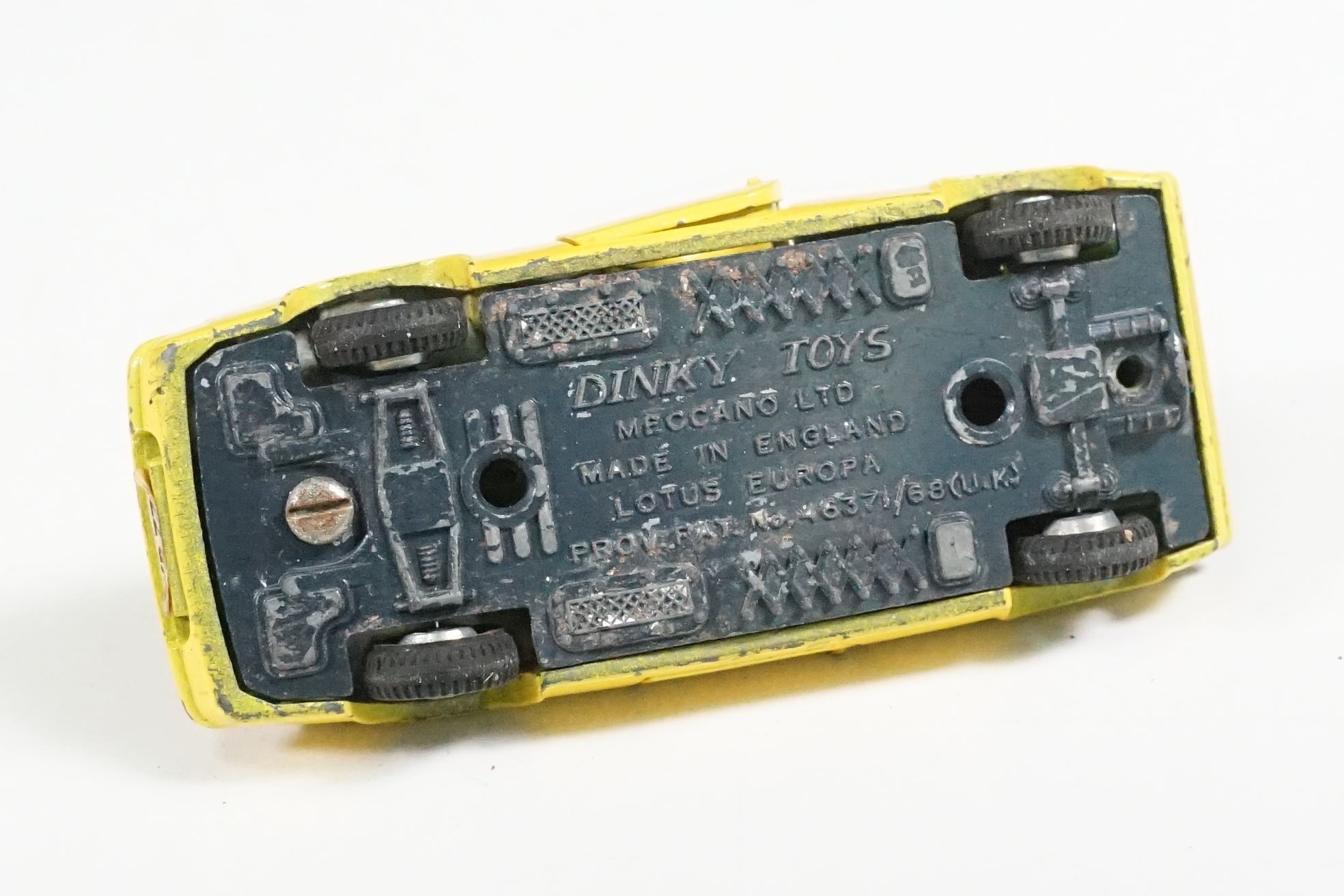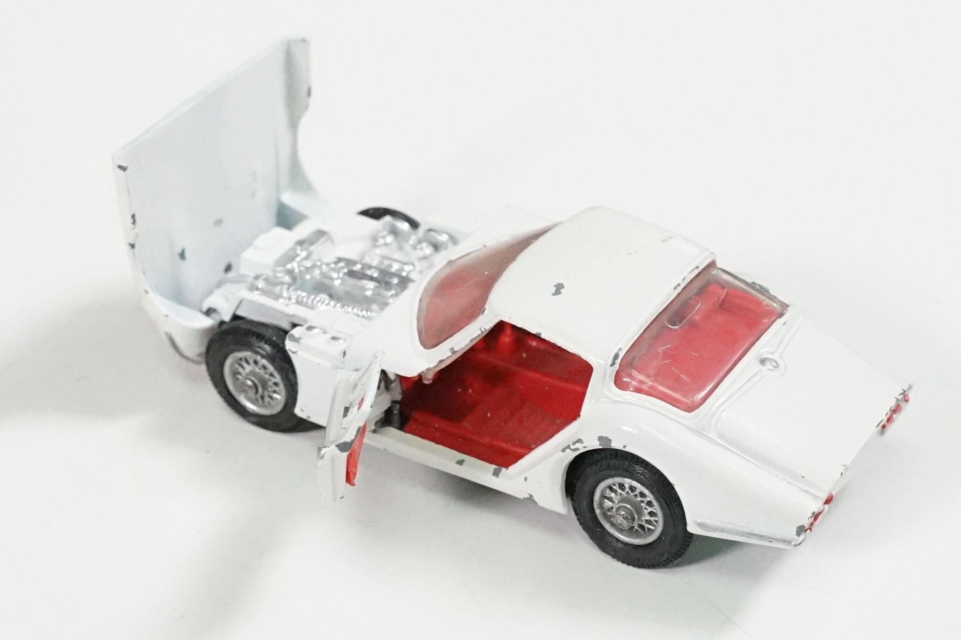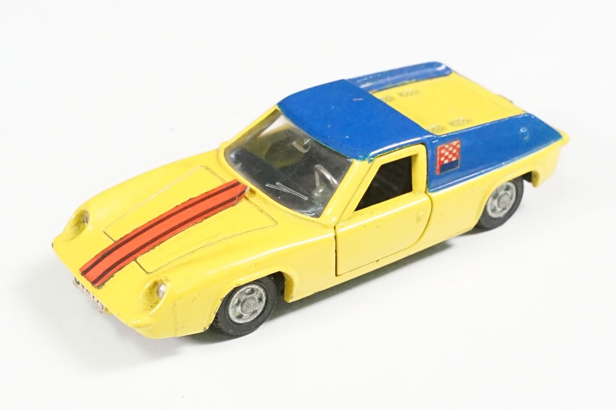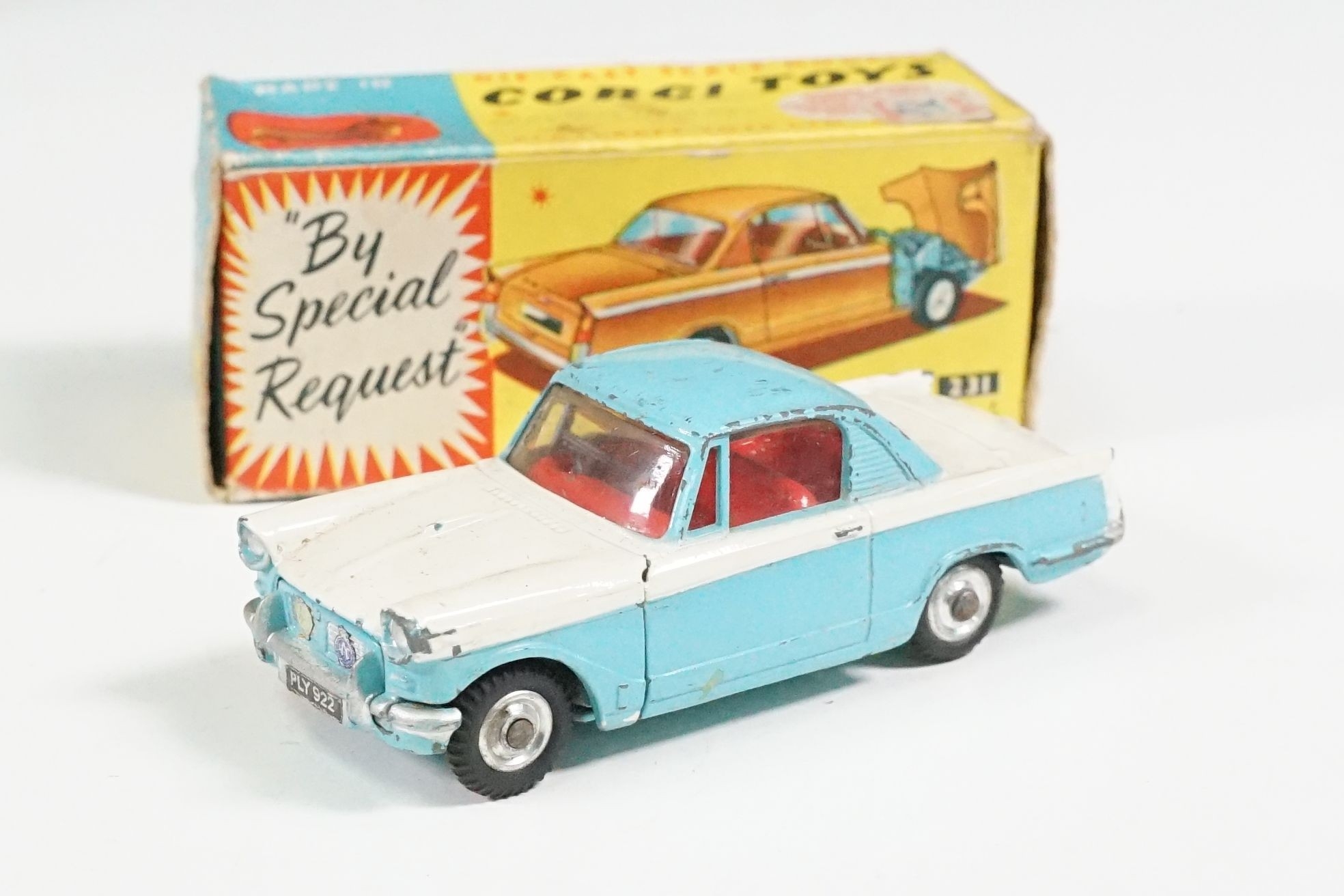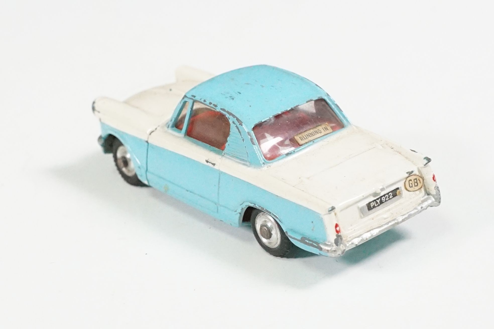 Nine boxed mid 20th C diecast models to include 6 x Corgi featuring 334 Mini Cooper Magnifique, 341 Mini Marcos GT 850, 319 Lotus Elan S2, 314 Ferrari Berlinetta, 231 Triumph Herald Coupe and 324 Marcos 1800 GT with Volvo engine and 3 x Dinky to include 165 Ford Capri in purple, 218 Lotus Europa in main body yellow and 344 Land Rover in blue, showing play wear with some previous rivet removal, boxes fair overall
